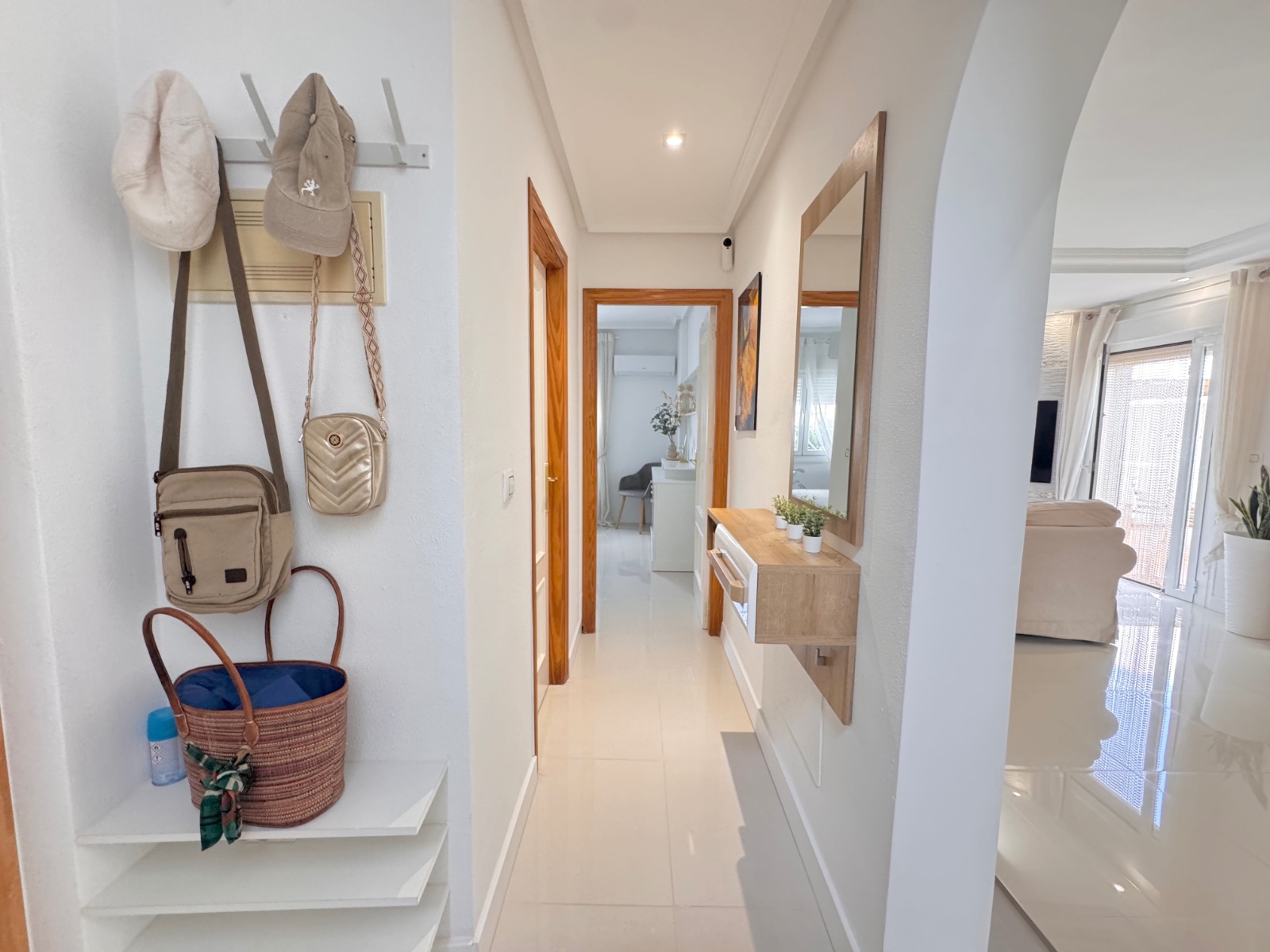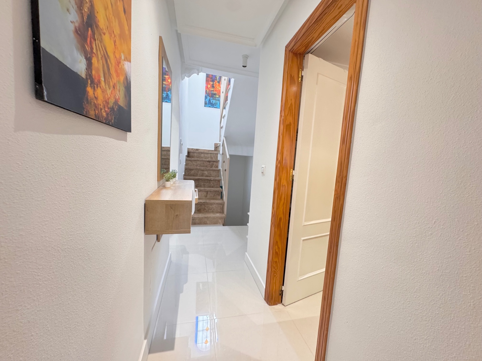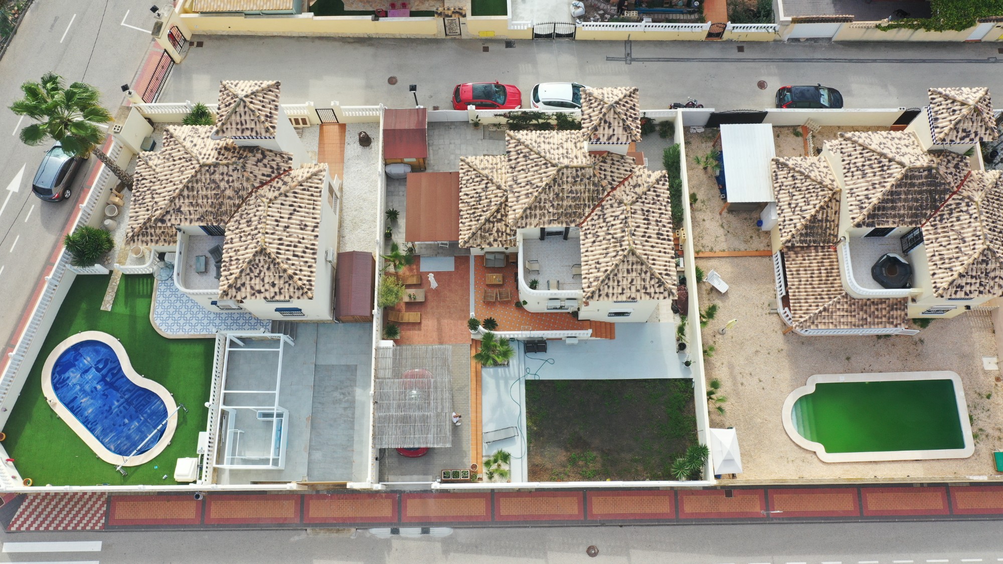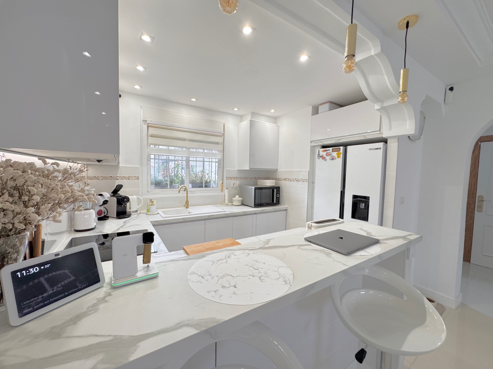 Discover this magnificent, fully and carefully renovated 3-story detached villa located in a quiet and secure development. Ideally located in Lo Crispin, just 1.5 km from shops and the highway, this property offers comfort, modernity, and a privileged living environment. Key Features: - Surface area: 225 m² spread over 3 floors. - Living areas: 5 large bedrooms, ideal for entertaining family and friends. - Bathrooms: 3 modern, fully equipped bathrooms. - Kitchens: 2 fully renovated and functional kitchens. - Storage: Built-in cupboards for maximum convenience. - Space to build your private 9x4m swimming pool High-end amenities: - Recent renovation: New tiles and latest-generation air conditioning system. - Secure access: Gate entrance to the development to ensure peace and quiet. - Exterior development: Pre-installation for a private pool has already been completed. Common Areas: Also enjoy two community pools, perfect for relaxing and cooling off on hot summer days. Ideal Location: - Accessibility: Close proximity to main roads and shops. - Surroundings: Two adjacent streets provide easy access and parking.