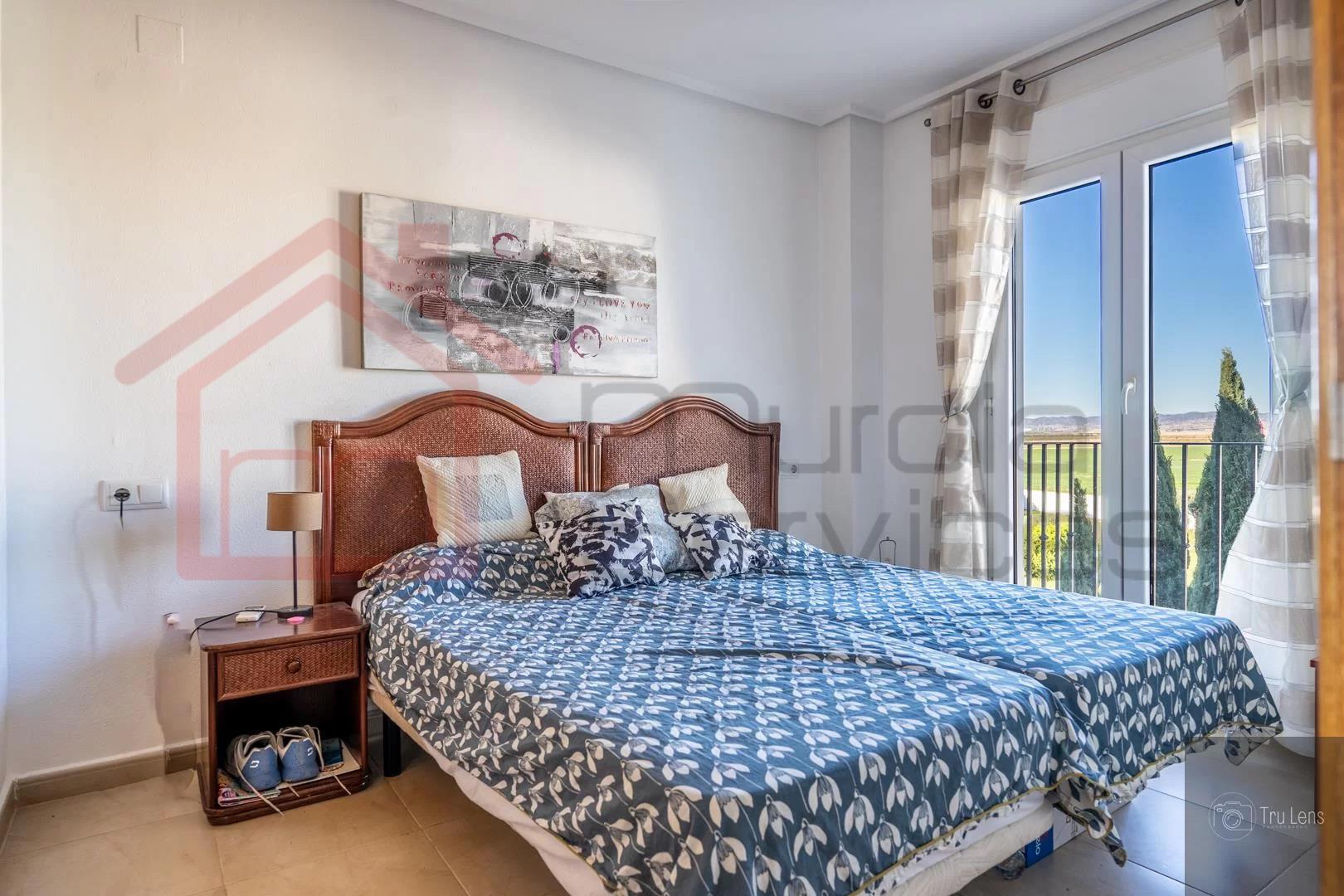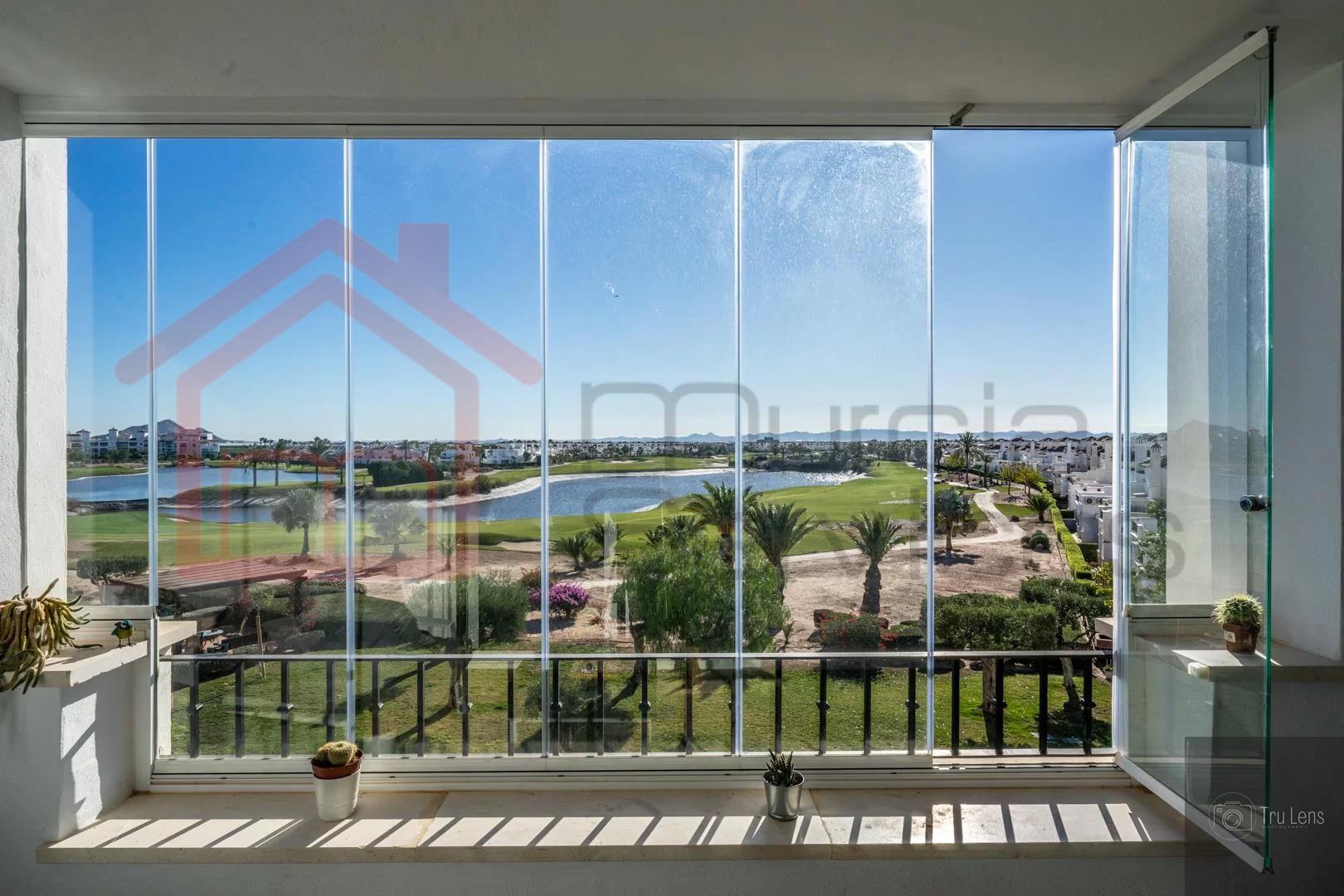 Lake View Apartment MurciaSecond floor two bed apartmentOversized corner underground parking for two cars and storage shed for bikes and golf clubsStunning golf and lake views from the terraceAlso views of the orange orchards from the bedroomsBoth bedrooms have fitted wardrobesFully fitted kitchenBathroom with a bathtubBright living room with natural lightSliding doors to a terrace that has glass curtains for year round useSouth East facingLa Torre Golf Resort is undoubtedly the most popular of all the golf resorts in the region. With a wide range of amenities, an 18 hole golf course designed by the famous Jack Nicklaus, on-site supermarket and a 5 DoubleTree by Hilton Hotel, there no wonder why properties on this resort are so sought after. The resort also has the advantage of being perfectly located between Murcia City Centre and the coast, both just 20 minutes in either direction, so you’re never too far away from the beautiful Costa Calida beaches, large shopping malls and traditional Spanish cities.Contact us today for more details or to view this splendid Lake View Apartment in Murcia!