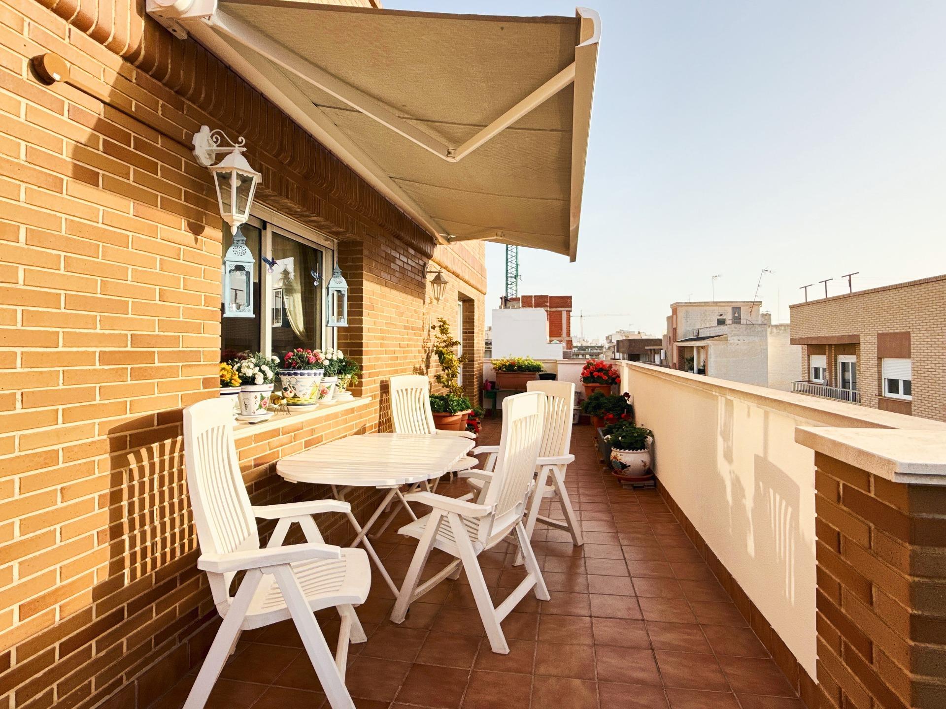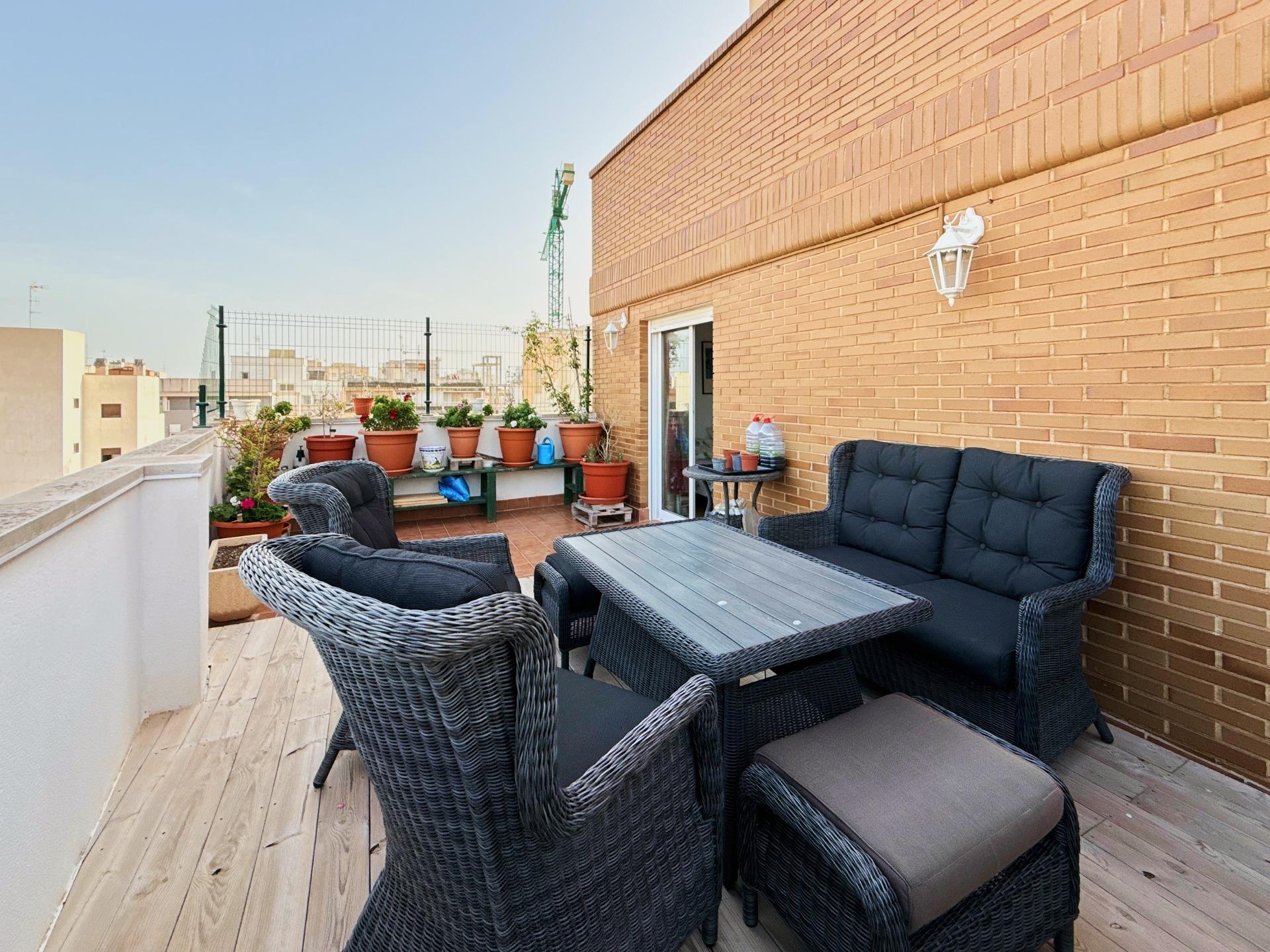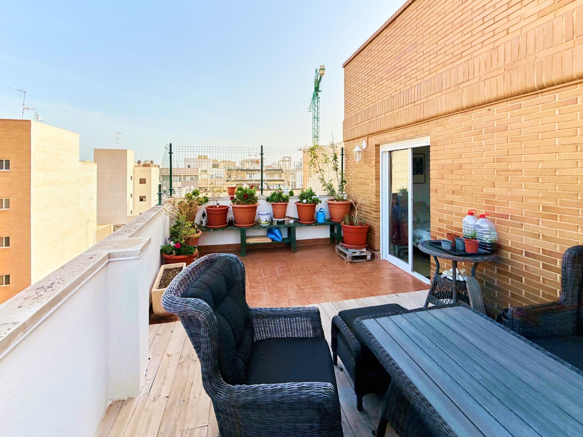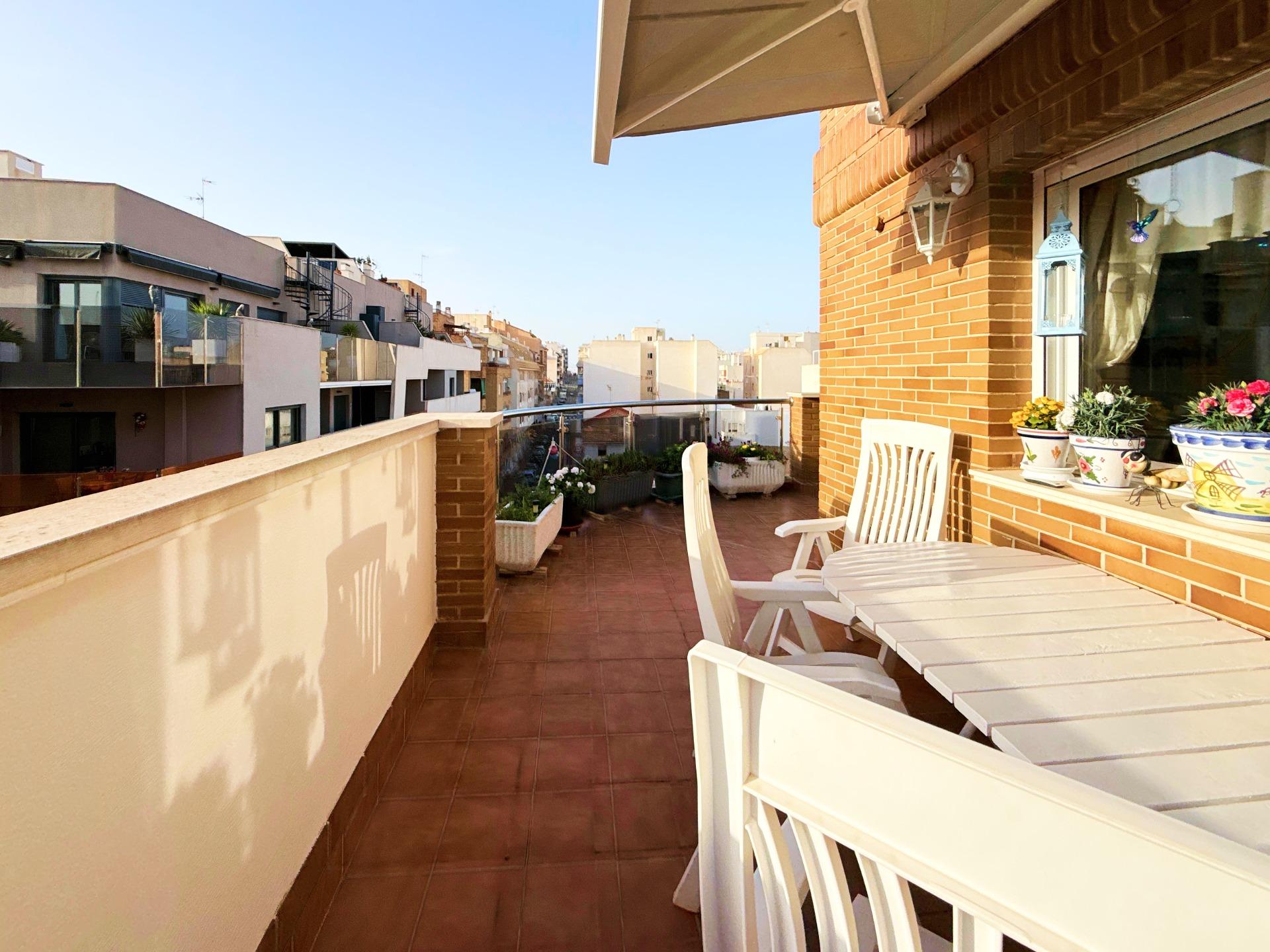 Vi præsenterer denne helt fantastiske penthouse i centrum af Torrevieja. Penthousen består af 4 soveværelser og 2 badeværelser (det ene en suite til master bedroom). Dens to terrasser giver mulighed for at slappe af forskellige steder, nyde flere orienteringer og drage fordel af al solen og skyggen afhængigt af tidspunktet på dagen. To af soveværelserne er direkte forbundet med hovedterrassen, der omkranser den L-formede bolig, og det ene soveværelse har egen terrasse på cirka 15 kvadratmeter. Ligeledes er der på hovedterrassen et rum med en pergola, hvor du kan nyde et godt måltid med familie og venner, et skønt øjebliks afslapning, og drage fordel af de mere end 300 solskinsdage, som Torreviejas misundelsesværdige klima byder på. Derudover har den et fuldt udstyret selvstændigt køkken med udgang til terrassen og den overdækkede og glaserede del af terrassen, som er strategisk placeret ud for køkkenet. I dette hus finder vi finish af høj kvalitet og naturligt lys hele dagen. Prisen inkluderer en parkeringsplads og et depotrum i en bygning 100 meter væk, så du kan glemme alt om at søge efter parkering i området. Penthouse-lejlighedens centrale beliggenhed giver os mulighed for at have alle faciliteter kun få minutters gang væk. Plaza de la Constitución ligger 3 minutters gang derfra, og Paseo de Vista Alegre og havnen er 7 minutters gang (500 meter). Kom og besøg denne storslåede ejendom NU og vær målløs!
