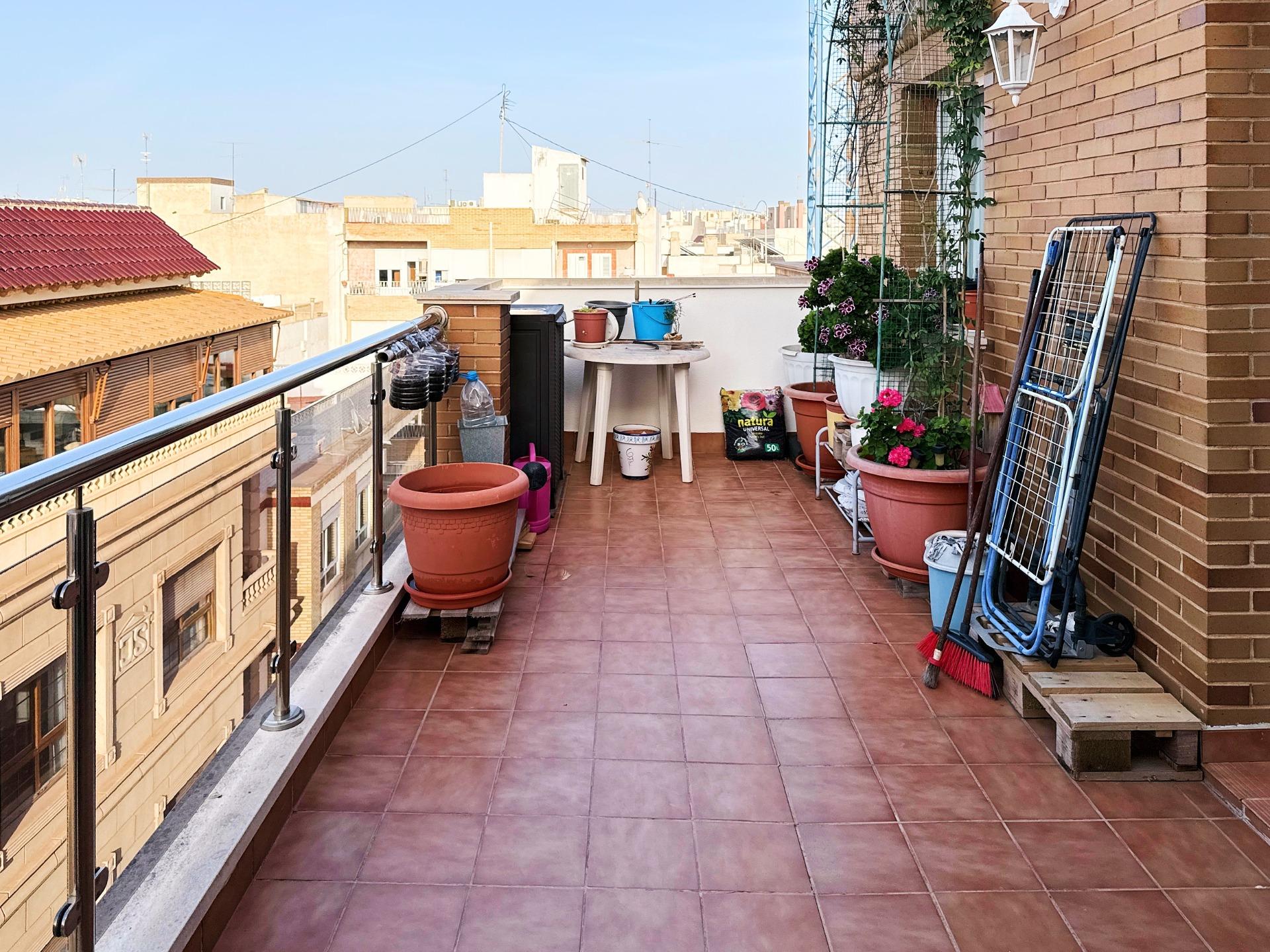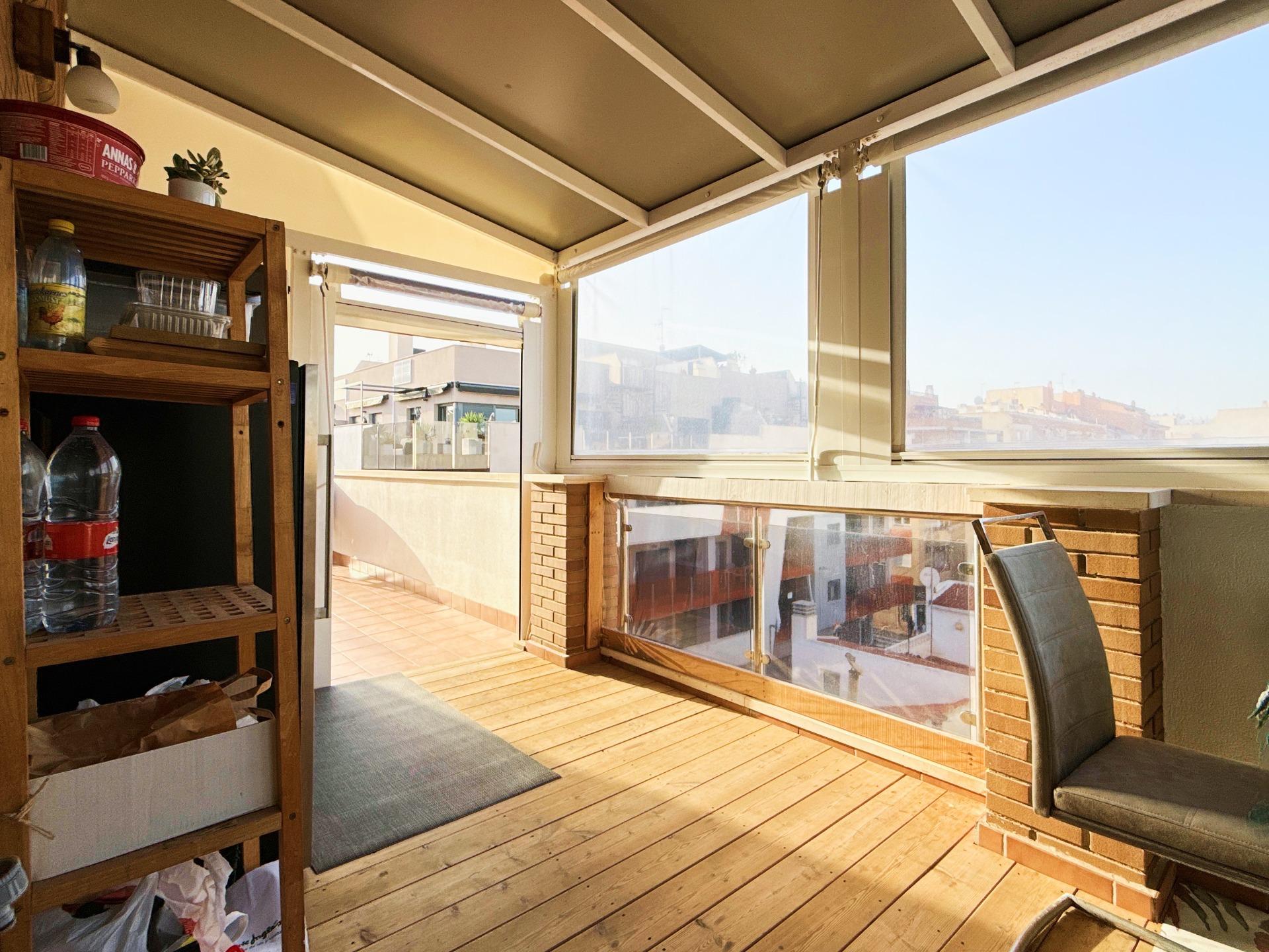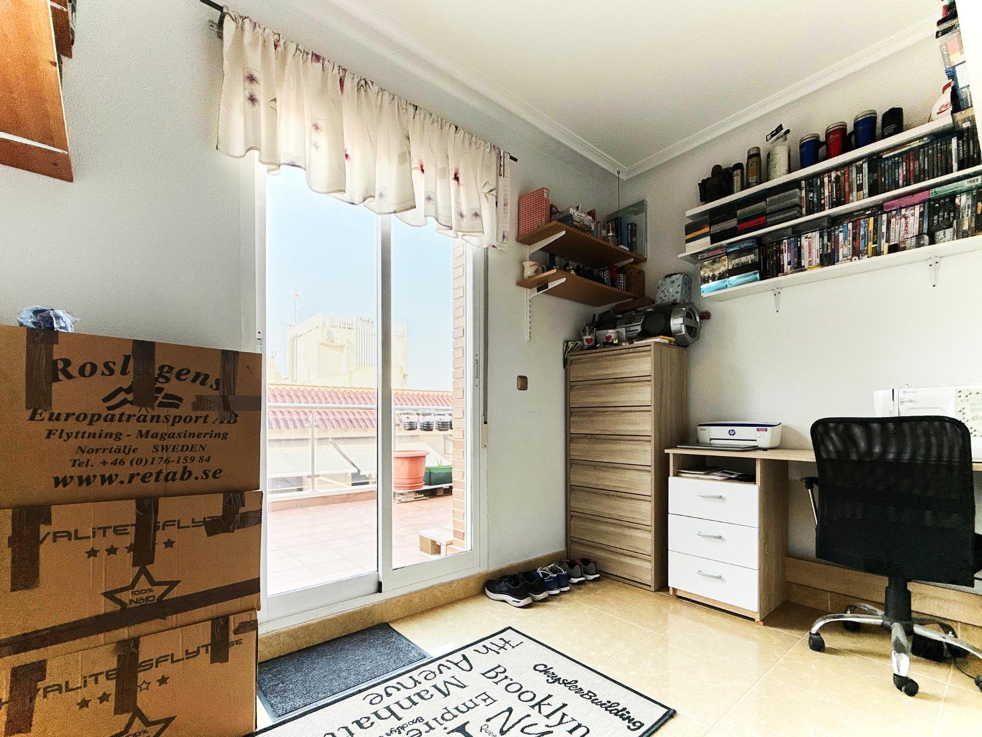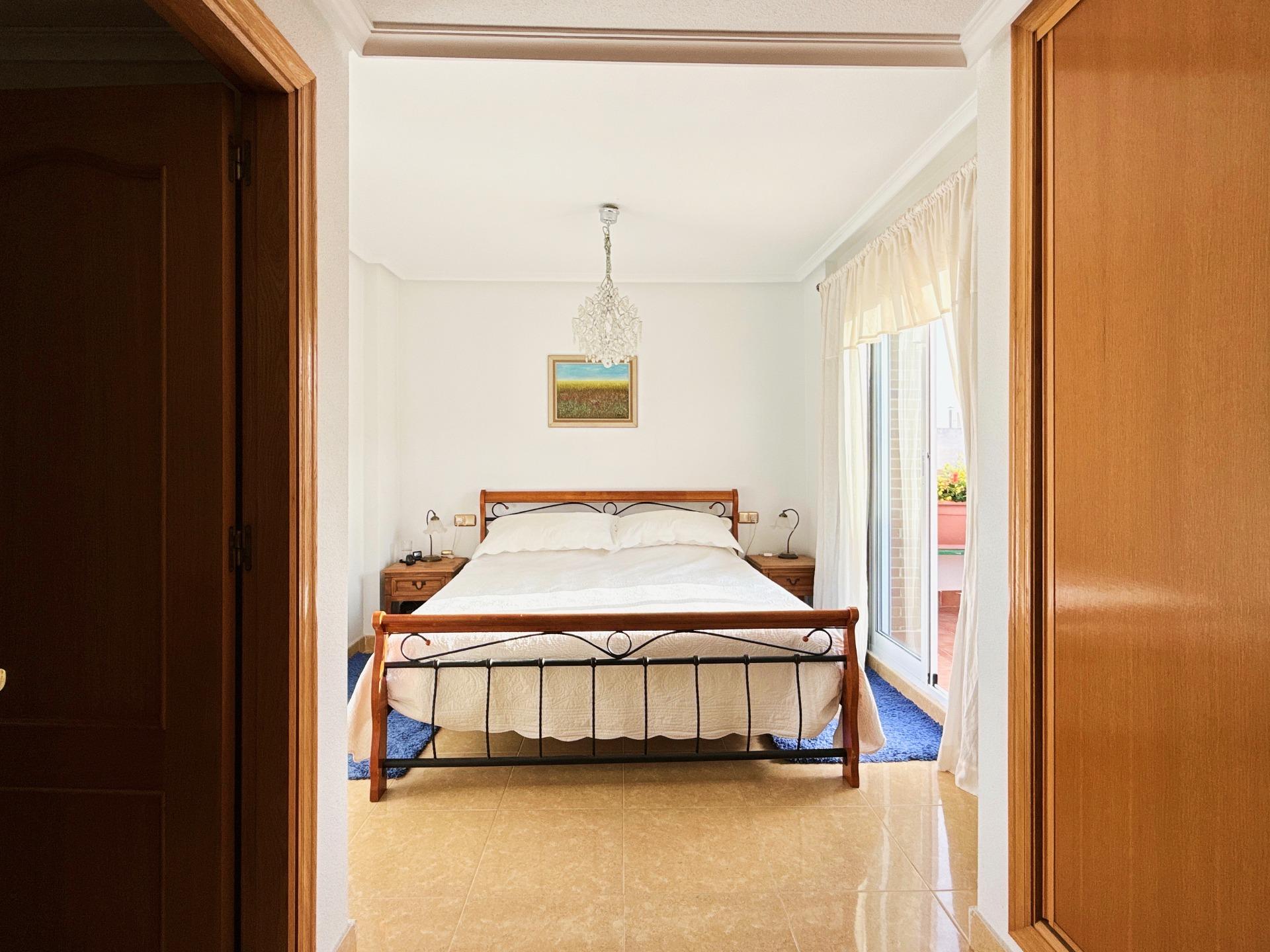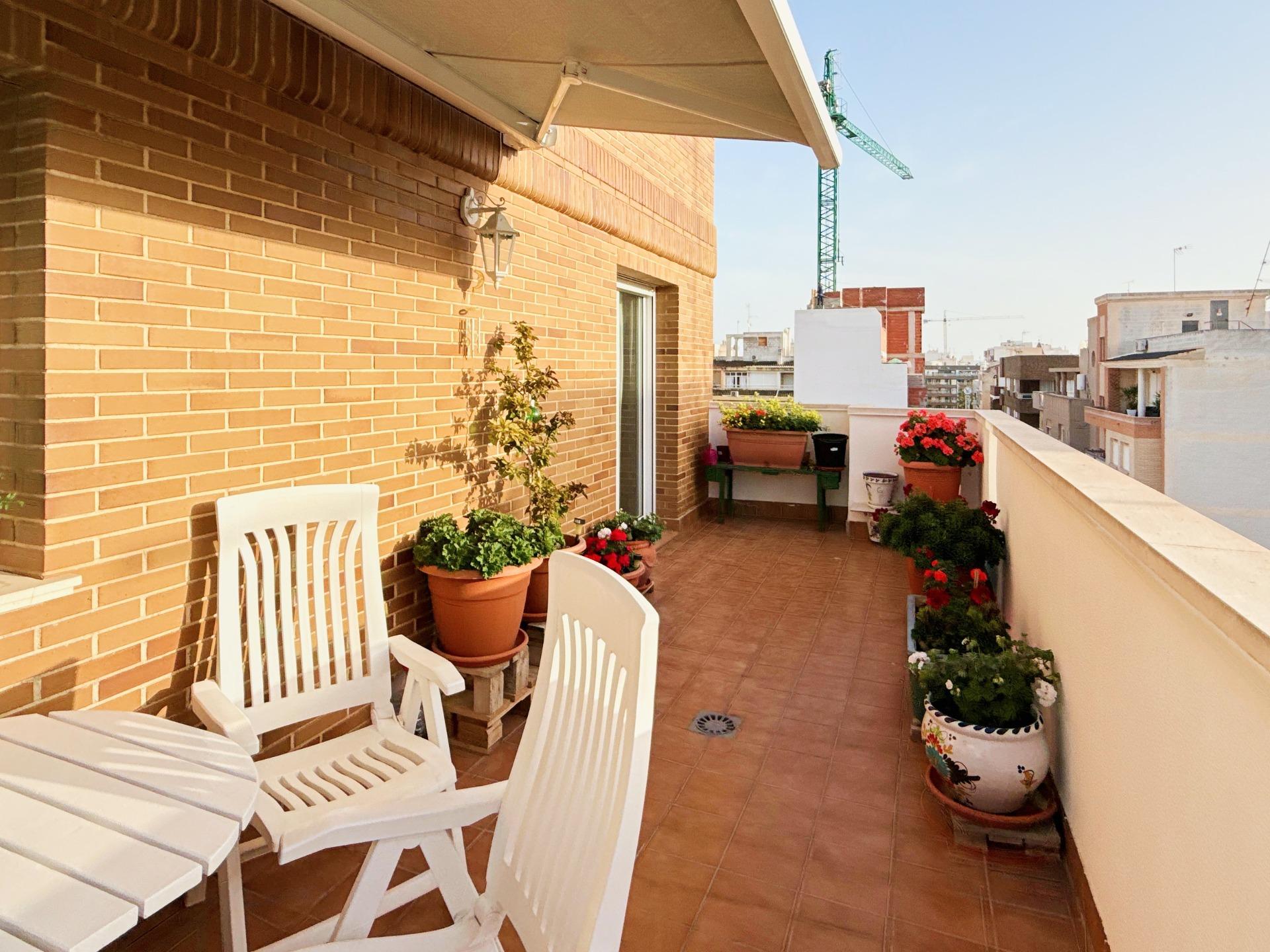 Vi præsenterer denne helt fantastiske penthouse i centrum af Torrevieja. Penthousen består af 4 soveværelser og 2 badeværelser (det ene en suite til master bedroom). Dens to terrasser giver mulighed for at slappe af forskellige steder, nyde flere orienteringer og drage fordel af al solen og skyggen afhængigt af tidspunktet på dagen. To af soveværelserne er direkte forbundet med hovedterrassen, der omkranser den L-formede bolig, og det ene soveværelse har egen terrasse på cirka 15 kvadratmeter. Ligeledes er der på hovedterrassen et rum med en pergola, hvor du kan nyde et godt måltid med familie og venner, et skønt øjebliks afslapning, og drage fordel af de mere end 300 solskinsdage, som Torreviejas misundelsesværdige klima byder på. Derudover har den et fuldt udstyret selvstændigt køkken med udgang til terrassen og den overdækkede og glaserede del af terrassen, som er strategisk placeret ud for køkkenet. I dette hus finder vi finish af høj kvalitet og naturligt lys hele dagen. Prisen inkluderer en parkeringsplads og et depotrum i en bygning 100 meter væk, så du kan glemme alt om at søge efter parkering i området. Penthouse-lejlighedens centrale beliggenhed giver os mulighed for at have alle faciliteter kun få minutters gang væk. Plaza de la Constitución ligger 3 minutters gang derfra, og Paseo de Vista Alegre og havnen er 7 minutters gang (500 meter). Kom og besøg denne storslåede ejendom NU og vær målløs!