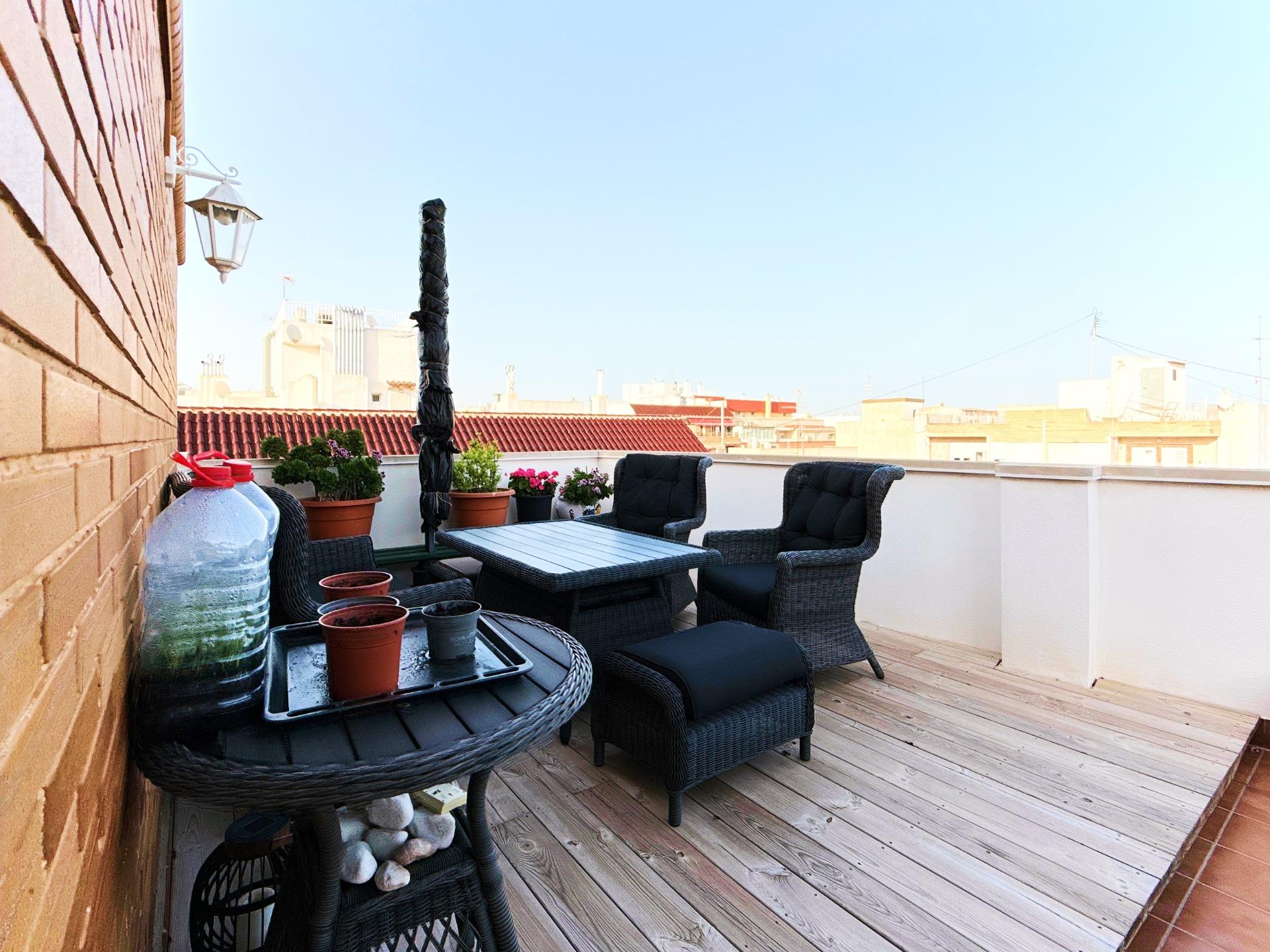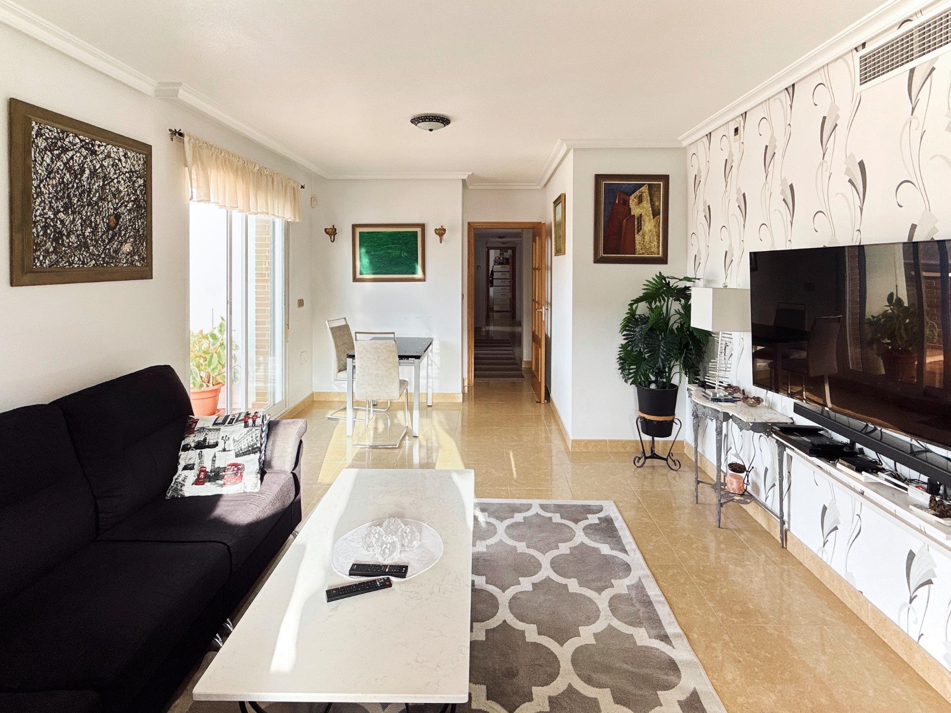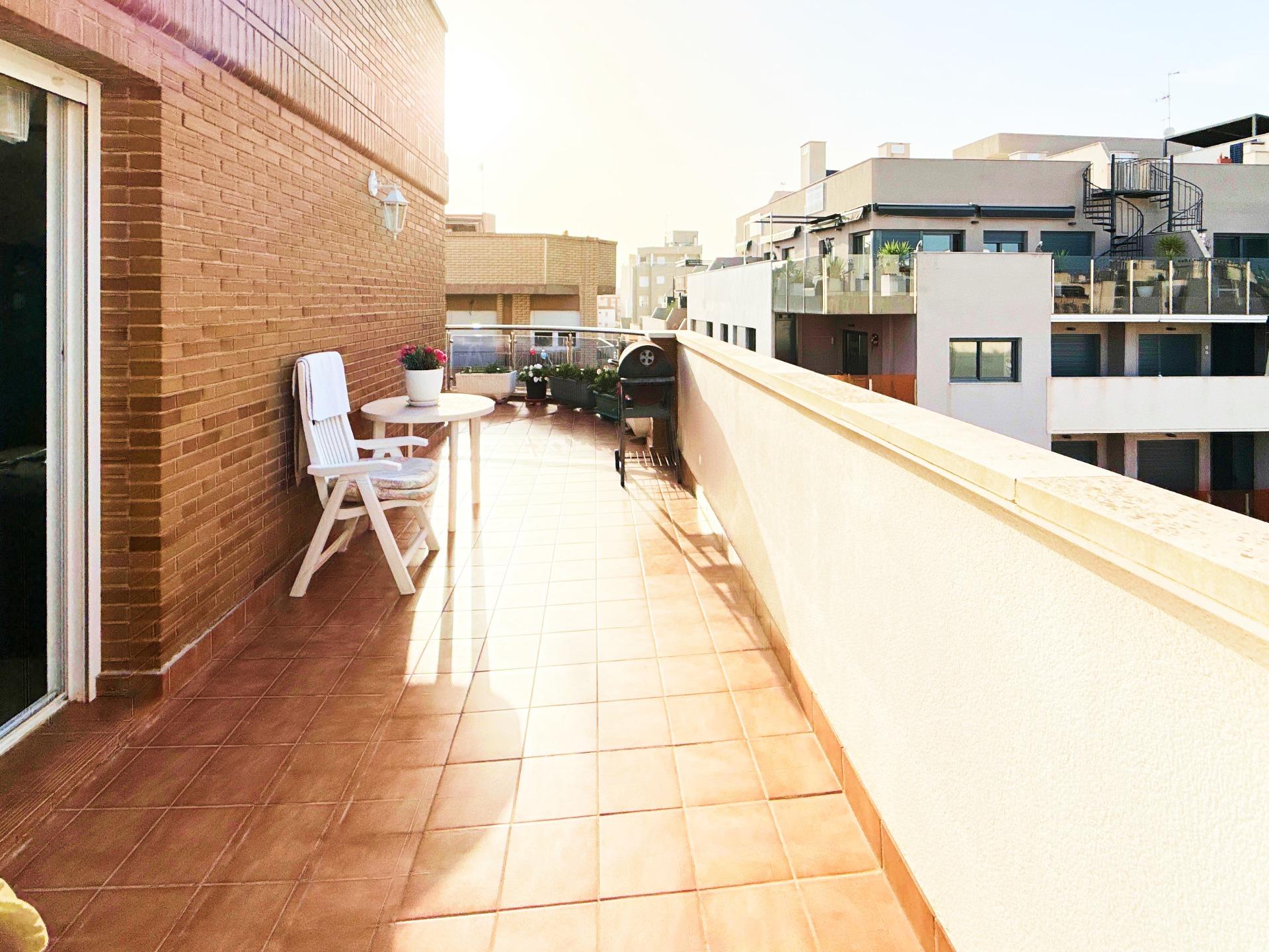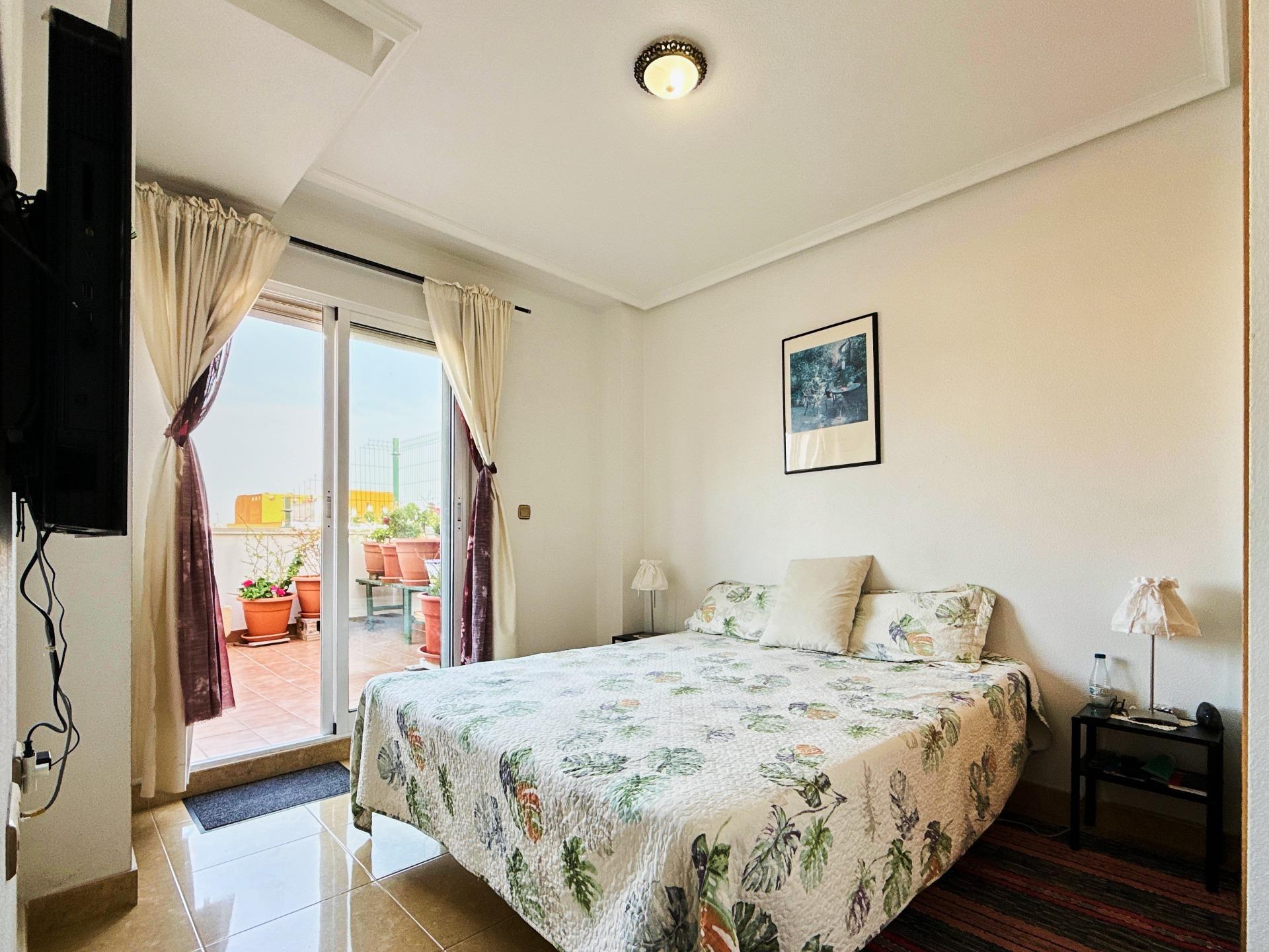 Vi præsenterer denne helt fantastiske penthouse i centrum af Torrevieja. Penthousen består af 4 soveværelser og 2 badeværelser (det ene en suite til master bedroom). Dens to terrasser giver mulighed for at slappe af forskellige steder, nyde flere orienteringer og drage fordel af al solen og skyggen afhængigt af tidspunktet på dagen. To af soveværelserne er direkte forbundet med hovedterrassen, der omkranser den L-formede bolig, og det ene soveværelse har egen terrasse på cirka 15 kvadratmeter. Ligeledes er der på hovedterrassen et rum med en pergola, hvor du kan nyde et godt måltid med familie og venner, et skønt øjebliks afslapning, og drage fordel af de mere end 300 solskinsdage, som Torreviejas misundelsesværdige klima byder på. Derudover har den et fuldt udstyret selvstændigt køkken med udgang til terrassen og den overdækkede og glaserede del af terrassen, som er strategisk placeret ud for køkkenet. I dette hus finder vi finish af høj kvalitet og naturligt lys hele dagen. Prisen inkluderer en parkeringsplads og et depotrum i en bygning 100 meter væk, så du kan glemme alt om at søge efter parkering i området. Penthouse-lejlighedens centrale beliggenhed giver os mulighed for at have alle faciliteter kun få minutters gang væk. Plaza de la Constitución ligger 3 minutters gang derfra, og Paseo de Vista Alegre og havnen er 7 minutters gang (500 meter). Kom og besøg denne storslåede ejendom NU og vær målløs!