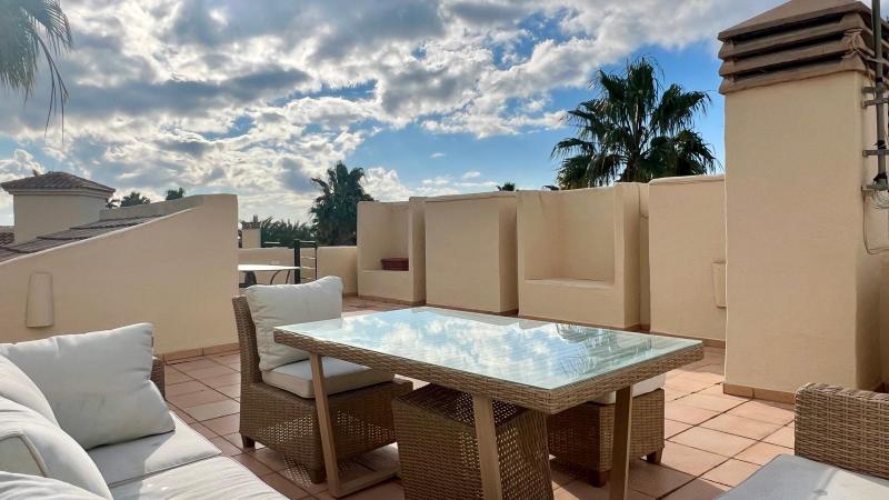 Step into luxury with this exceptional penthouse located in the prestigious Roda Golf Resort. Perfectly positioned just 2 minutes from the charming town of Los Alcázares.This beautifully designed home features two spacious bedrooms and two bathrooms with fitted wardrobes, complemented by an open-plan kitchen that seamlessly integrates with the bright and airy living areaThe terrace offers a serene spot to enjoy your morning coffee, while one of the most impressive features of this property is the large, private roof top terrace with panoramic views of the surrounding area. It's the perfect space for outdoor entertaining, with plenty of room for dining, lounging, and soaking up the Spanish sunshine.Adding to its allure, two sparkling pools are located just steps from your front door, offering unmatched convenience for cooling off or lounging poolside.For your peace of mind, the property includes 24-hour security, along with an underground parking space and a spacious storage room.Located near the beautiful Mar Menor, this penthouse offers access to world-class golf and the relaxed Mediterranean lifestyle you’ve been dreaming of. Don’t miss this incredible opportunity—contact us today to arrange a viewing and make this luxurious penthouse your own!