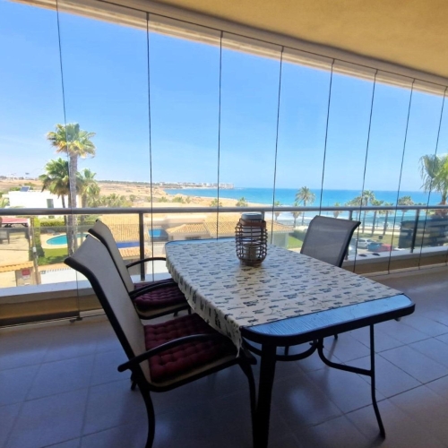 We are pleased to present this 1 bedroom top floor apartment located in the highly popular gated community of Las Carolinas, El Galan in Villamartin. The apartment is situated inside the gated community with communal gardens and pool area. It is 20 minutes walk from the famous Villamartin Plaza and golf course, and a 10 minute walk to the local bars, restaurants and a convenience store. A fantastic bolthole in Spain! The living accommodation comprises of a lounge-dining area with an open plan kitchenette, 1 bedroom with wardrobe area, and an en-suite fully fitted shower room. The apartment is located on the top floor of a block with only 2 floors, ground floor and top floor. The property is to be sold fully furnished with white goods, ready to use from day one.A fantastic opportunity to purchase this wonderfully position apartment, in a well kept quiet community, within walking distance to everything you need. There is also a mini-golf establishment within a few minute’s walk! Viewings highly advised for this great property!El Galan close to the town of Villa Martin. It is within 5 minutes drive of the Campoamor and Las Ramblas Golf courses and less than 5 minutes from Villamartin Golf course and the famous Villamartin Plaza centre with over 35 restaurants. Within a few minute’s drive of the apartment there are ample selection of bars, restaurants, supermarkets, banks and specialist shops. The nearest beaches are a 7 minute drive and many more a little further. The vibrant town of Torrevieja is 15 minutes away and access to the AP7 motorway is 5 minutes and this gives you freedom to explore the whole region. The grand cities of Alicante, Murcia, Elche, and Cartagena are very accessible as well as both the coast and wonderful countryside of the region. The town of San Miguel de Salinas is the nearest town inland from El Galan, which is a short drive through the orange and lemon groves and has some lovely local restaurants situated down the little side streets but the town especially comes alive on market day (Wednesday) with the lovely Spanish residents. This is an area where there is plenty to do for both golfers and non golfers alike, in both areas, with beaches, water sports, Safari Park, horse riding, shopping and general sightseeing all close by. While inland the scenery is breathtakingly beautiful and within moments you can be driving in picturesque open countryside,  where you can stop and pick a fresh orange or lemon and enjoy the fabulous bounty that nature has gifted to this part of the world.