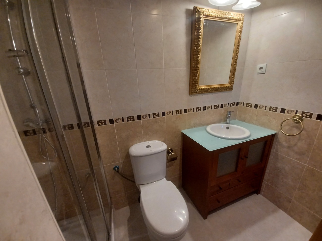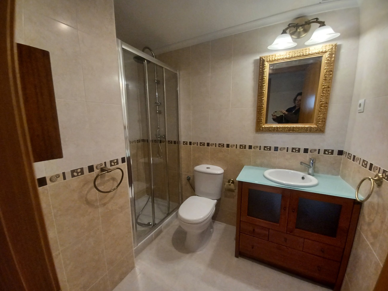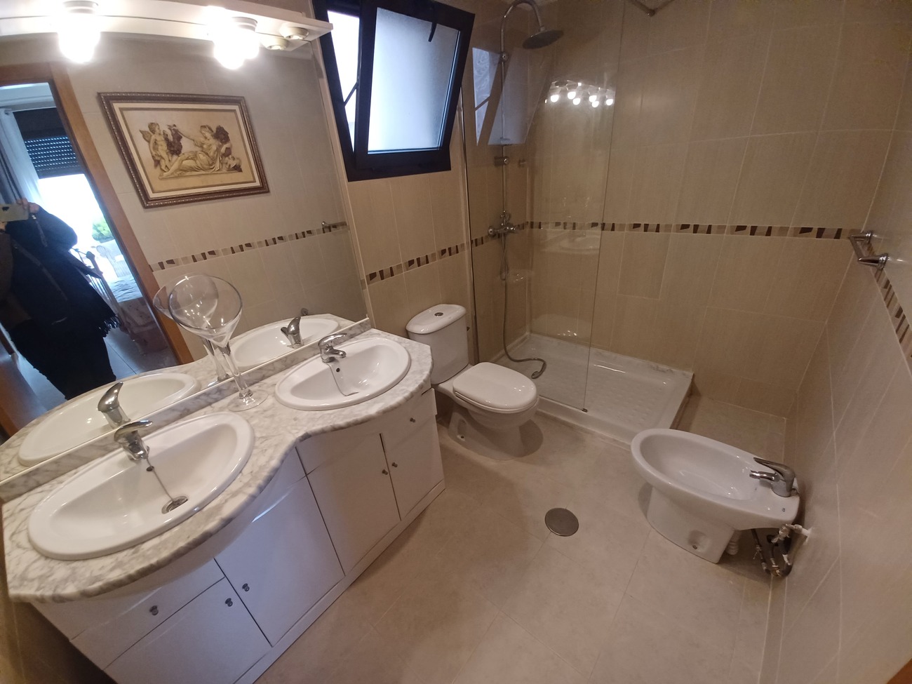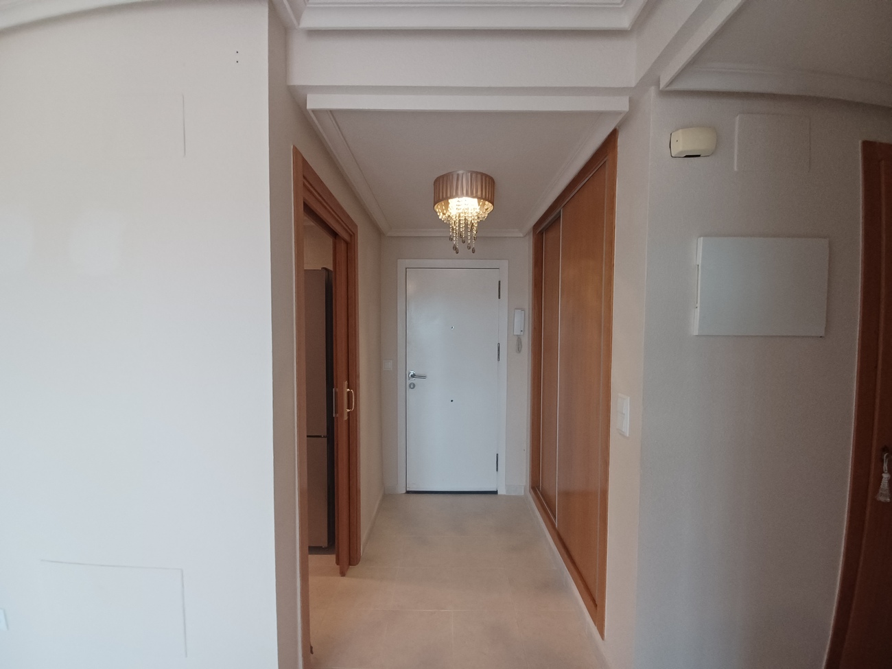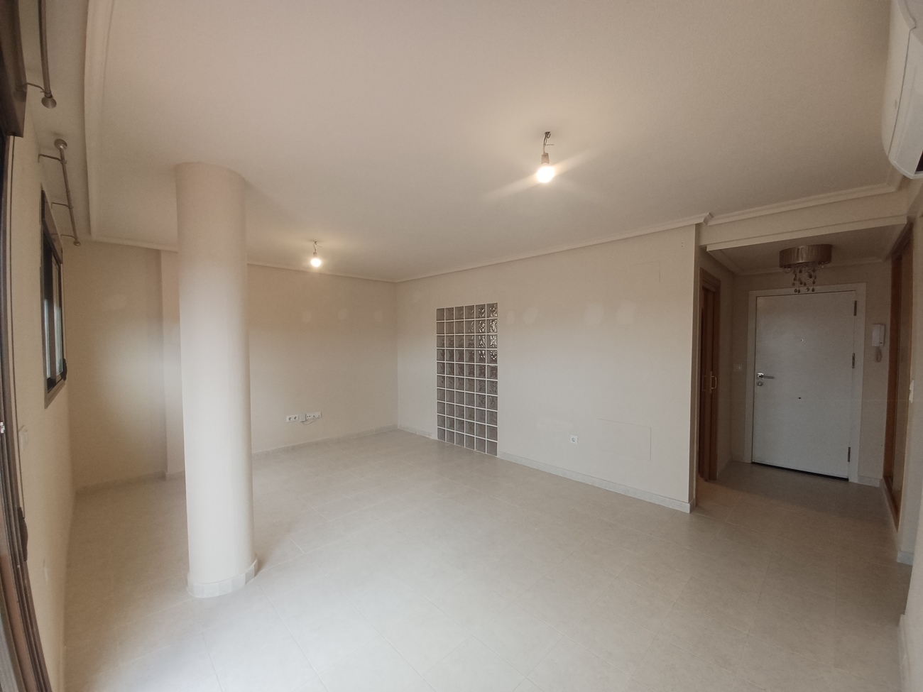 This spacious penthouse apartment offers plenty of outside space and modern interior.  The penthouse enters into a living/dining room with wardrobe storage at the front door, window, patio doors to a spacous outdoor terrace of 60m2, with views over the countryside and plenty of space to enjoy the sunshine and outdoor dining.  The kitchen is next to the living room, fully equipt with fitted kitchen cupboards, oven, hob, extractor, fridge freezer and washing machine.  there is a hallway from the living room leading to 2 double bedrooms, the first on the left hand side is a standard double with fitted wardrobes, window and blind.  The master bedroom is a double with double bed and bedside cabinet included, 2 double wardrobes and ensuite bathroom with double sink, walk in shower and wc.  The main bathroom has a shower, wc and vanity unit. The penthouse is situated on the top floor of La Vereda building with communal swimming pool and lift. Situated in the popular village of Sucina with supermarkets, bars, restaurants and all amenities to hand, it is a very convenient place to stay with everything within a short walk.  Just 20 minutes to the coast and 20 minutes to the airport.