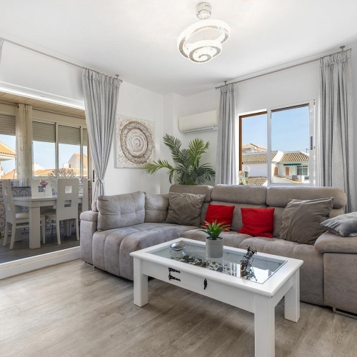 ¡Amplia vivienda con buenas vistas del mar!Esta propiedad ofrece el equilibrio perfecto entre comodidad, belleza y una ubicación privilegiada. Con 103m², cuenta con tres amplias habitaciones, dos de ellas con armarios empotrados y literas para mayor funcionalidad, un baño, un aseo, una cocina totalmente equipada y un gran lavadero muy bien ventilado. El salón-comedor con preciosas vistas y una luminosidad perfecta te permitirá disfrutar de esta vivienda ideal tanto en vacaciones como durante todo el año☀️.Relájate en la espectacular terraza en forma de L, con vistas panorámicas al mar. Este espacio es ideal para disfrutar del clima mediterráneo, organizar reuniones sociales o simplemente contemplar el atardecer mientras te relajas en la mejor compañía ✨.Ubicada en una zona con acceso a todo lo que necesitas, estarás rodeado de todas las comodidades: parques, zonas infantiles, supermercados y más. ¡Todo a tu alcance para una vida cómoda y sin complicaciones! ¡Ven a visitarla y convierte este lugar en tu hogar perfecto!✨