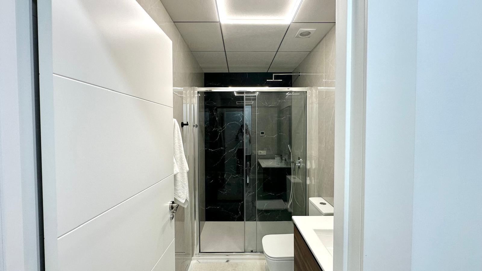 Spectacular renovated ground floor apartment next to Playa del Cura beach Located on the second line of the iconic Playa del Cura beach, this property represents a unique opportunity to enjoy comfort, design and proximity to the sea. With a total usable area of 90 m², this fully renovated ground floor apartment perfectly combines modernity, comfort and quality in every detail. From the outset, the property stands out for its excellent comprehensive refurbishment, where every aesthetic and functional aspect has been carefully considered. The property is delivered fully furnished and decorated in a modern and elegant style, using top-quality materials. All the furniture is new, as are the appliances, allowing you to move in without the need for any additional investment. The interior layout is spacious and well thought out. It has a cosy open-plan kitchen, equipped with contemporary furniture and connected directly to a bright open-plan living-dining room. This main room faces south, ensuring excellent light throughout the day. It also has a large panoramic window equipped with electric blinds, allowing you to enjoy natural light and the Mediterranean breeze in complete comfort. Comfort is assured thanks to its centralised air conditioning system with ECO technology, which guarantees an ideal temperature throughout the year while optimising energy consumption. The sleeping area consists of two spacious double bedrooms, both tastefully decorated and designed to offer maximum tranquillity. The master bedroom has an en-suite bathroom, providing privacy and functionality. The second bathroom, equally modern and fully equipped, serves the rest of the property. As an ideal complement, the property has a fabulous back garden, a perfect outdoor space for relaxing, enjoying family gatherings or creating a green and peaceful corner in the heart of the city. In short, this property combines all the qualities that define an exclusive home on the coast: an unbeatable location, high-quality materials, modern fittings and a design focused on comfort. Located just a few metres from the sea, it is an ideal choice as a permanent residence, holiday home or secure investment in one of the most sought-after areas of Torrevieja.