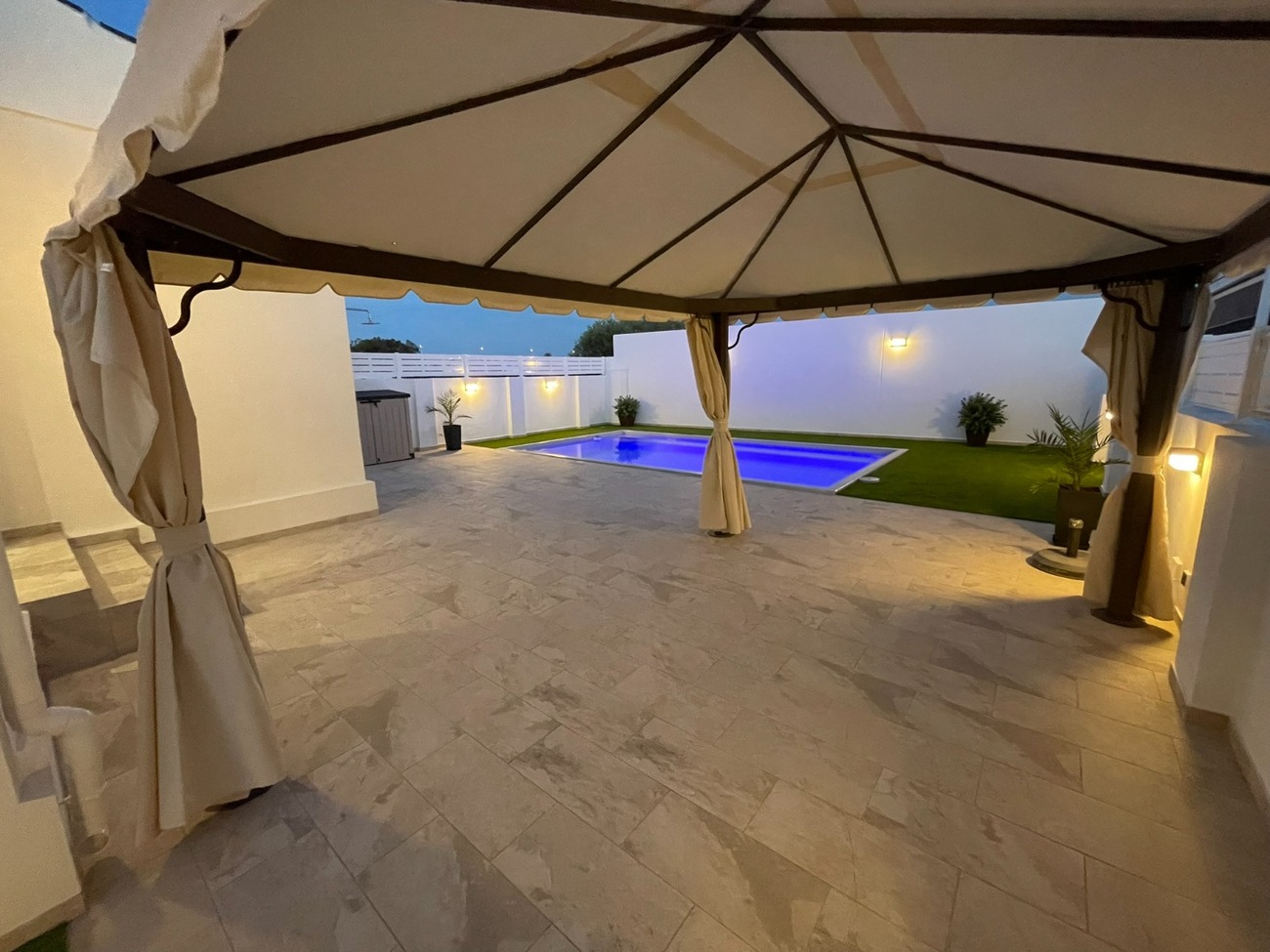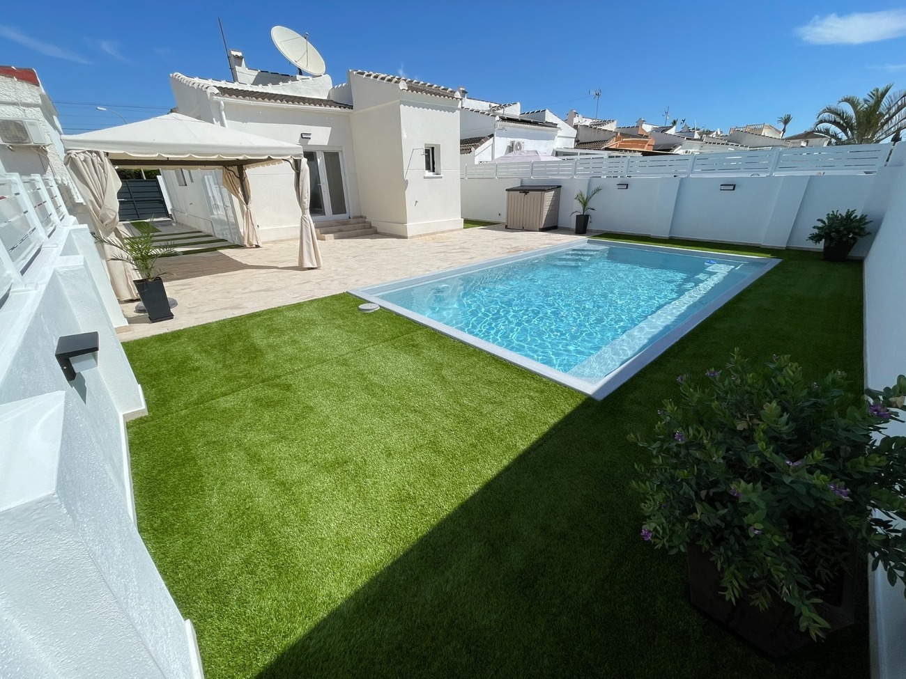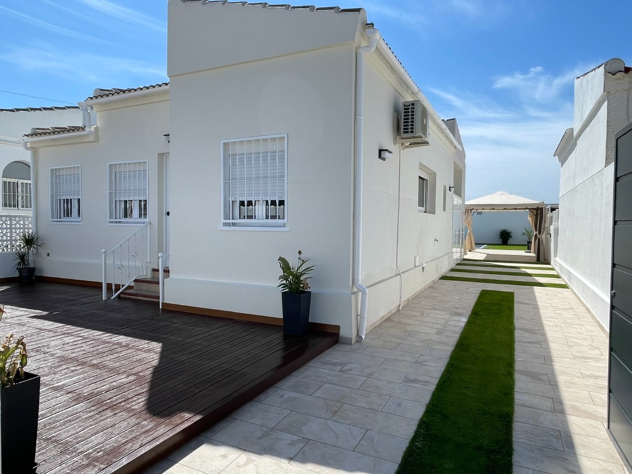 Moderne renoveret villa til salg, beliggende på en grund på 300 m² med 105 m² bebygget areal. Denne moderne designede ejendom har 3 rummelige soveværelser og 2 badeværelser, ideel til en familie.Villaen har en smuk terrasse, som giver et perfekt sted at slappe af og nyde vejret. En garageplads er inkluderet, hvilket giver ekstra bekvemmelighed.Ejendommen er i meget god stand, da den er brugt, men er blevet renoveret med kvalitetsmaterialer. Den er udstyret med indbyggede skabe i soveværelserne plus et opbevaringsrum til ekstra opbevaringsplads.Sydvendt, hvilket garanterer fremragende naturligt lys hele dagen. Bygget i 1988, men for nylig renoveret for at bringe det ajour med kravene til moderne levevis. Opvarmningen er individuel og fungerer ved hjælp af en varm/kold pumpe, der giver komfort hele året rundt.Ejendommen har en automatisk garage til to biler og et ekstra udendørs opbevaringsrum, SUMA/IBI (ejendomsskat): 268,82 euro.Gå ikke glip af denne mulighed for at nyde det bedste af det spanske kystliv!