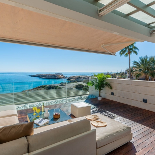 when you think you can be closer to heaven appears this duplex so you do not dream to live in it, a magnificent opportunity in 1 line of sea surrounded by a complex full of amenities such as heated pool, tropical outdoor pool, two tennis courts, basketball, paddle tennis, football, barbecue, large gardens and social club, children's playground, a lot of services that you must come to know, a very special place where you can enjoy in winter and summer you and your family and do not forget that you can celebrate whatever you want in the barbecue, bar cafeteria, maybe you can dream of more but this dream is almost complete.The property is situated on the 22nd and 23rd floor of a twenty-five storey building. The sea is the perfect place to have breakfast and relax before starting the day, a full moon night with the light of the candles in the glazed terrace is simply unbeatable. Duplex on two levels. It is distributed in 4 bedrooms with fitted wardrobes, 4 complete bathrooms en suite and a guest toilet, large kitchen. Spacious living-dining room with enviable views. Air conditioning and ducted heating throughout the house. Natural gas supply. Marble floors, exterior enclosures in aluminium with double glazing. Interior carpentry in oak wood. Sold furnished. Included in the price storage room and parking space.Located in an unbeatable area, first line of the beach Muchavista. with all the services of san juan beach to a step of you and the proximity of everything that campello can give you. Very quiet area and surrounded by all the necessary services for day to day life. Supermarkets such as, aldi, lidl, dia Mercadona, Carrefour, shopping centres las Bitácoras and Villamarco. A stone's throw from the Fabraquer school and five minutes by car from the French Lyceum. Good communications both by road and public transport, the tram stops 2 minutes walk away. Undoubtedly an ideal property for people who want to enjoy all year round a spacious, bright home in a quiet area and with all kinds of amenities. do not resist come to visit it as soon as possible