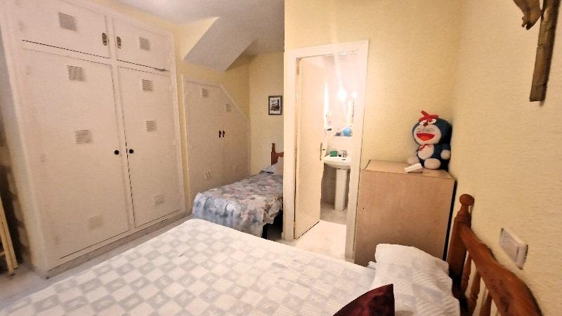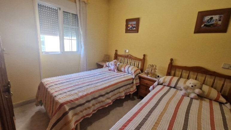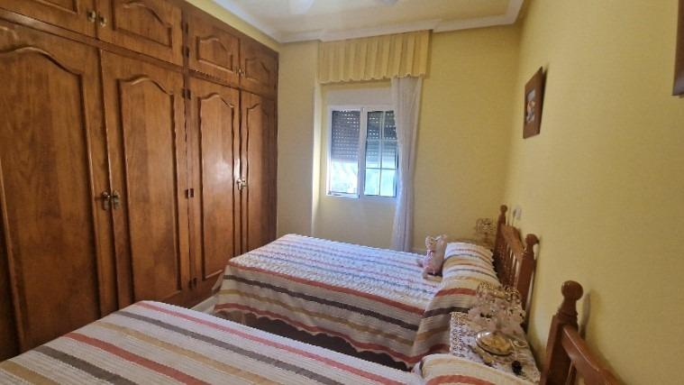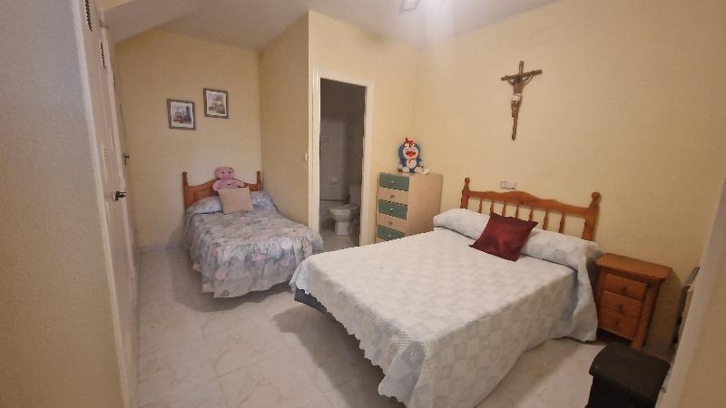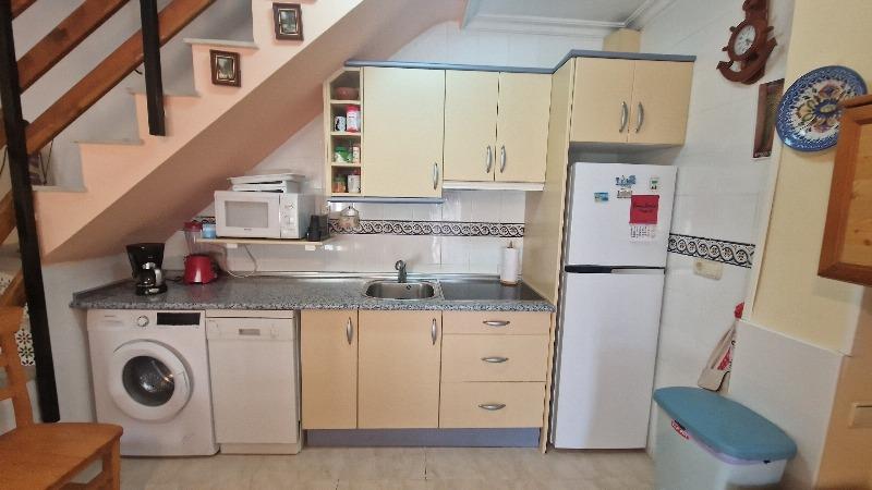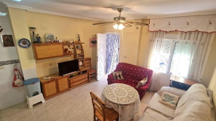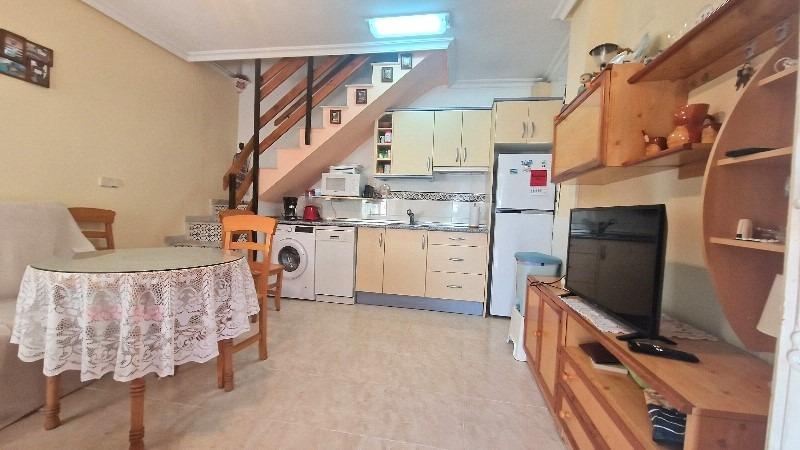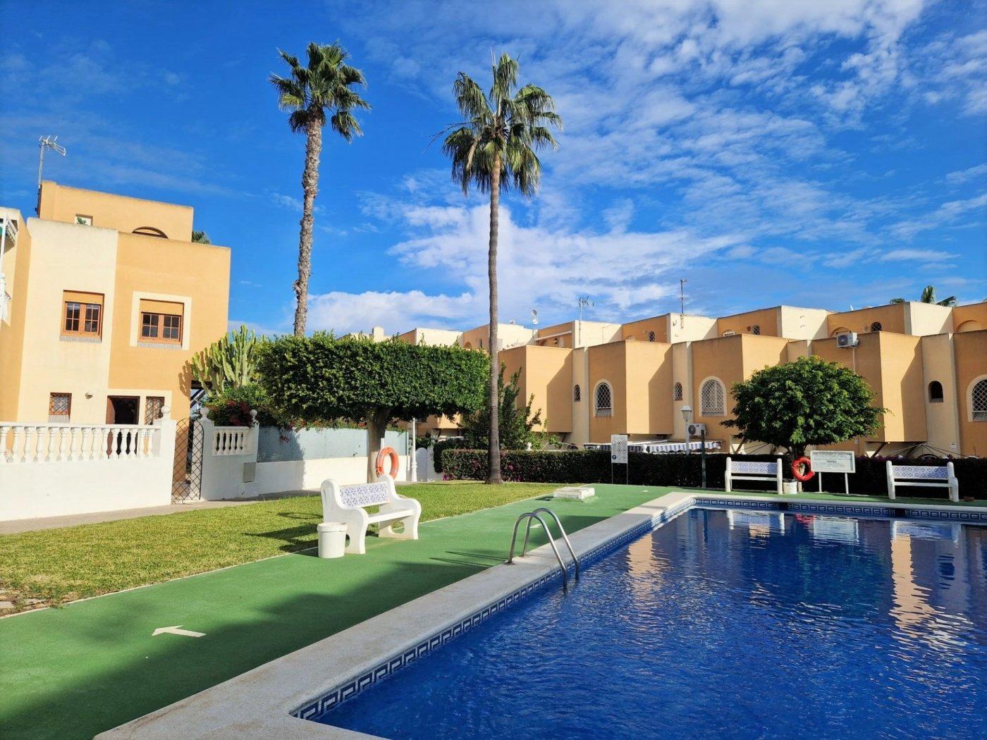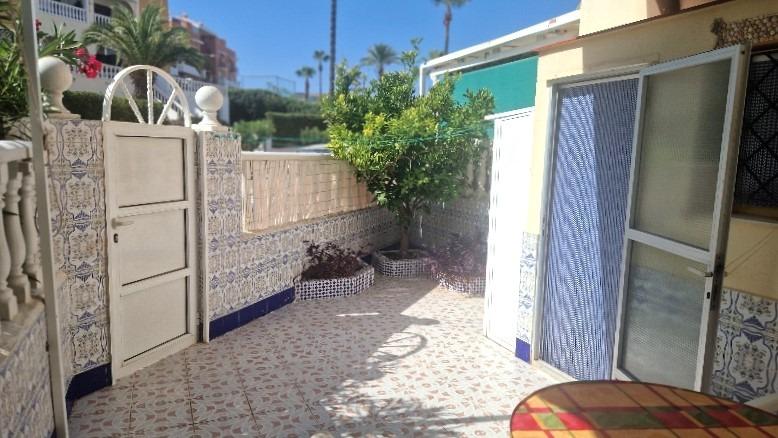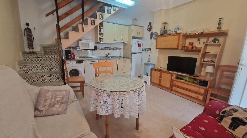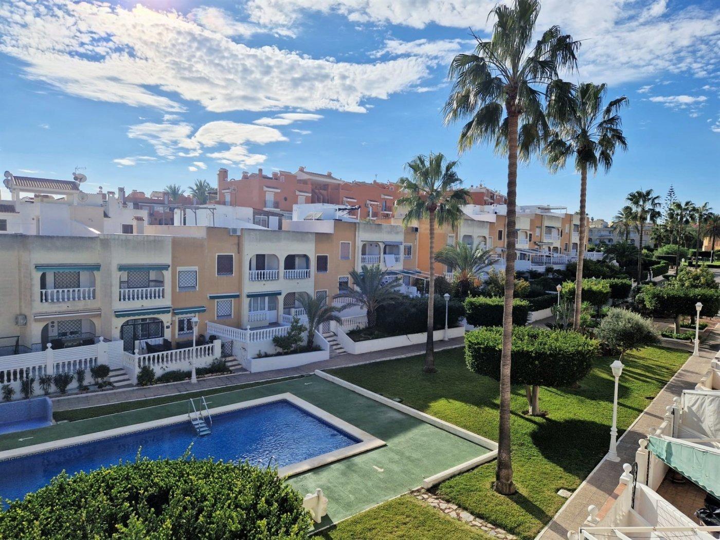 Duplex house (2 floors) with basement in good condition in a Residential Complex with clear views and a community pool near the Aromatic Park, about 20 minutes walk from the magnificent La Mata beach. It has a basement, a ground floor, a first floor and a large terrace. You access to the basement through a separate entrance, it has a double bedroom with built-in wardrobes, a living room and a toilet. The ground floor has a living room with access to the large terrace and a fully equipped open kitchen. And the first floor has a large double bedroom with built-in wardrobes and a bathroom with a shower. Furnished. Fans. Very large terrace. Storage room. Parking space in front of the house. Located in a beautiful residential with a swimming pool, gardens, sports areas and close to all services. Perfect to live all year round or spend the holidays with the family near the beach.