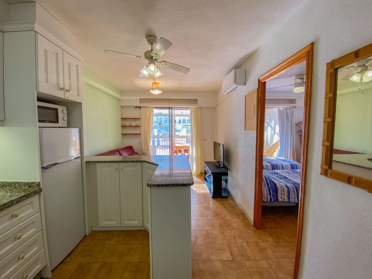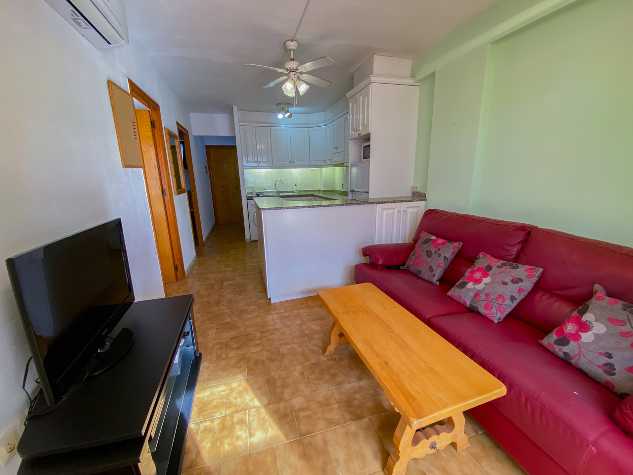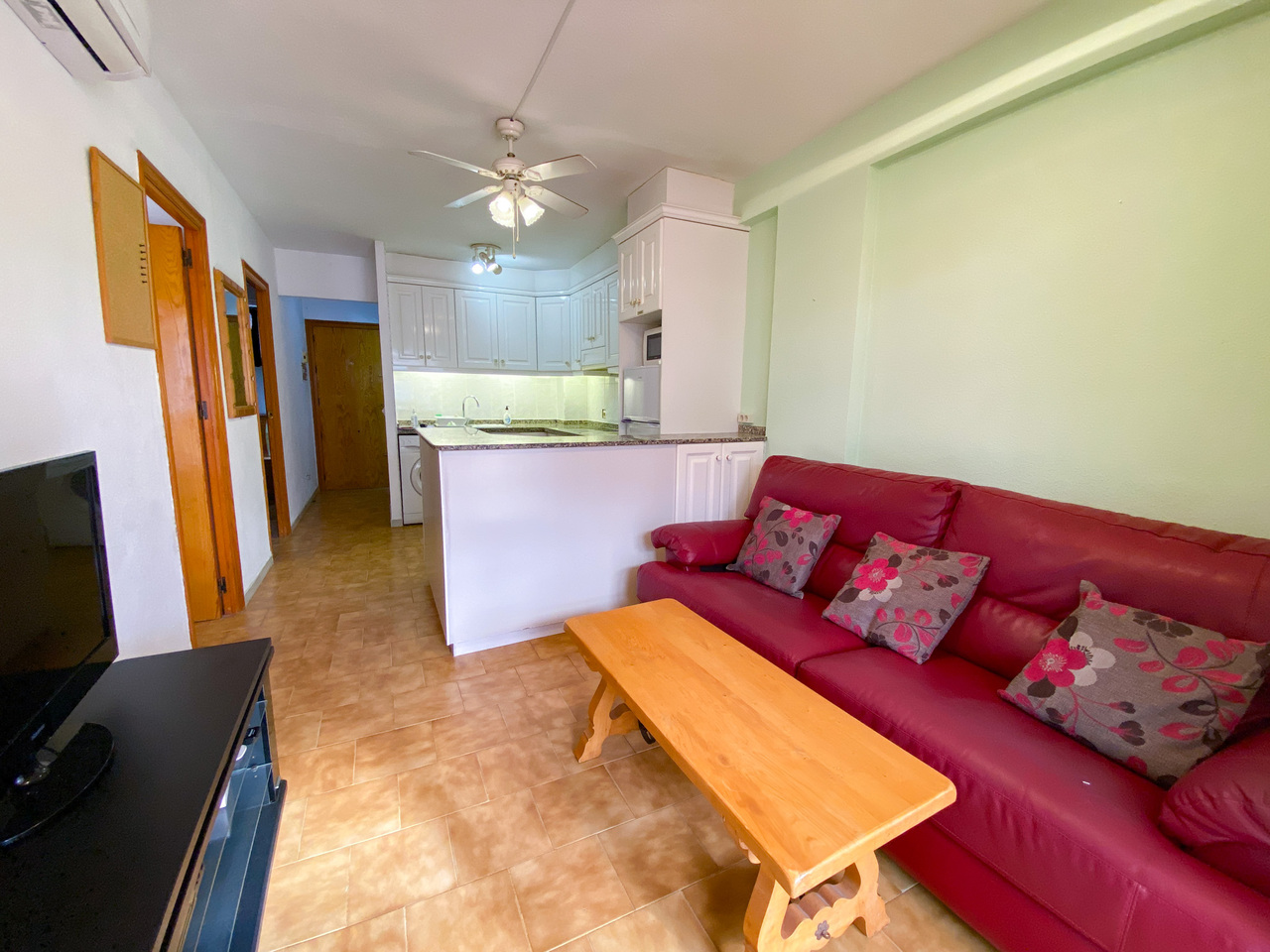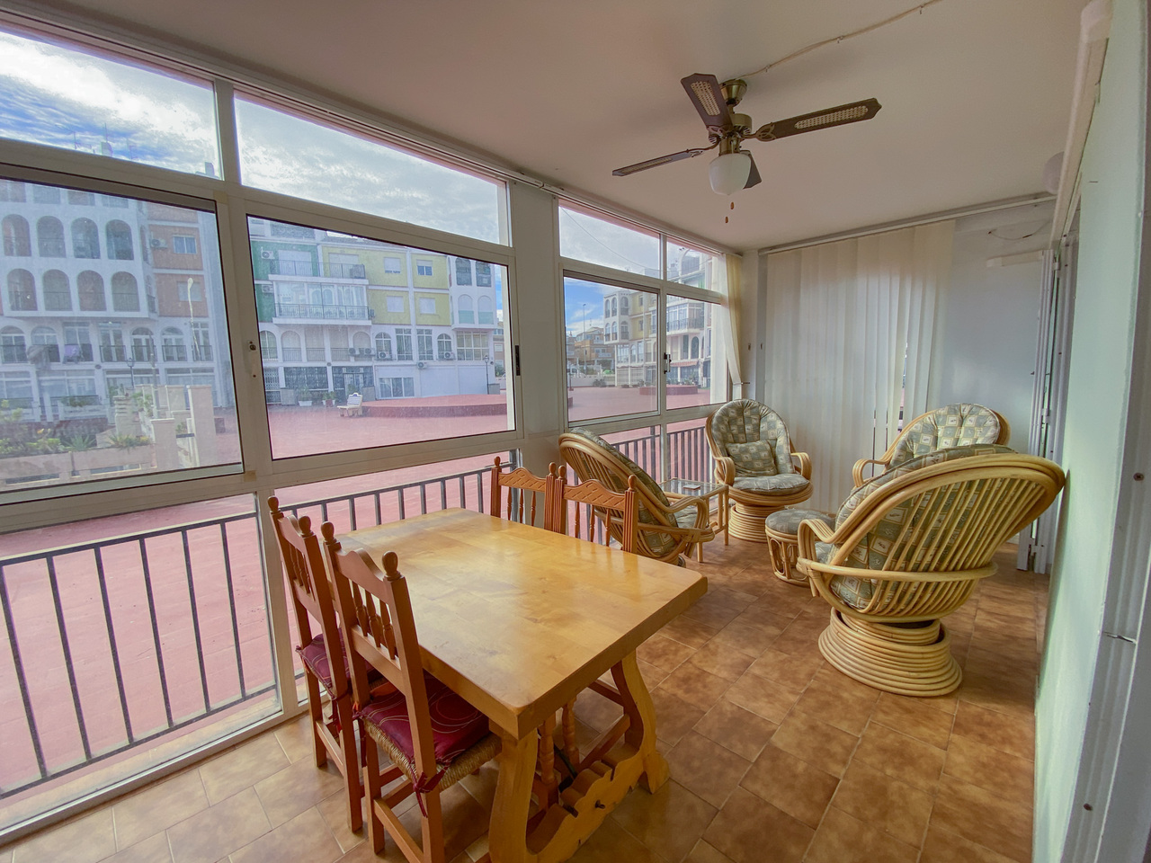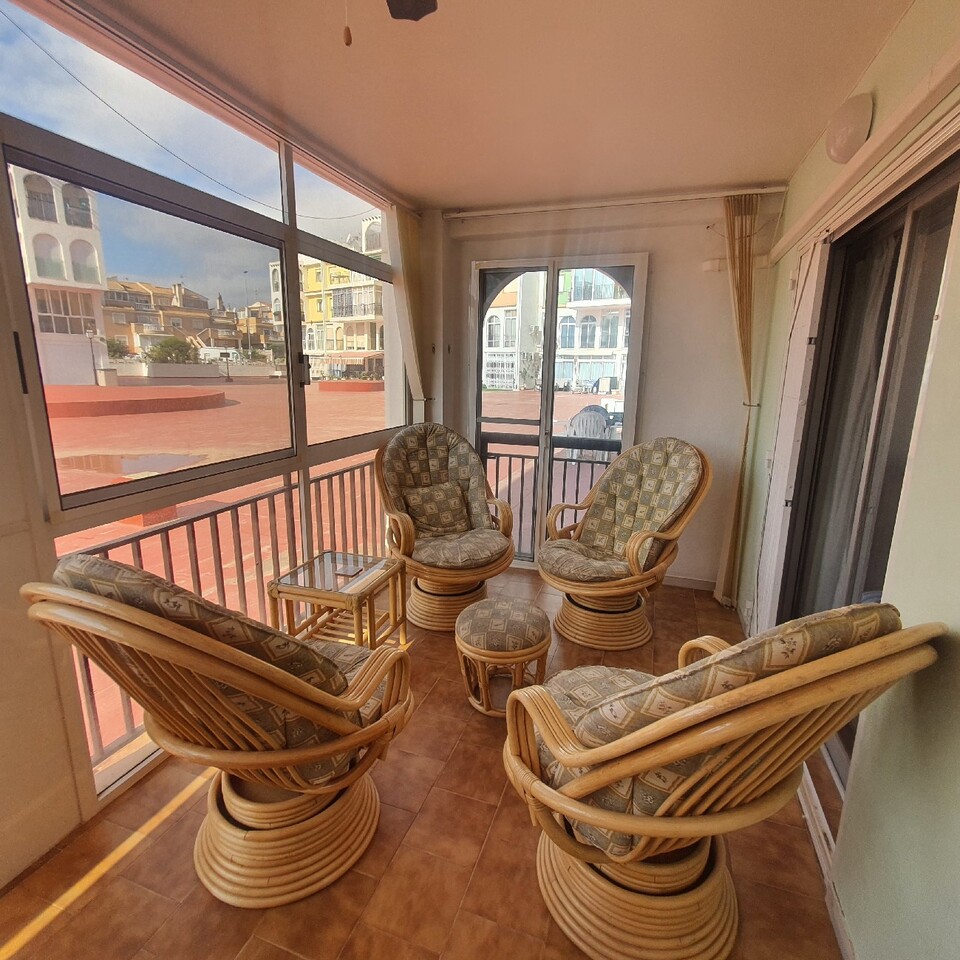 A south facing two bedroom ground floor apartment 200 m from the Mediterranean.Located 15 minutes walk from the Punta Prima shopping centers with a wide range of bars, restaurants and shops.Fully furnished. A large glazed in terrace area with access to the communal terrace.