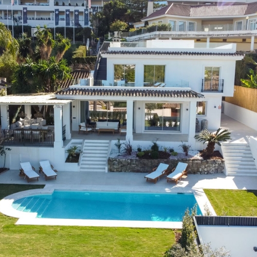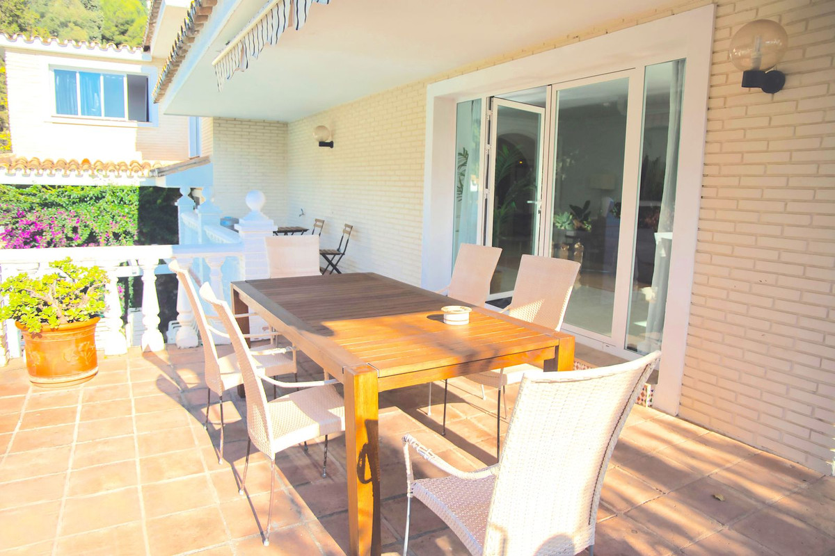 Detached Villa, La Capellania, Costa del Sol.5 Bedrooms, 4 Bathrooms, Built 188 m², Terrace 50 m², Garden/Plot 1045 m².Setting : Close To Town, Close To Schools, Urbanisation.Orientation : South West.Condition : Good.Pool : Private.Climate Control : Air Conditioning, Hot A/C, Cold A/C, Fireplace.Views : Sea, Garden, Pool, Street.Features : Covered Terrace, Fitted Wardrobes, Near Transport, Private Terrace, Guest Apartment, Storage Room, Utility Room, Ensuite Bathroom, Double Glazing.Furniture : Optional.Kitchen : Fully Fitted.Garden : Private.Security : Gated Complex, Entry Phone, Alarm System.Parking : Covered, More Than One.Utilities : Electricity, Drinkable Water, Telephone.Category : Resale.
