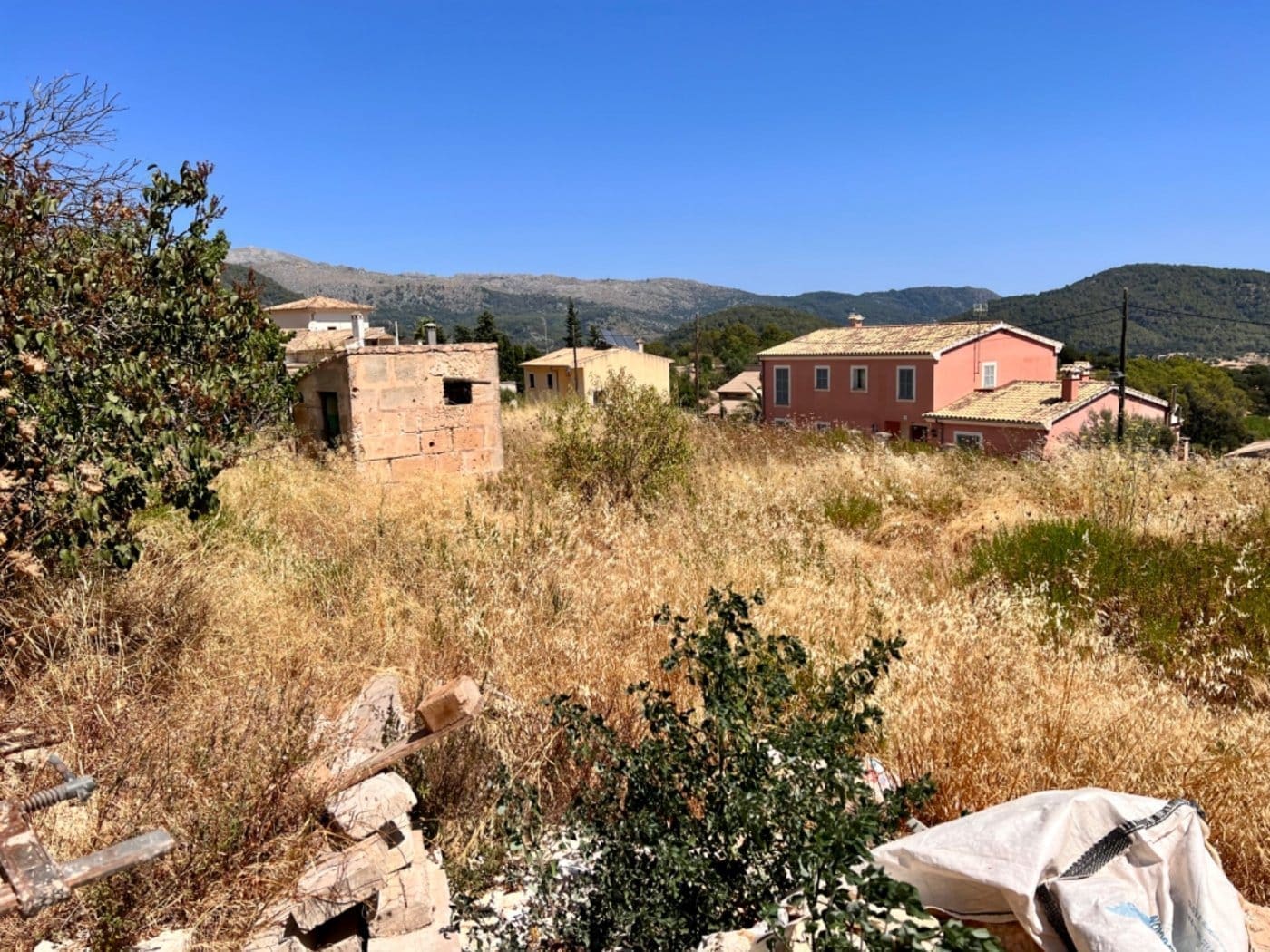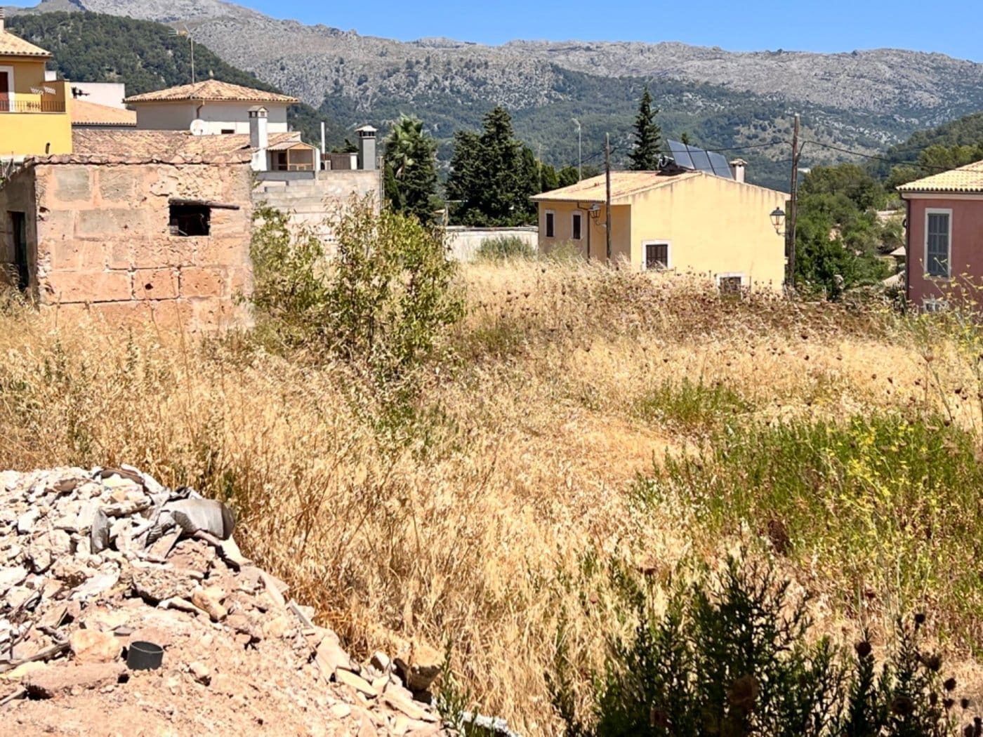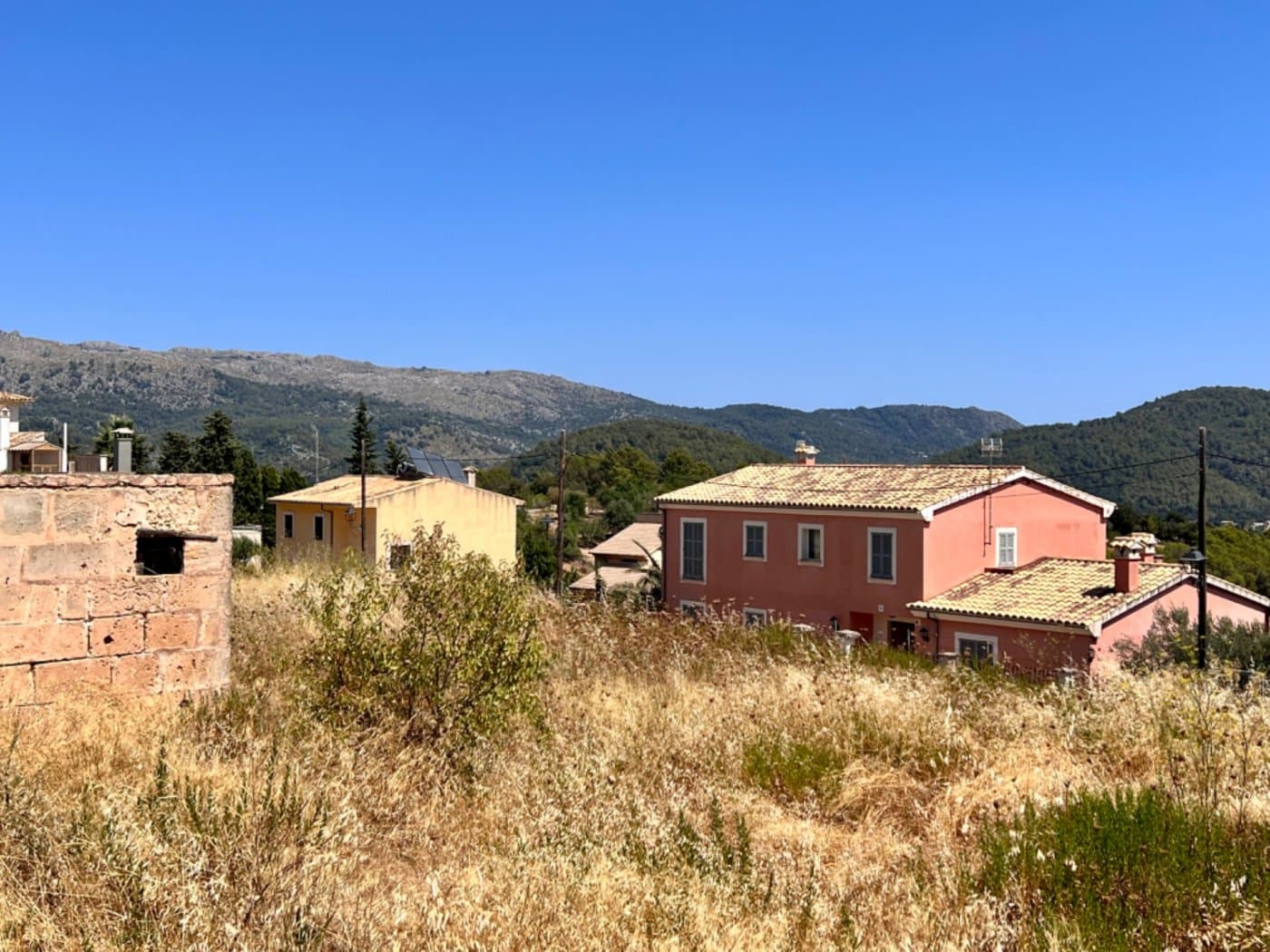 Building plot for sale Mallorca, situated in the upper area of the village of Campanet close to Plaza Son Puca above the principal plaza of the village Plaza Major. The plot has open views to the East of the bay of Alcudia and the coastline as far as the Arta peninsula. The size of the plot, 370m2 offers the option of a house of 300m2 with three or four bedrooms and two bathrooms over two levels with a 150m2 garden, swimming pool and garage.