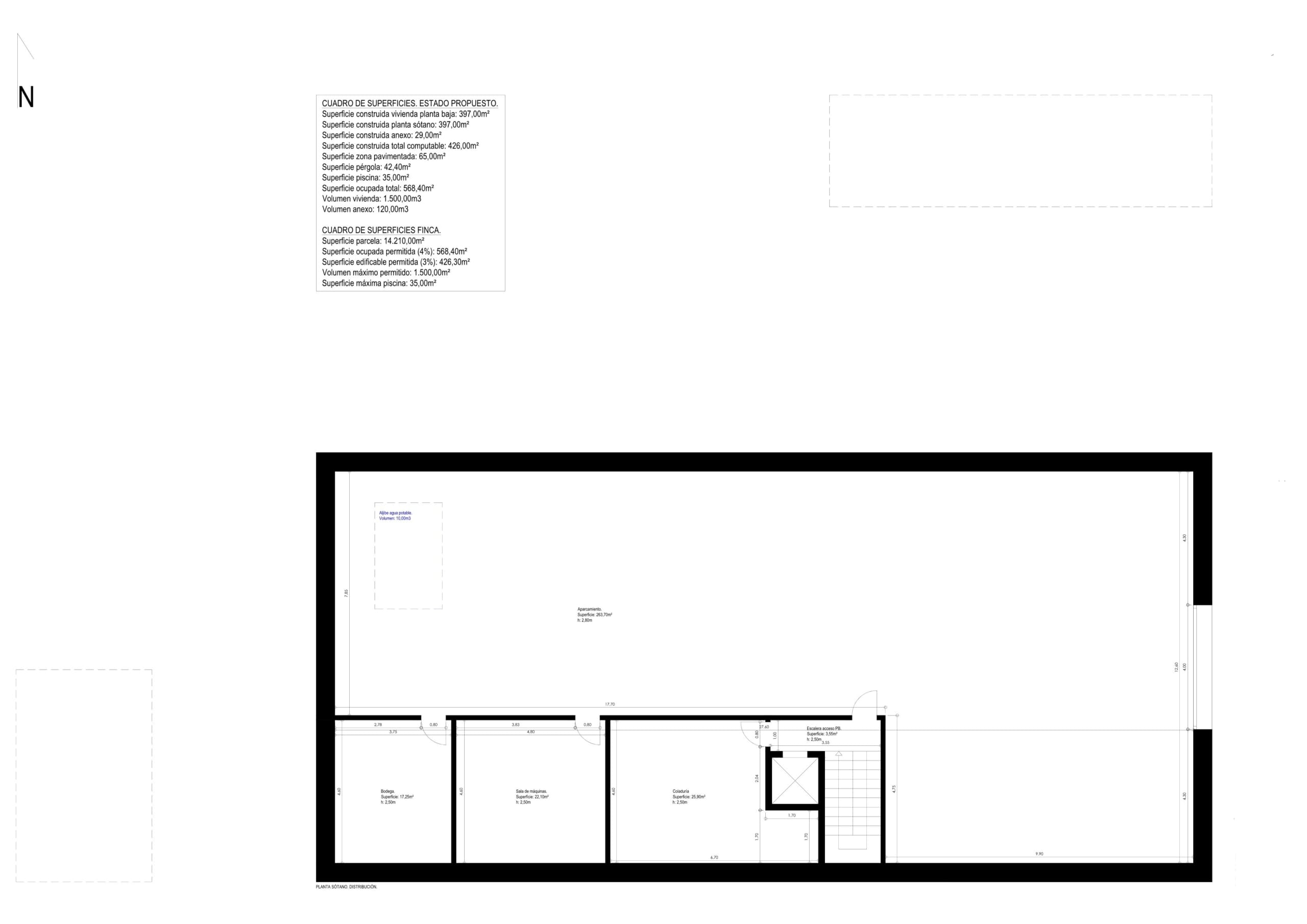 This a project for a luxurious residence which has just be granted full planning permission to build in the picturesque area of Marratxinet, one of Marratxí’s most exclusive neighbourhoods, this tranquil plot provides breath taking panoramic views. This stunning home features a design that beautifully merges modern sophistication with a respect for the surrounding natural landscape, offering a lifestyle like no other. The centre piece of this rural plot a spacious and comfortable villa of 426m2 with an open plan living space of 126m2 with a double height vaulted ceiling of 12.6m2 with a lounge and kitchen dinner which is filled with sun light from the pool and garden surrounding the house. In an adjacent wing of the house there are six double bedrooms each with an ensuite bathroom and a dressing room or fitted wardrobes. Below a huge basement which has a parking area of 263,70m2 with a 17,25m2, wine cellar and 25,90m2 utility room. A 29m2 annex which offers the buyer the option of seventh bedroom with an ensuite bathroom or a private office or an artist’s studio.