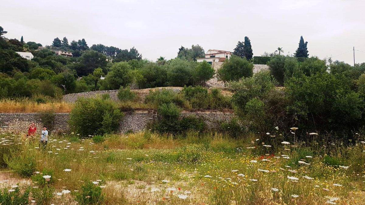 An urban plot with the outline of a project for sale in Galilea, Puigpunyent. The plot of 2,251 m², of which 1,001 m² is urban, would allow the construction of a house of approximately 250 m² on the ground floor and on the first floor with a total living space of approximately 500m2 including porches, garden terraces and a swimming pool. There are water and electricity connections, as well as a sewage connection, all close to the entrance to the plot.