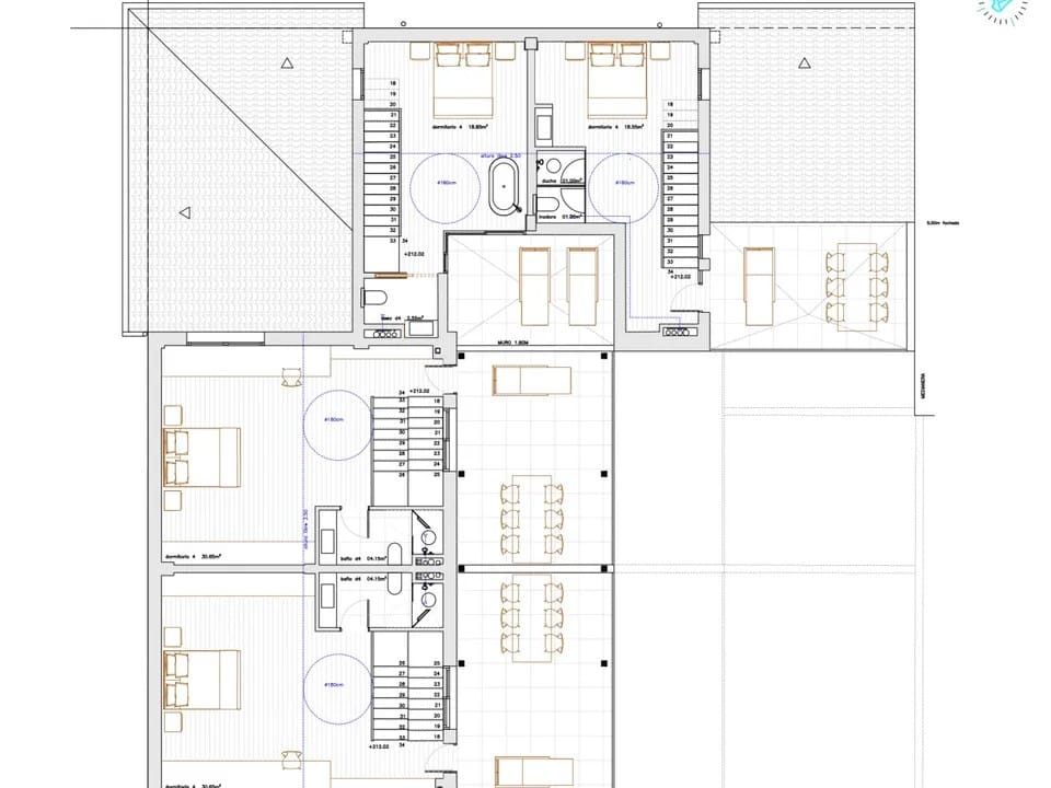 The corner plot which measures 404 m2 and is surrounded by other charming properties with incredible mountain views. The plot has a project and building permit for four three-story semi-detached houses, one with a private pool. Each of the homes, has four bedrooms, three bathrooms, and a private garage accommodating one vehicle with a total built area of 212m².
