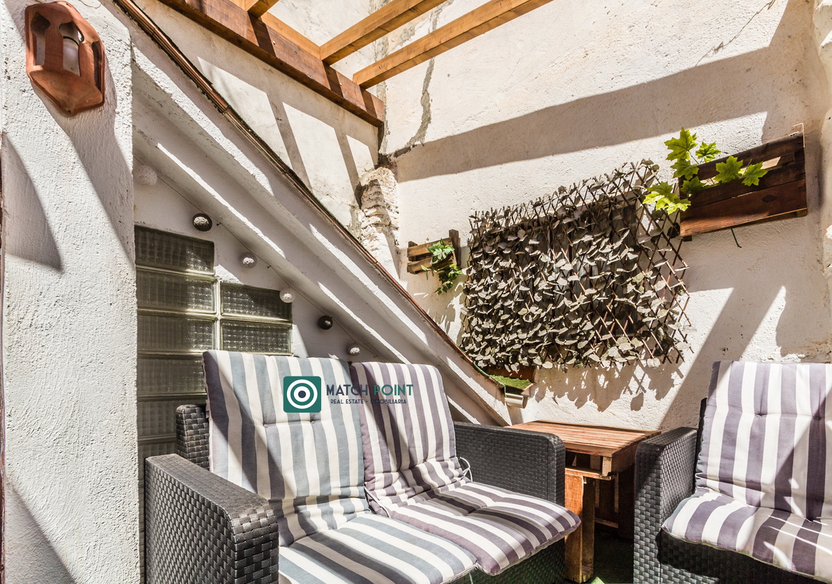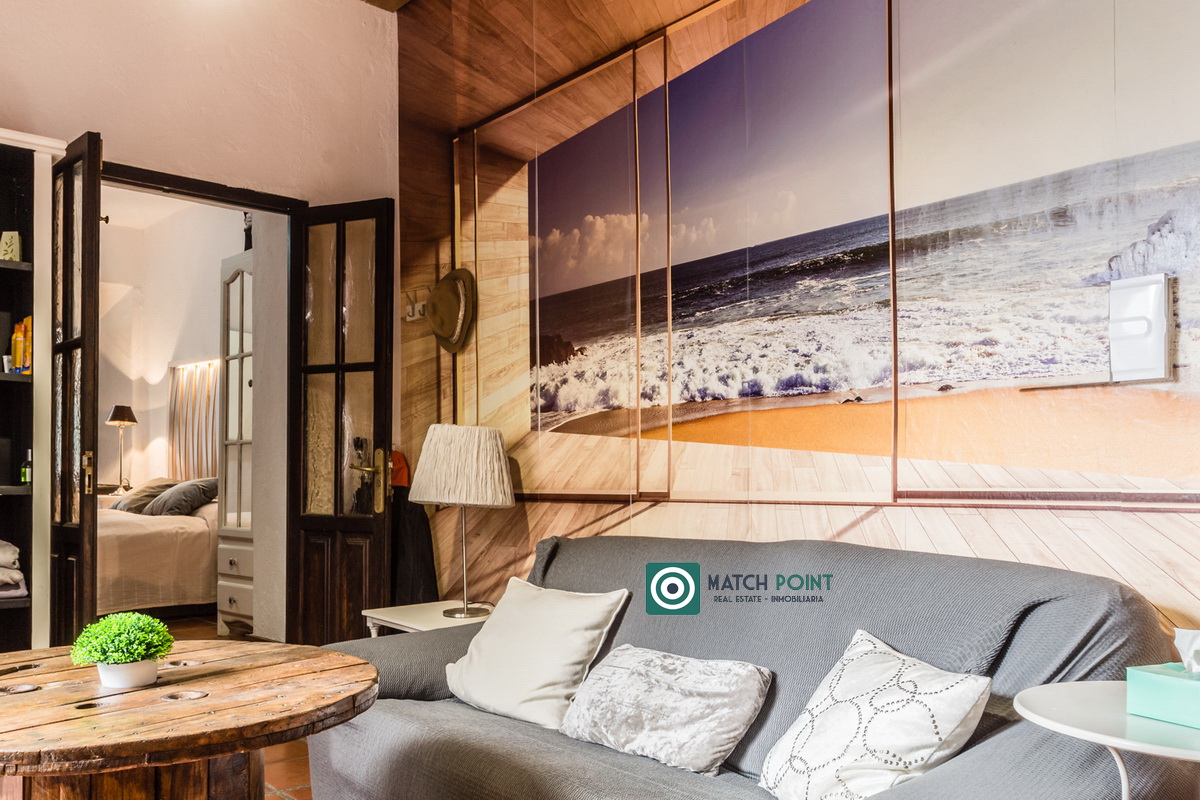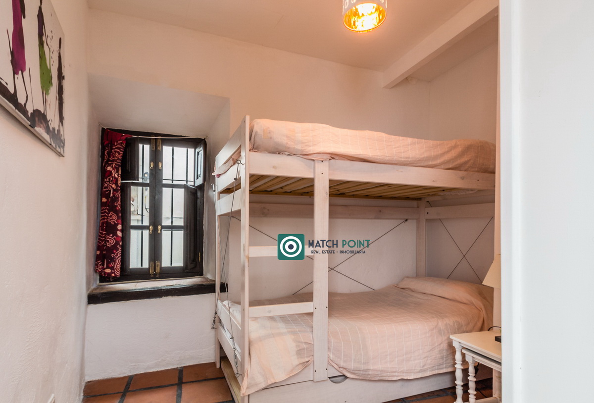 In the heart of the city centre, in the old town, but 160m from the promenade and the Puerta del Mar beach, with everything you need next door, bars, restaurants, pharmacy, etc. and what not, less than five minutes walk, in an old house with only three neighbours, we offer for winter rental, this beautiful newly renovated flat. The access to the flat is through an inner courtyard and has an access with 10 stairs. We start the photographic visit on the charming terrace, where you can enjoy our magnificent climate both day and night, which has an awning to protect you from the sun. We go down the beautiful wooden stairs and access the main floor, where the interior patio stands out, here we have the second bedroom with bunk beds. There is also the master bedroom, the living room, the kitchen and the bathroom with shower. A cosy property to enjoy the winter in Almunecar. Only available from September to June