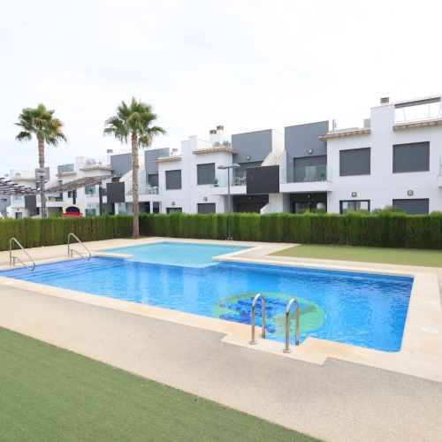 Beautiful three bedroom ground floor duplex situated only 300 meters from the sandy beaches of La Torre de la Horadada & 200 meters from the many bars, restaurants, shops and marina. This property is located in a small enclosed urbanisation with community pool, the property has a large front and back terrace and 2 bathrooms, 1 is ensuite.