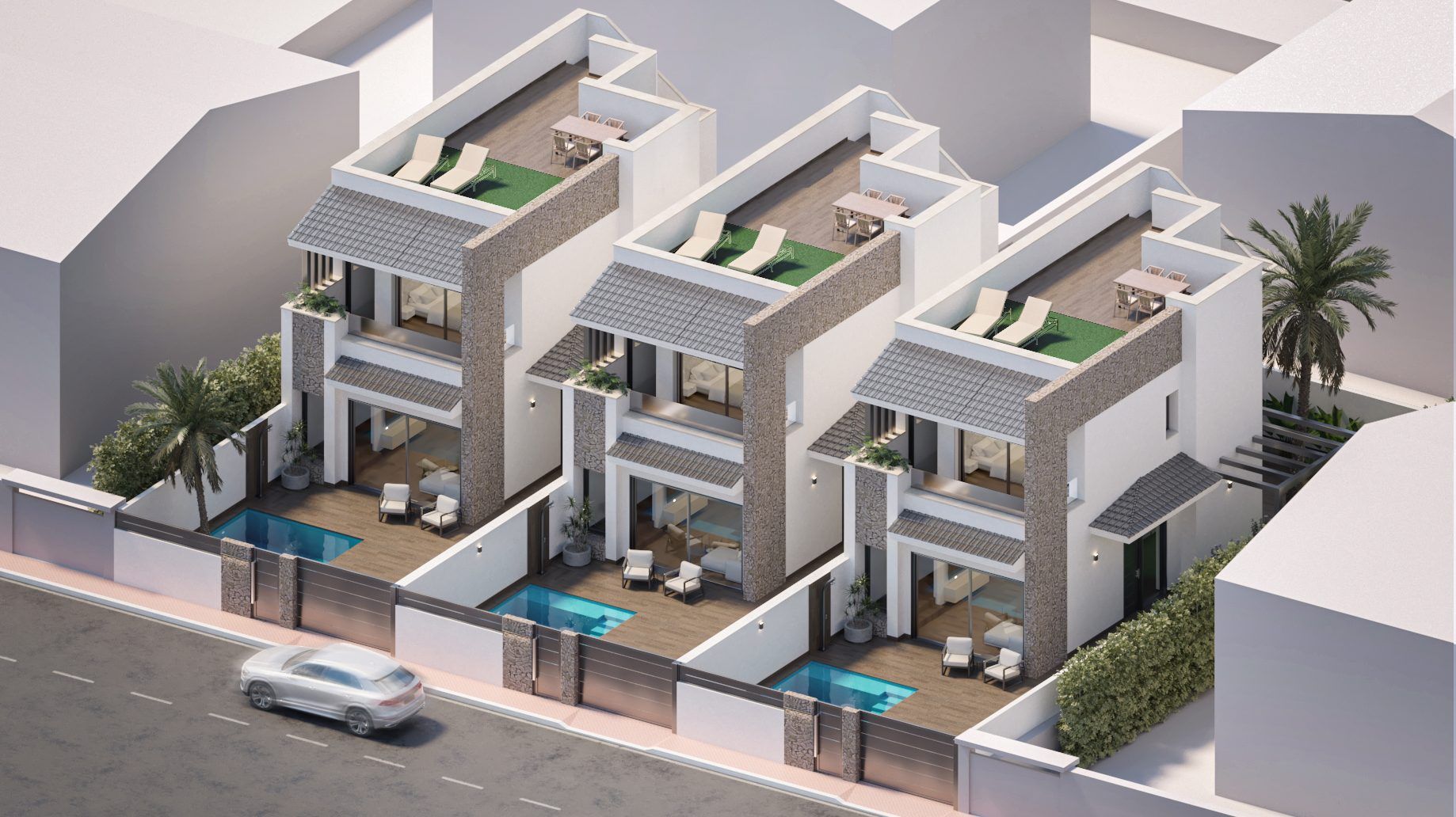 . Capricho 3 - Experience the comfort of Villa 1, a stylish villa nestled in the charming town of San Pedro del Pinatar, Murcia. With three welcoming bedrooms and modern bathrooms, this home invites you to enjoy relaxing moments in your own private oasis. Take full advantage of the bright solarium and unwind on the spacious terrace, perfect for soaking up the Mediterranean sun. A private pool completes the scene, offering endless opportunities for fun and relaxation. Discover an elegant lifestyle where every day feels like a holiday.