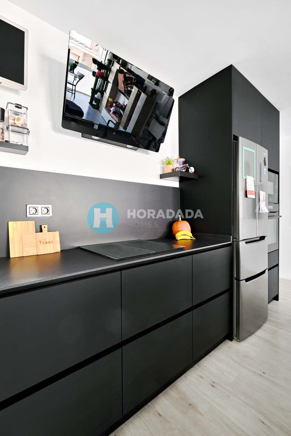 Welcome to this modern and stylish industrial-style apartment located on the second line of the sea, next to the Jesuitas beach in Torre de la Horadada.This amazing apartment has been recently refurbished throughout, consisting of three bedrooms, each with adaptable made to measure furniture. In each of the rooms you can either extend or integrate it according to your needs. In the case of the children's room it is convertible to a large games room or in the case of the third bedroom it is convertible to a spacious office, all the furniture is of high quality. The curtains are automatic as well as underfloor heating in the bathroom. The house has 4 televisions and powerful air-conditioning and heating in all rooms.The kitchen is fully equipped and integrated with an island bar, where there is an interior exit to a patio equipped with a shower, laundry room and storage. This also means that there is cross ventilation throughout the house, without any problems with odours or humidity. This patio has a removable staircase that gives access to a solarium with sea views.The house is on the top floor and has been completely soundproofed and thermally insulated for maximum comfort and relaxation throughout the year.The building has been recently renovated by this community of neighbours, with a modern lift and video intercom, only 400 Euros per year.Don't miss the opportunity to live with the best qualities by the sea! Book your visit today.