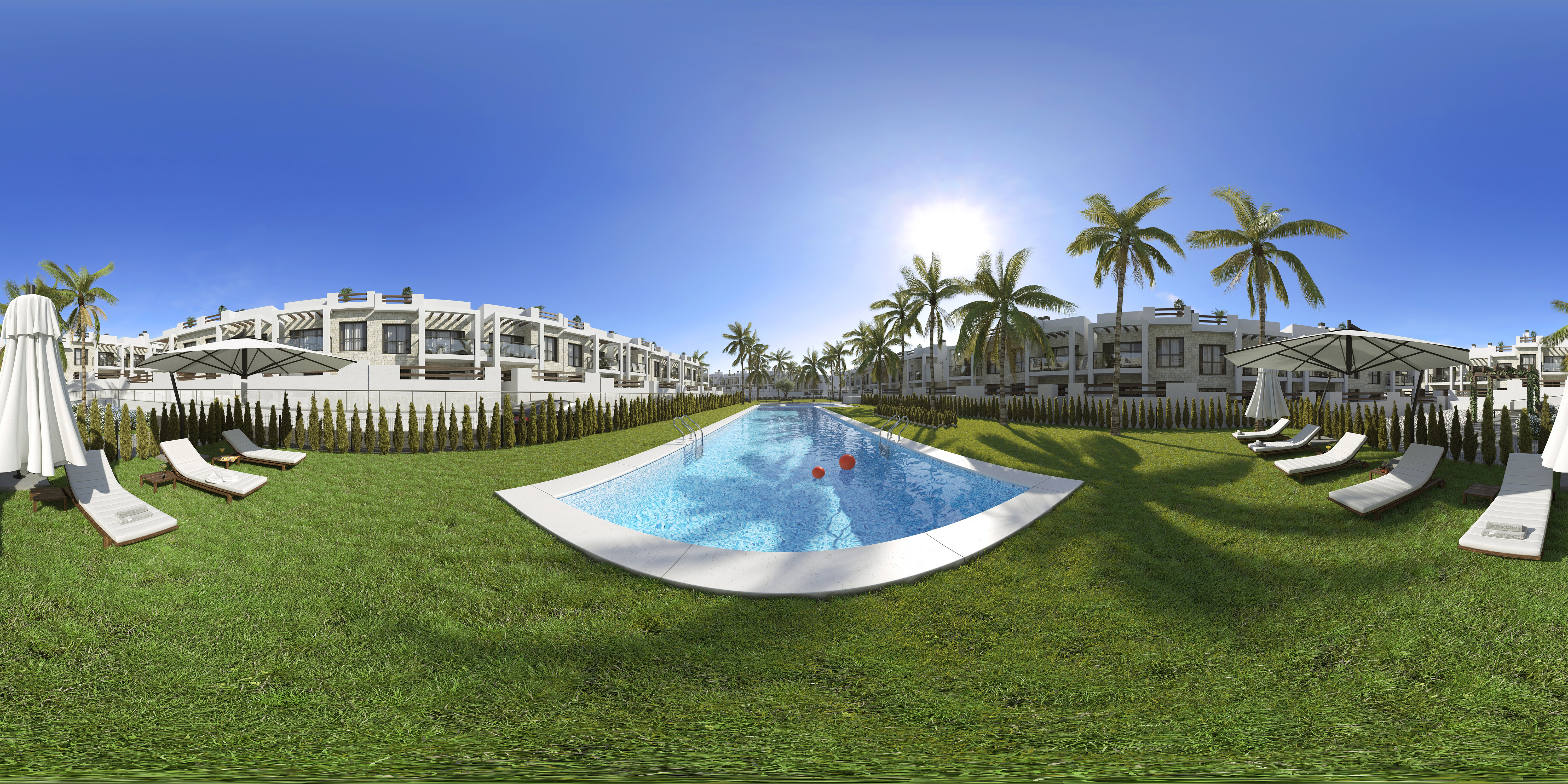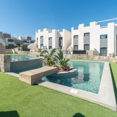 Dette boligprojekt ligger i en fredelig del af Los Balcones, overfor naturparken Las Salinas de Torrevieja og La Mata. Der er noget for enhver i dette projekt. Om du vil hvile i et roligt område ved swimmingpoolen, nyde solen eller have en sjov ferie med børnene. Boligprojektet ligger Inden for rækkevidde af Torrevieja by og alle dens faciliteter. Projektet ligger tæt på supermarkeder, et stenkast fra Zenia Boulevard shoppingcenter samt fire golfbaner.