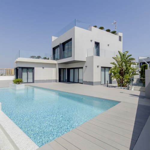 Villaer i Dehesa de Campoamor Velkommen til vores flagskibsprojekt – en eksklusiv samling af fritliggende luksusvillaer i det eftertragtede Dehesa de Campoamor. Projektet er skabt til de mest krævende kunder og ligger kun 4 minutter fra Orihuela-strandene, tæt på alle nødvendige faciliteter såsom restauranter, supermarkeder og apoteker.