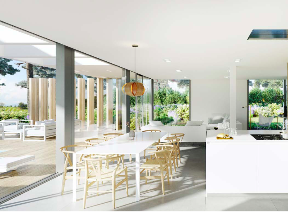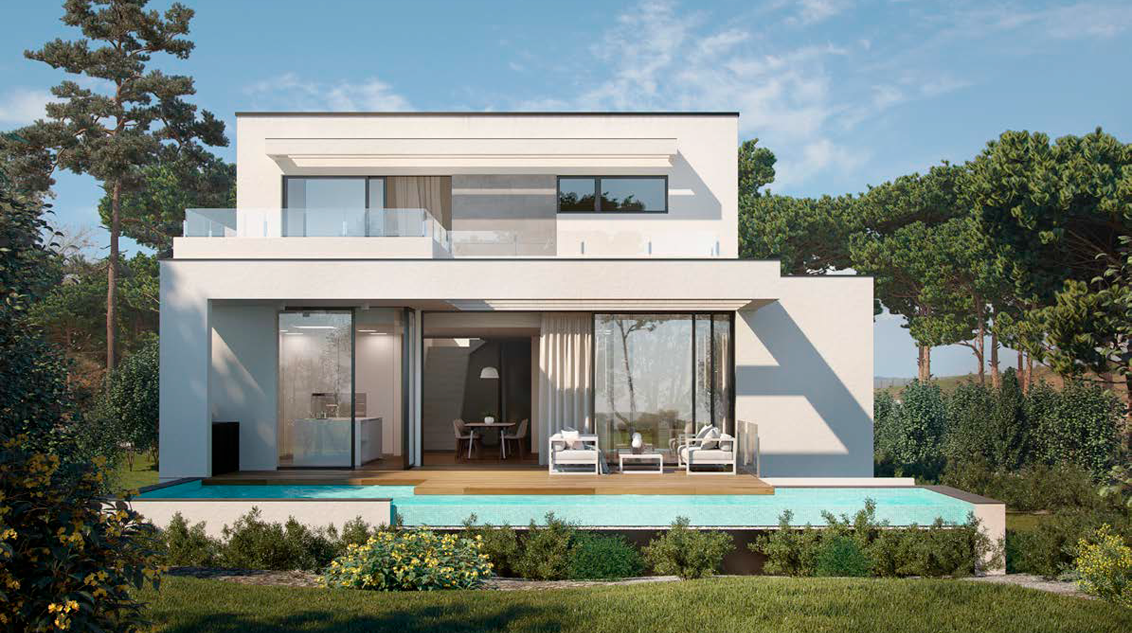 Ejendommen er fordelt på to etager og en kælder, der omfatter et multifunktionelt område, som udvikler sig i overensstemmelse med individuelle livsstilsbehov. De tre soveværelser i stueetagen har direkte adgang til en veranda, der fører direkte ind i haven. Det store soveværelse på første sal har sin egen private terrasse med betagende udsigt over byen. De vigtigste boligarealer er åbne og har et topmoderne køkken samt en rummelig stue og spisestue.