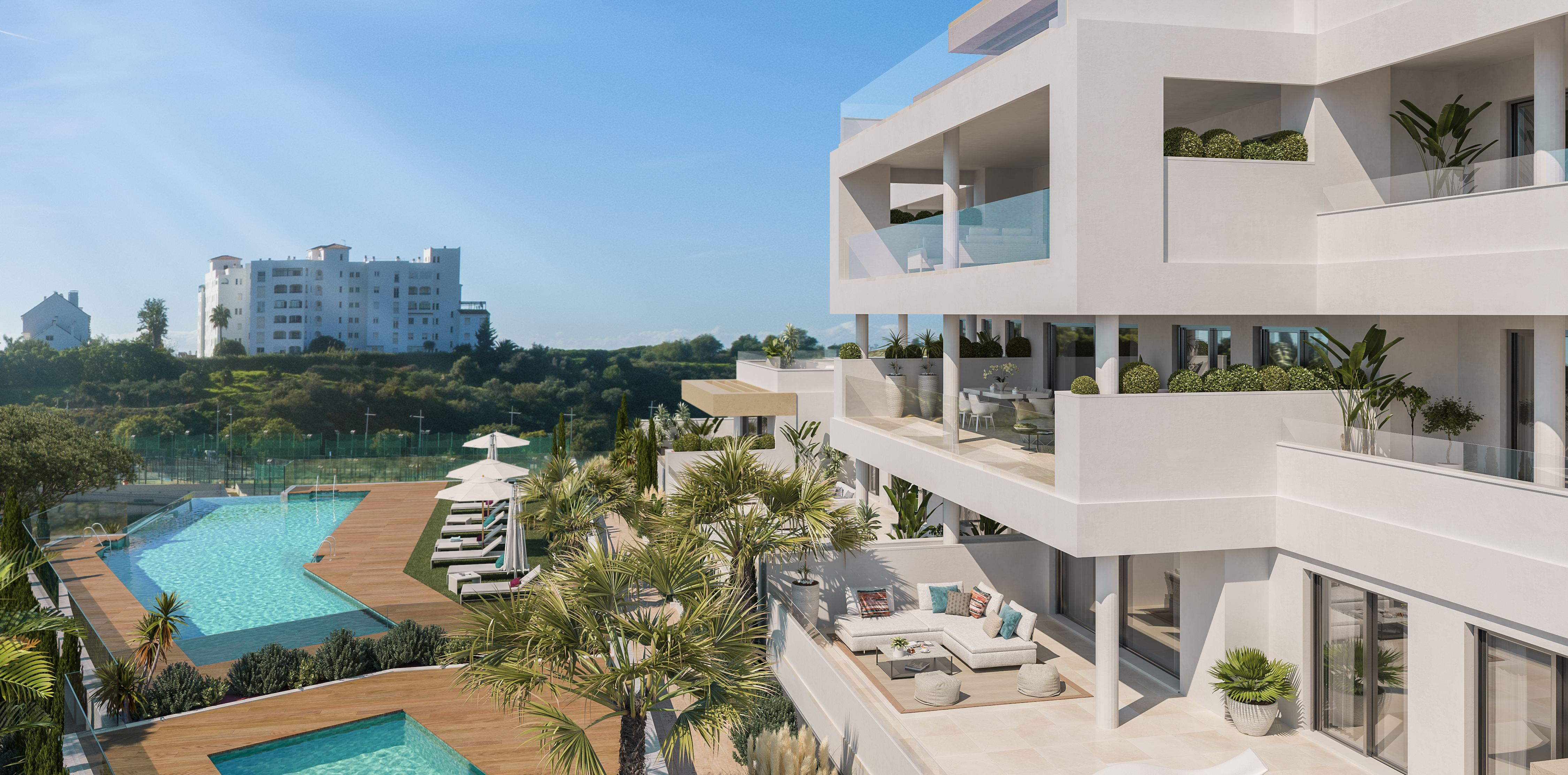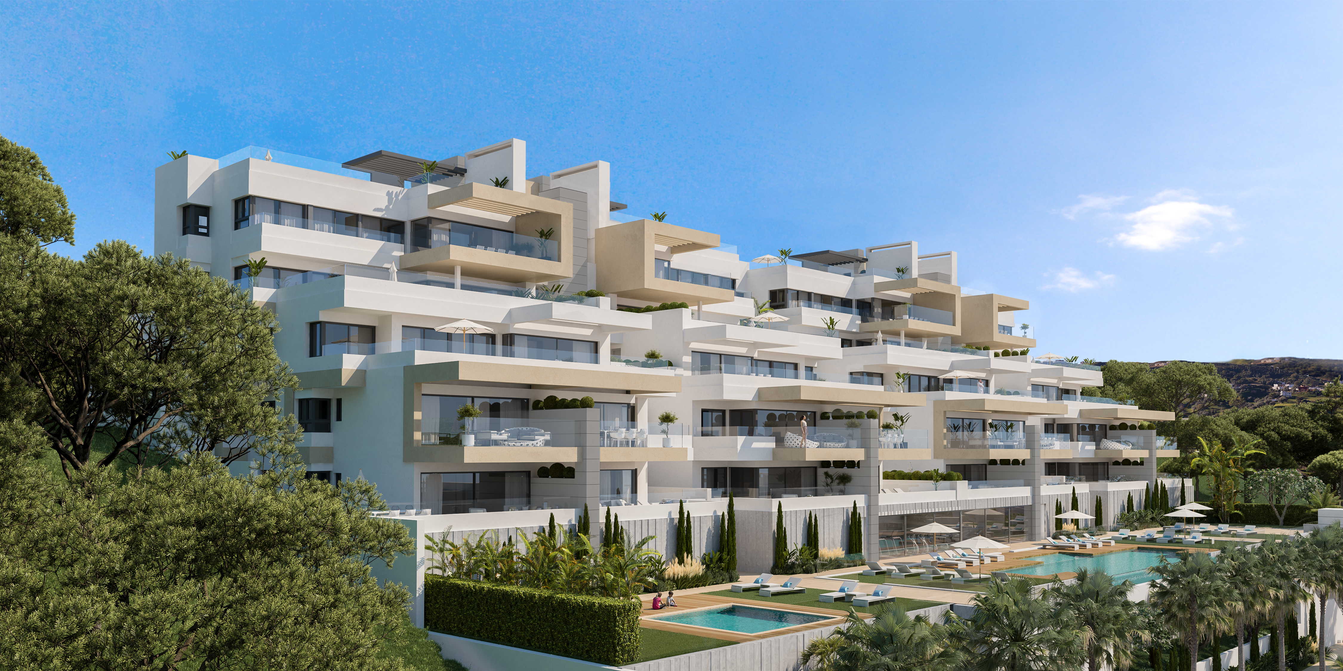 Nyt byggeprojekt bestående af 2- 3- eller 4- værelses lejligheder med garage og opbevaringsrum. Det ligger i Las Mesas-distriktet i Estepona, et af de nye udvidelsesområder.