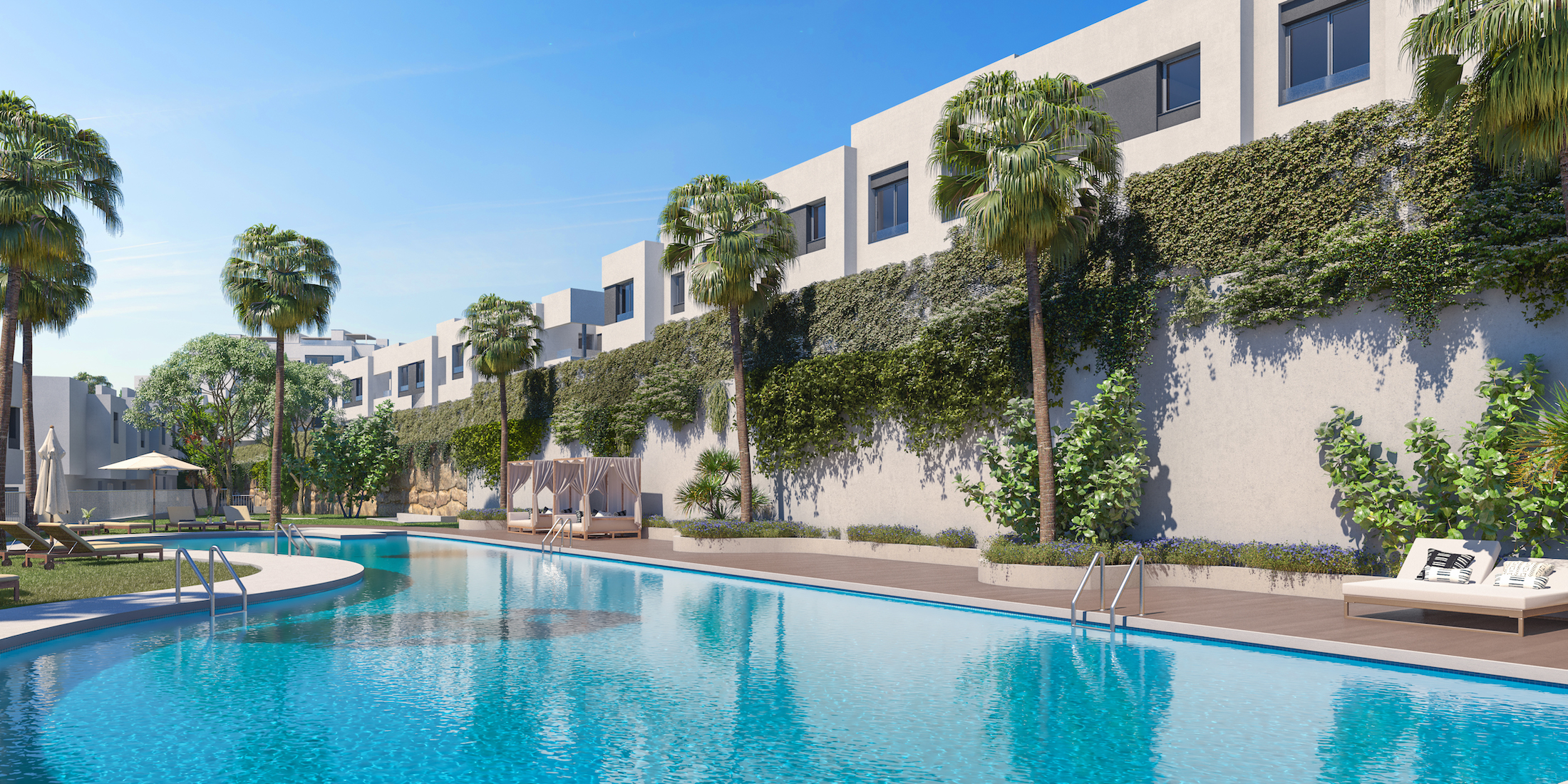 Byhuse og dobbelthuse med 3 soveværelser på en unik beliggenhed, med store terrasser og haver, hvor du kan nyde en imponerende havudsigt.