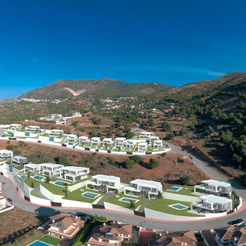 This beautifully designed, modern villa offers stunning panoramic views of the sea and the surrounding Mijas mountains.