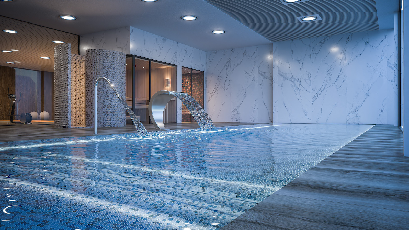 En stor pool er placeret i centrum af Oasis, som et mødested og afslapningspunkt.