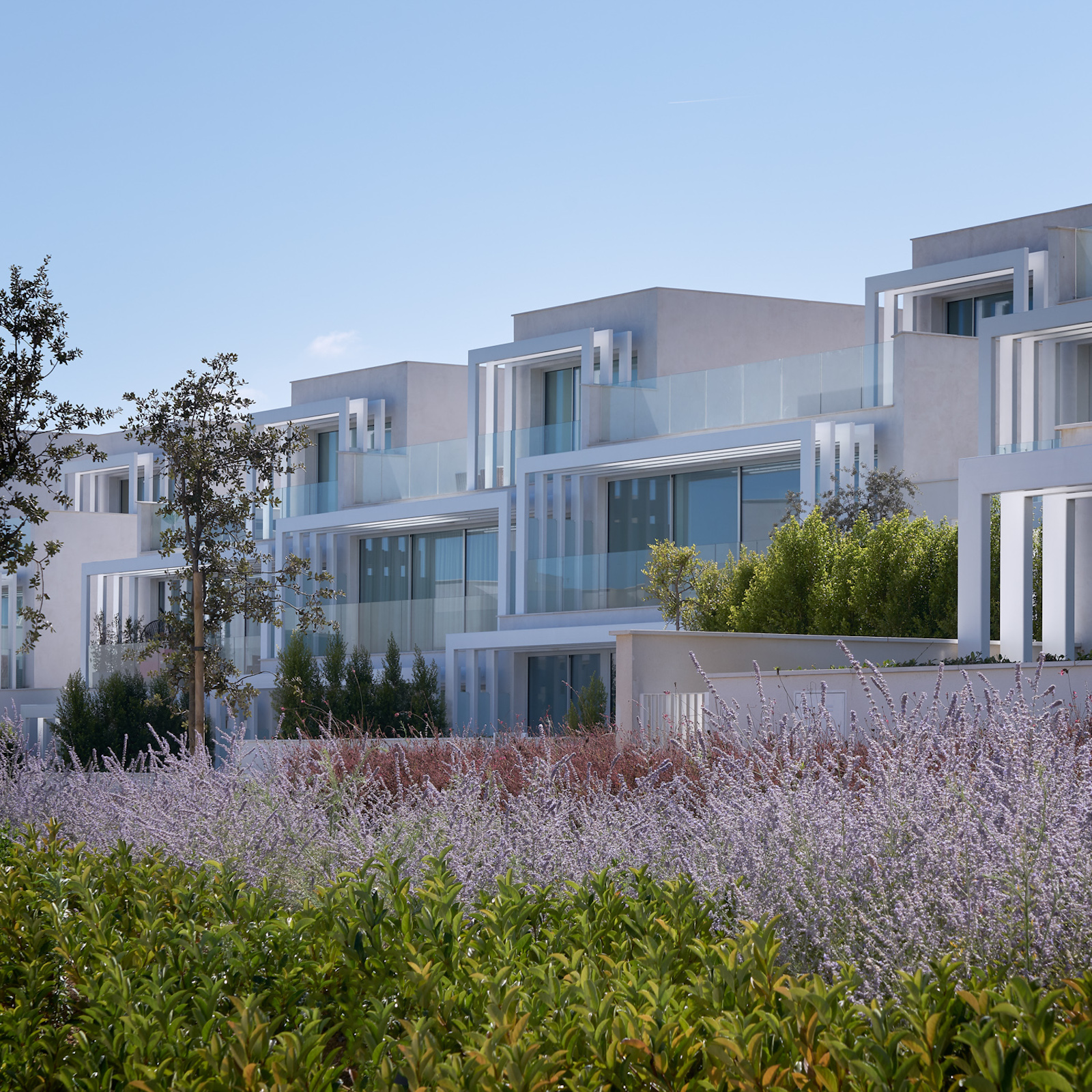 Panoramiske værelser åbner op og omslutter horisonten som en integreret del af designet. Havet og sollyset spiller en hovedrolle, der giver liv til hjemmet og bader det i lyset og udsigten, hvilket er kernen i projektet. Havernes grønne omgivelser og skønheden i de naturlige omgivelser blander sig med den hvide arkitektur, der kombinerer det klassiske design, med det nyeste inden for design og materialer.