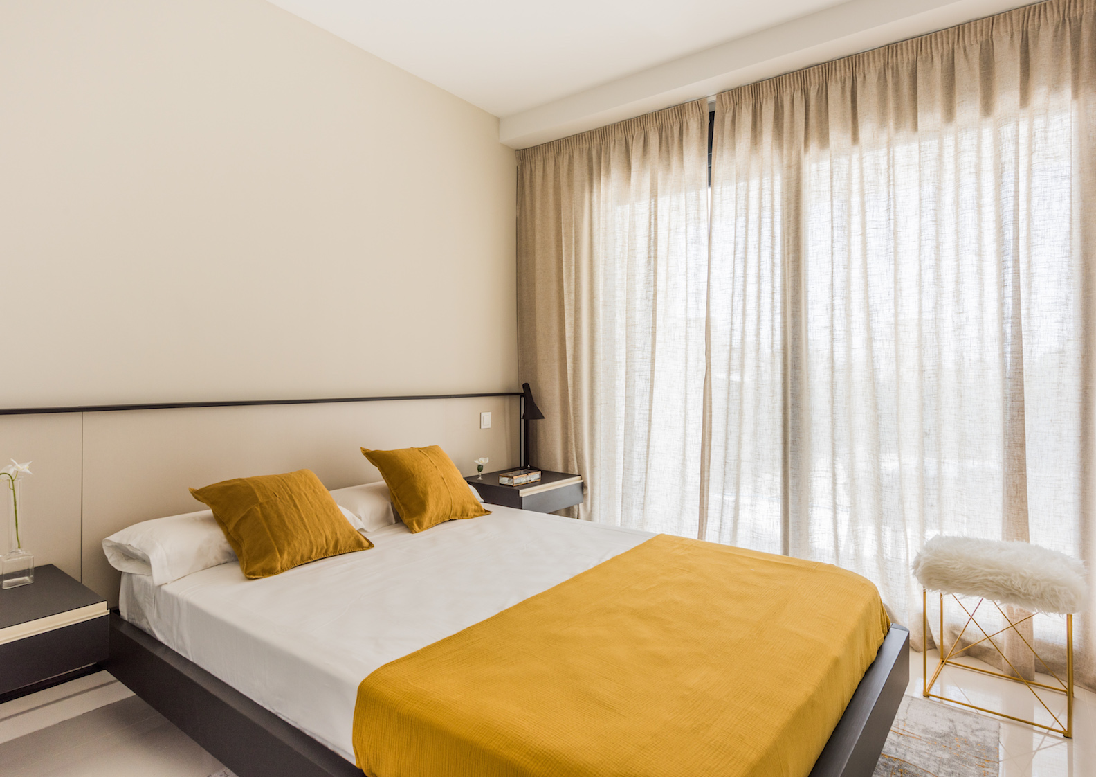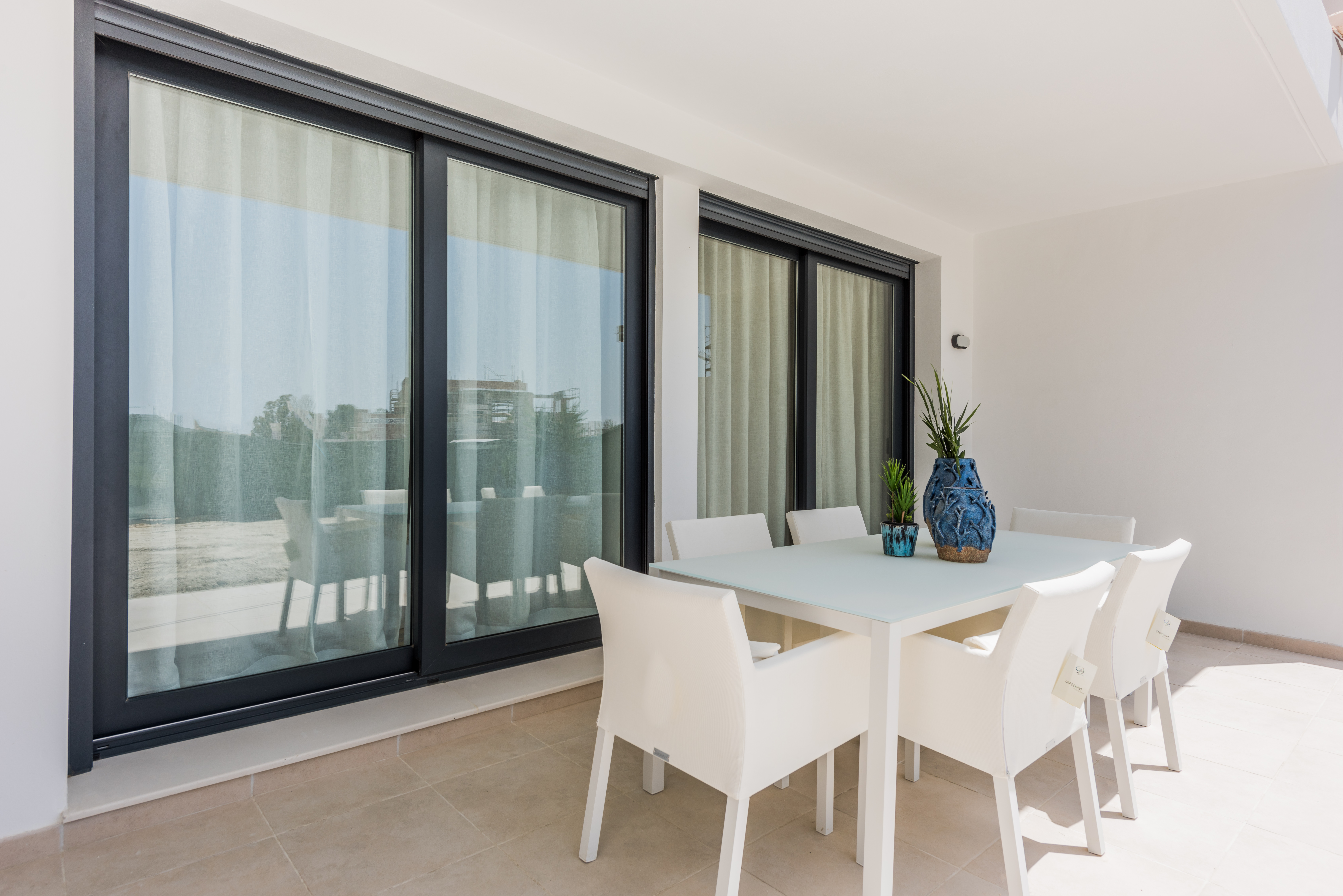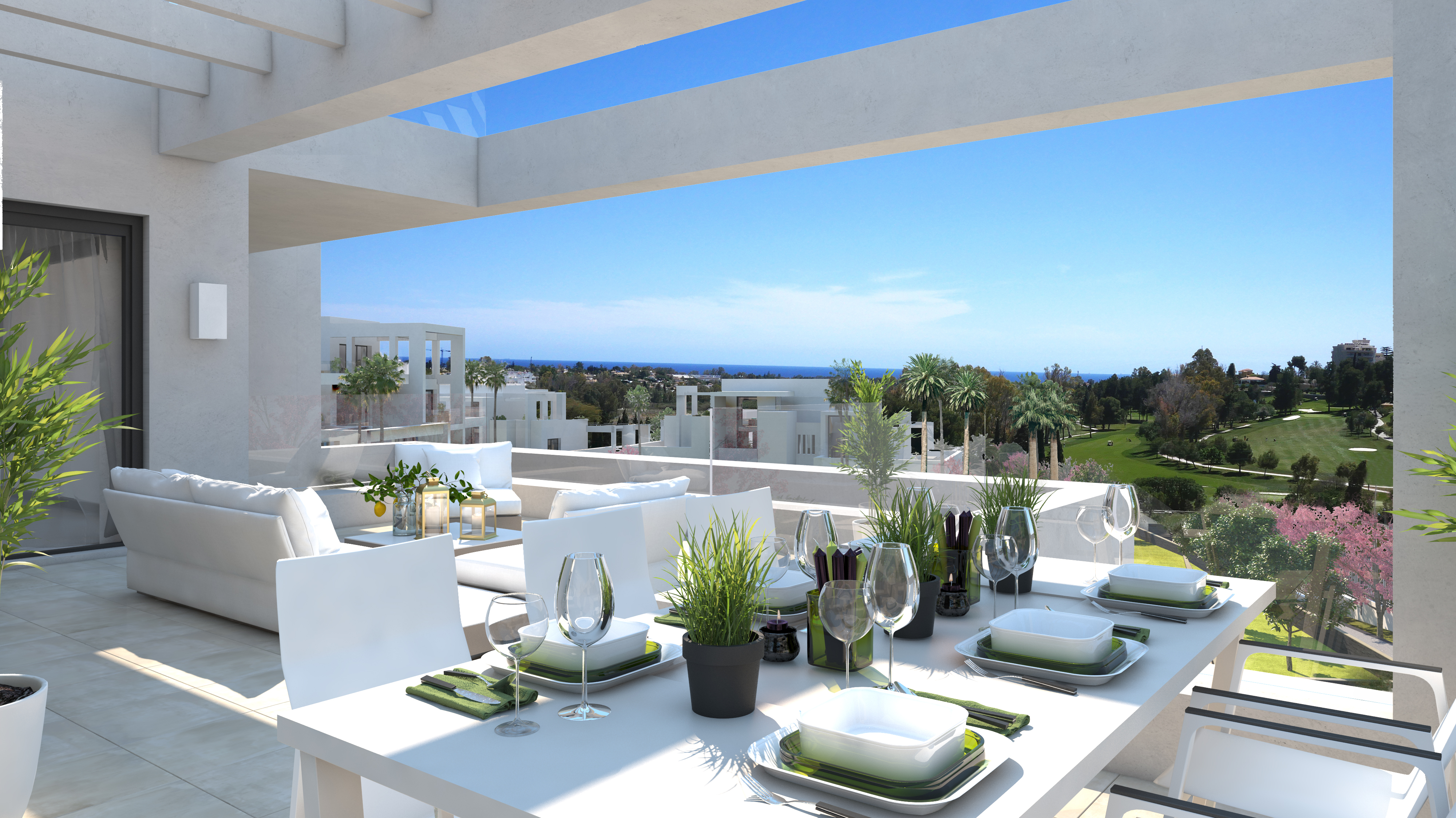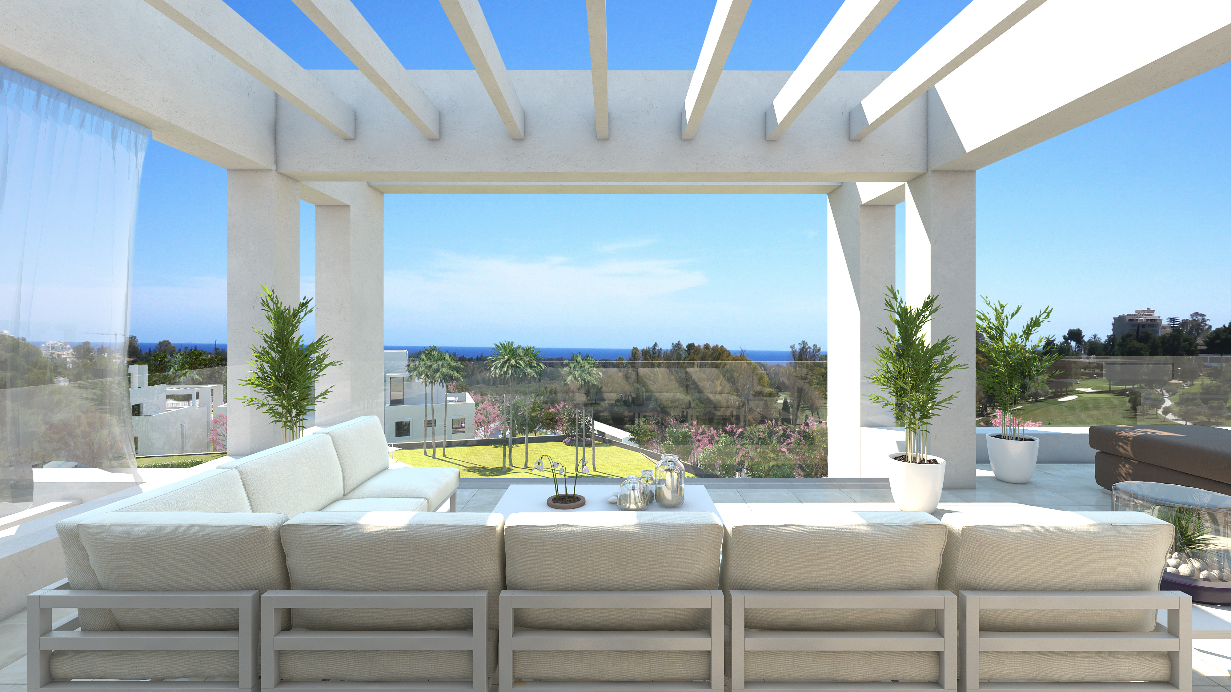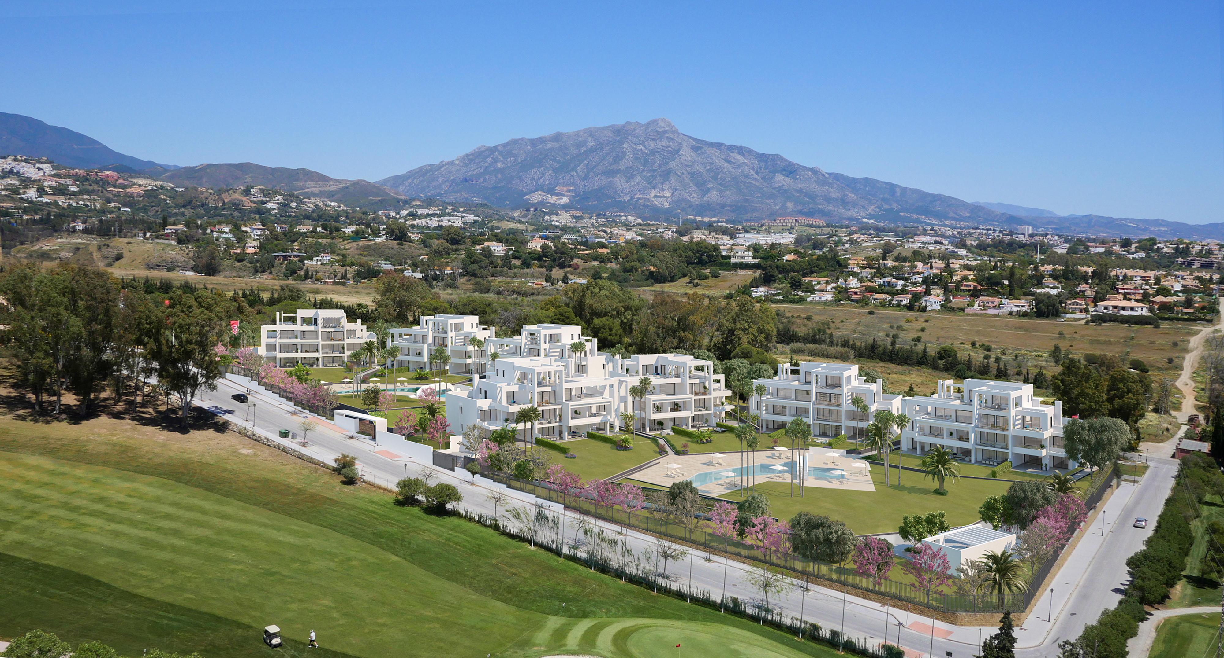 Moderne arkitektur med store terrasser og solterrasse for at udnytte sin sydlige og sydøstlige orientering. Her finder man også en lækker golfudsigt. Ejendommene har køkkener med åbent koncept til fællesrummene, store vinduer og materialer af fremragende kvalitet samt spektakulære haver, fire swimmingpools, en padlebane og et fælles område med grill.