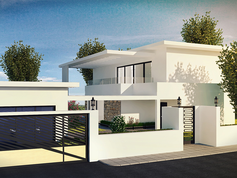 • Alle udvendige omgivende vægge, elektriske indgangsporte og garager