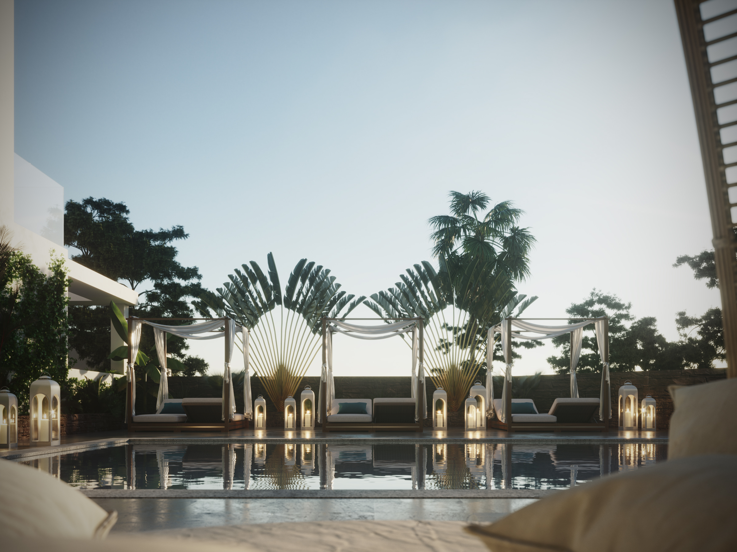 Et moderne hjem fyldt med sofistikeret luksus, beliggende i en "pueblo" med charme og liv.