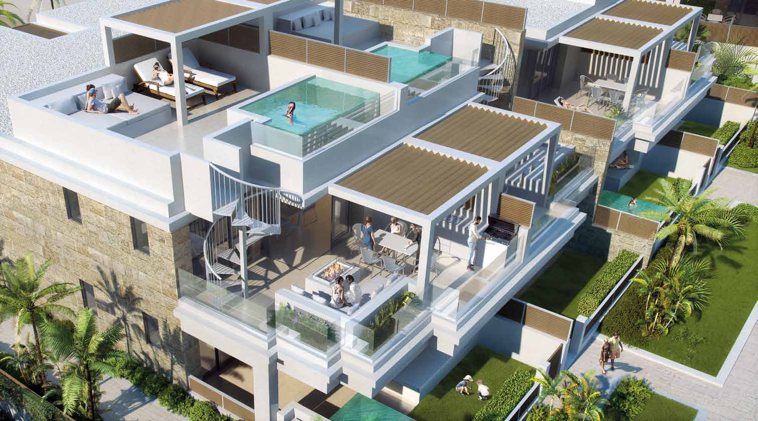Disse moderne, to etagers private villaer vil tilbyde den mest eksklusive leveoplevelse. Begge etager vil have store udendørs rum, herunder et solarium, hvor beboerne kan nyde den fantastiske havudsigt, mens de solbader eller slapper af med vennerne.