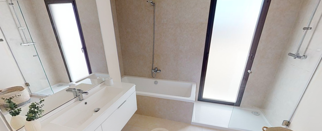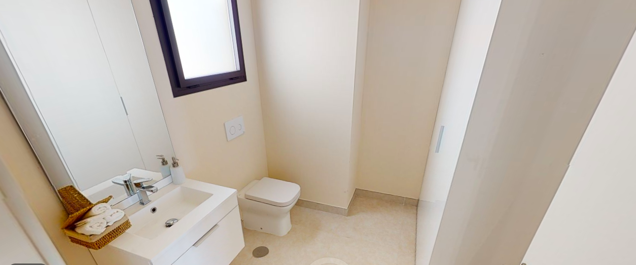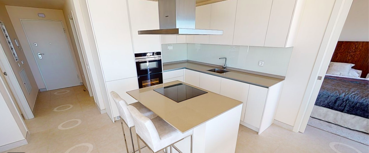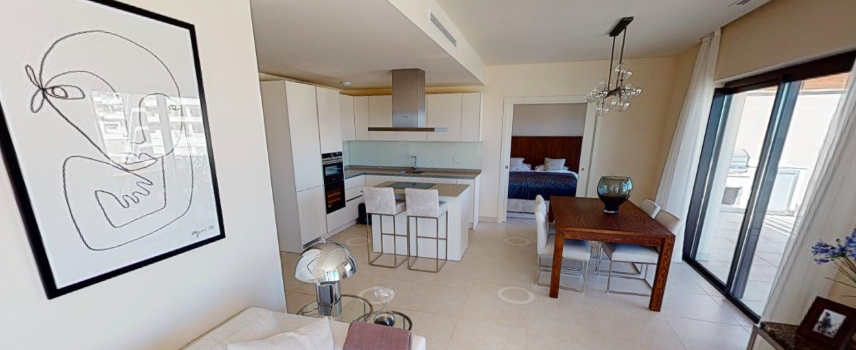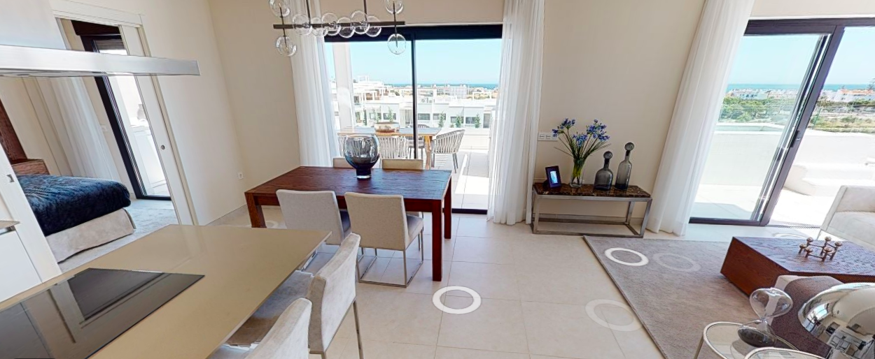 Denne penthouse har 2 soveværelser, 2,5 badeværelser. Det er syd og syd østvendt. Den byggede størrelse er 109,35 m2 og terrassens størrelse 96,17 m2. Det har en fantastisk havudsigt ned langs hele kysten og på terrassen er den fulde pakke inklusive; En lounge, en opholdsstue med pejs, et udendørs køkken med grill plus køleskab og et opholdsstue til solbadning og chill.