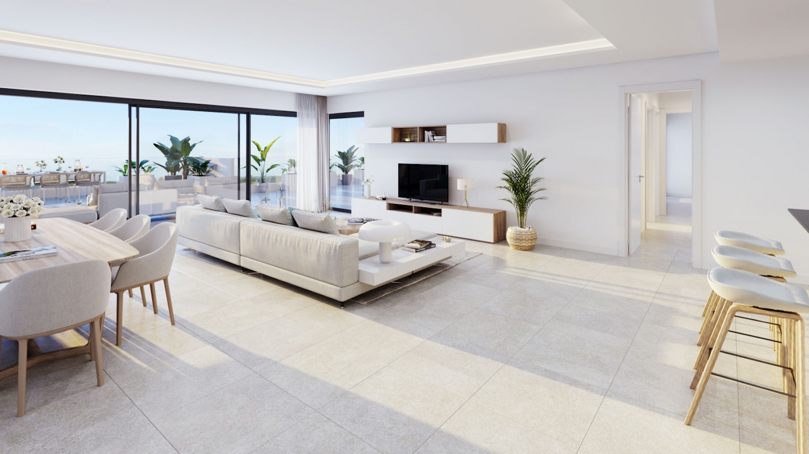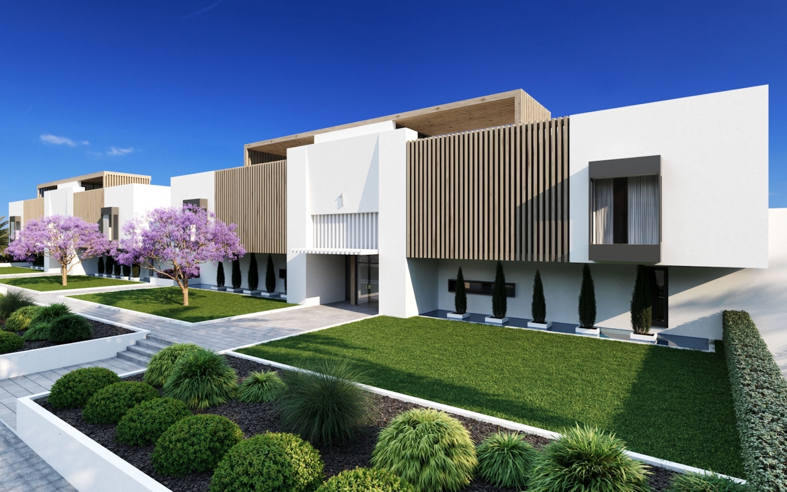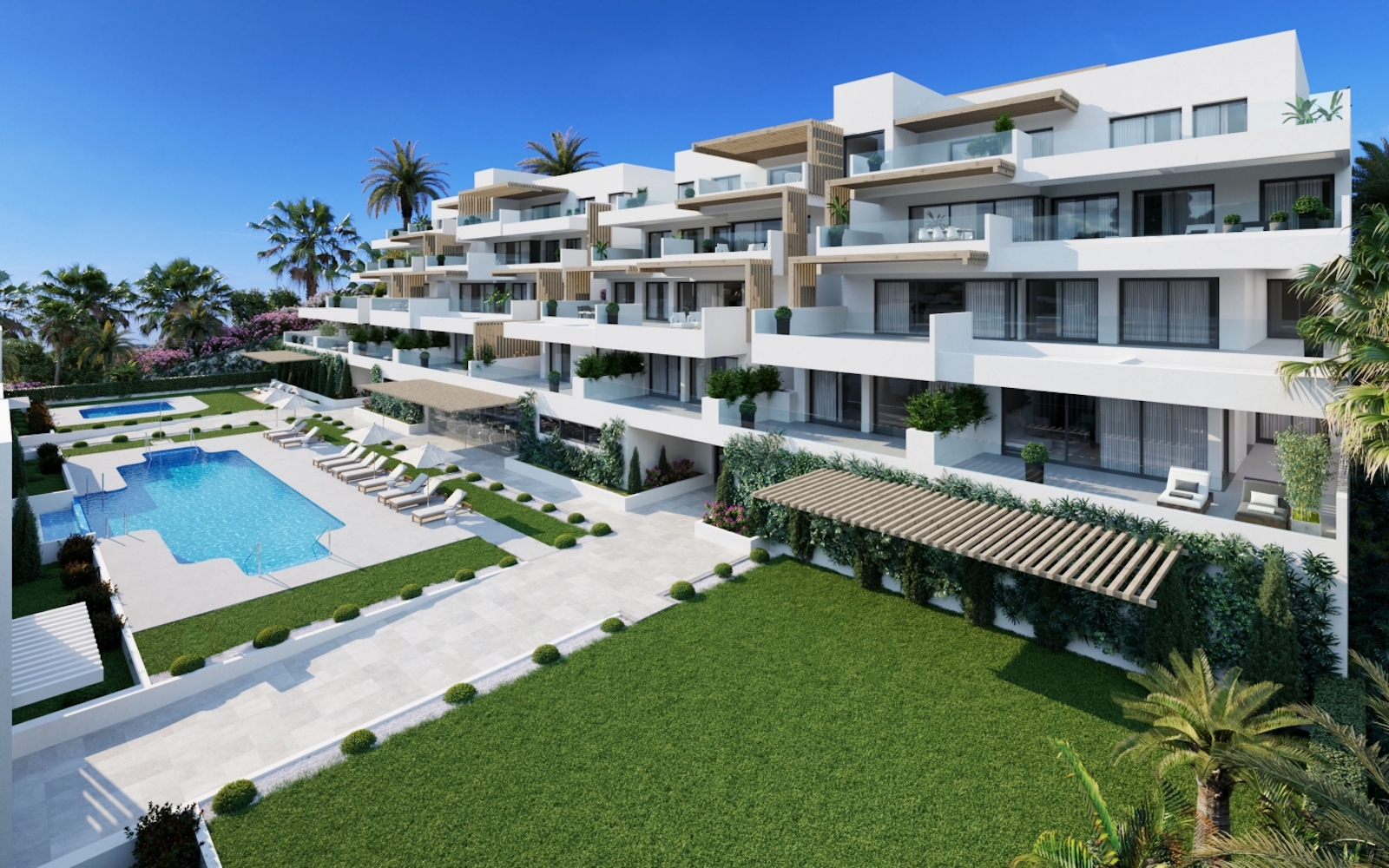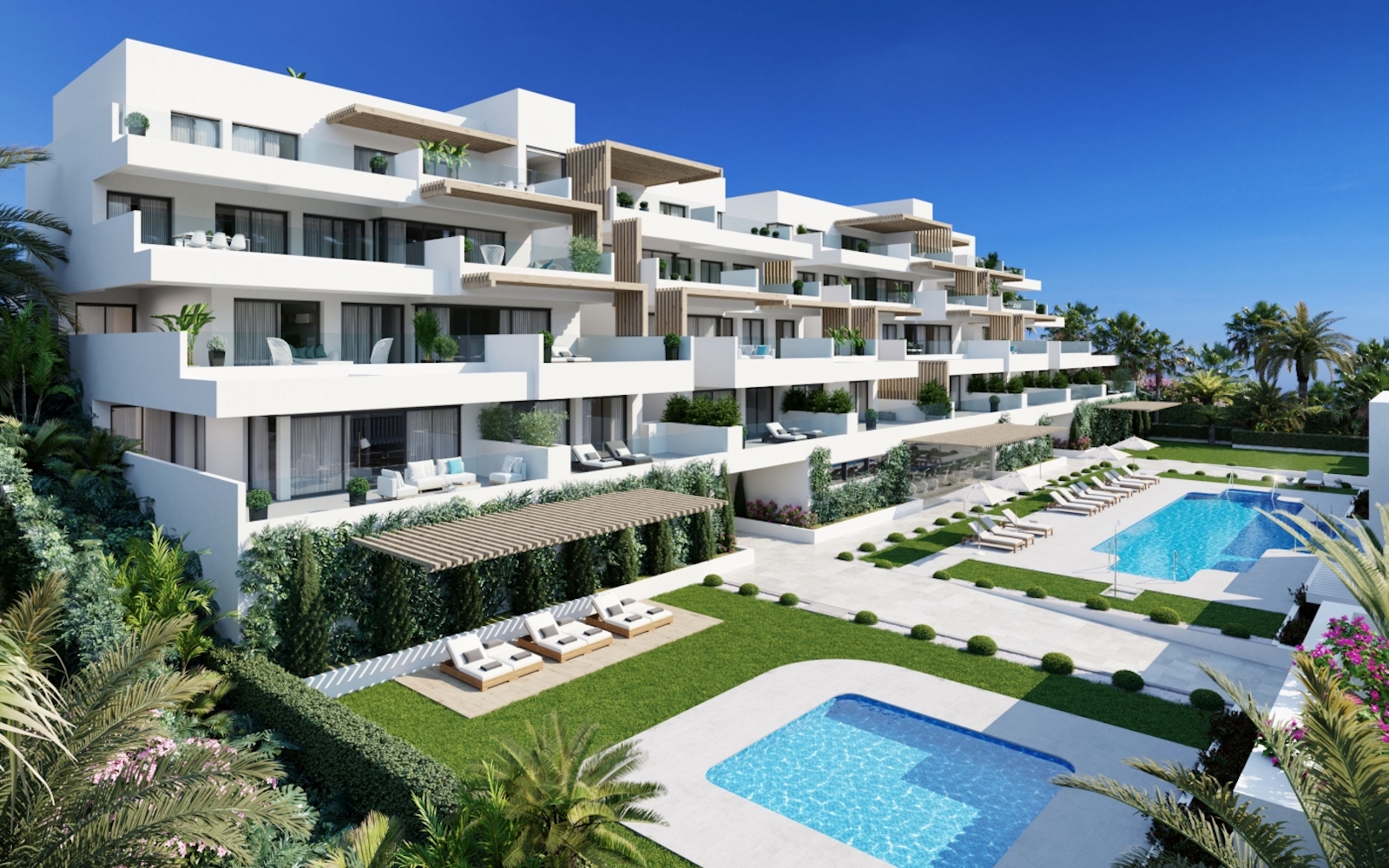 Lejlighederne der alle peger mod syd kan erhverves med både 1, 2, 3 og 4 soveværelser. Stueetagen har egen privat have. Alle boliger har åbent møbleret køkken, designer badeværelser, rummelige stuer, finish i høj kvalitet, åbne rum og store terrasser med panoramaudsigt udover havet. Derudover er i alle boliger inkluderet en overdækket garage og opbevaringsrum.