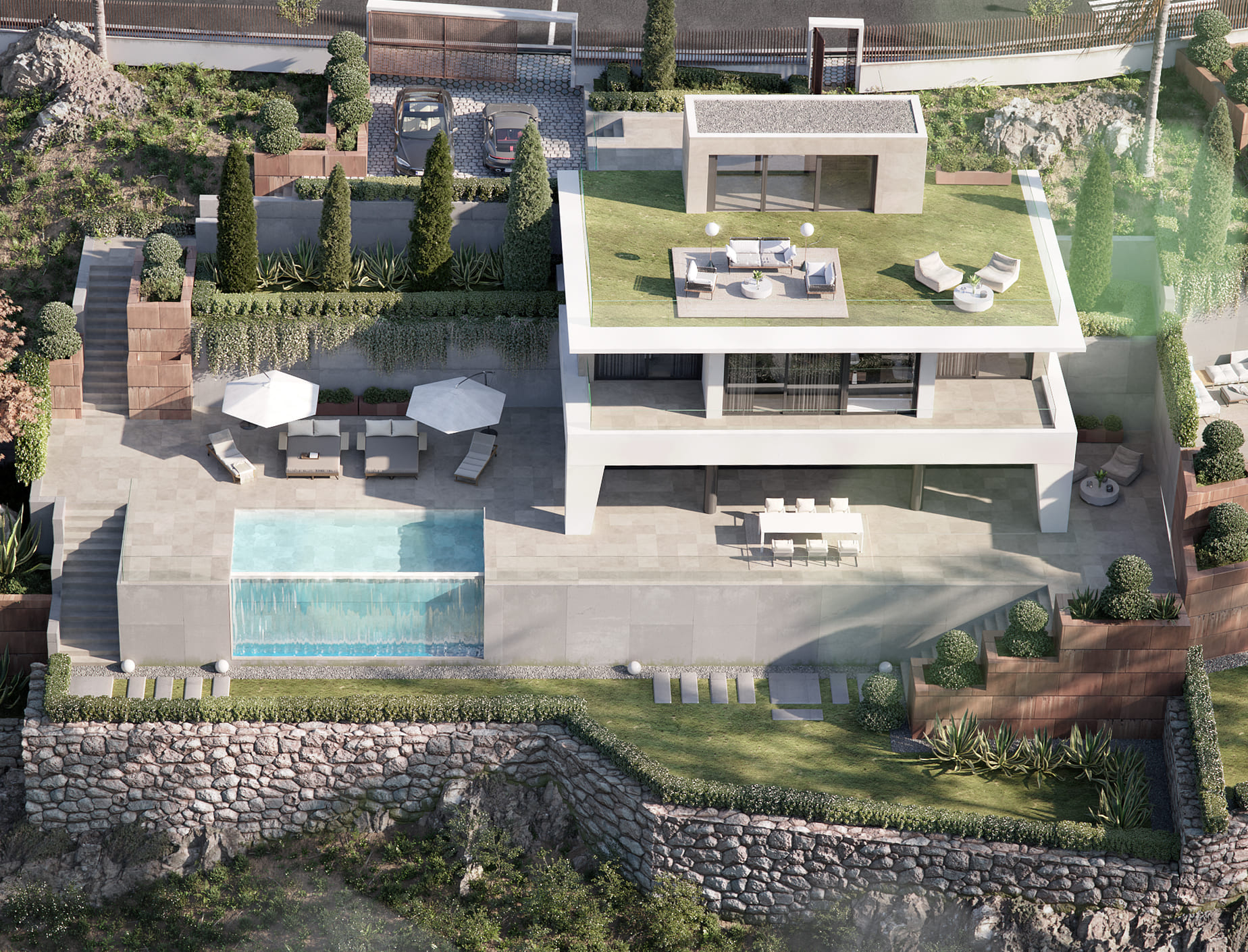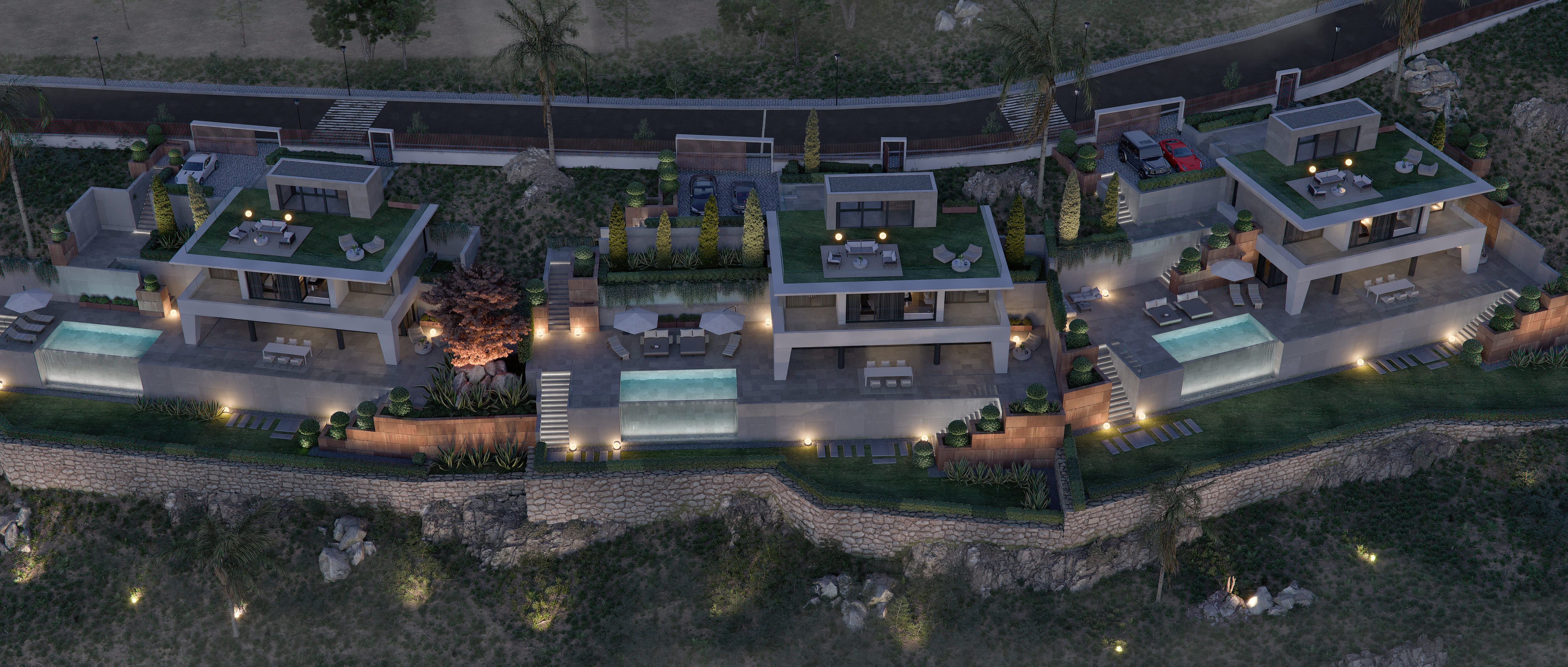 Uderum, der udgør designet af disse eksklusive villaer, er nøje gennemtænkt, så du til enhver tid kan trække den friske luft ind, mærke roen og blive hypnotiseret af havet. Inde i villaerne vil du også kunne mærke balancen og den arkitektoniske harmoni, der vil fylde dit hjem med positiv energi.