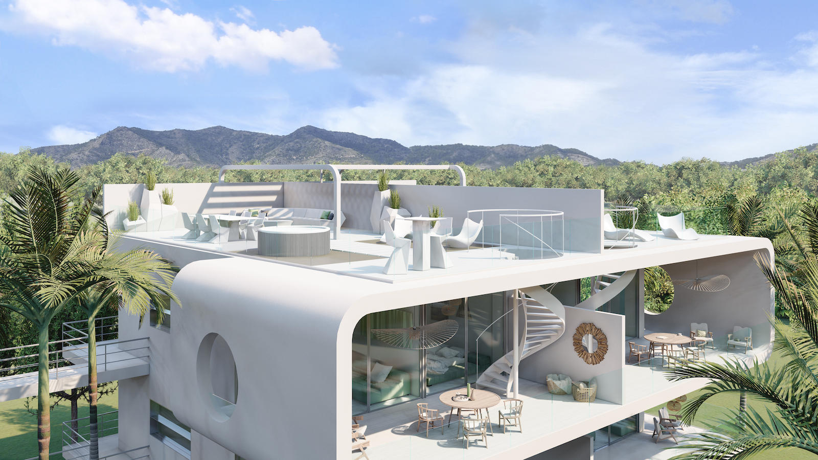 Komplekset ligger 250 meter fra stranden og er lavet af ekstraordinære kvaliteter med italienske køkkener, gulvvarme i badeværelser, store fællesarealer med en infinity-pool, en jacuzzi, en grillplads og en omhyggeligt anlagt have