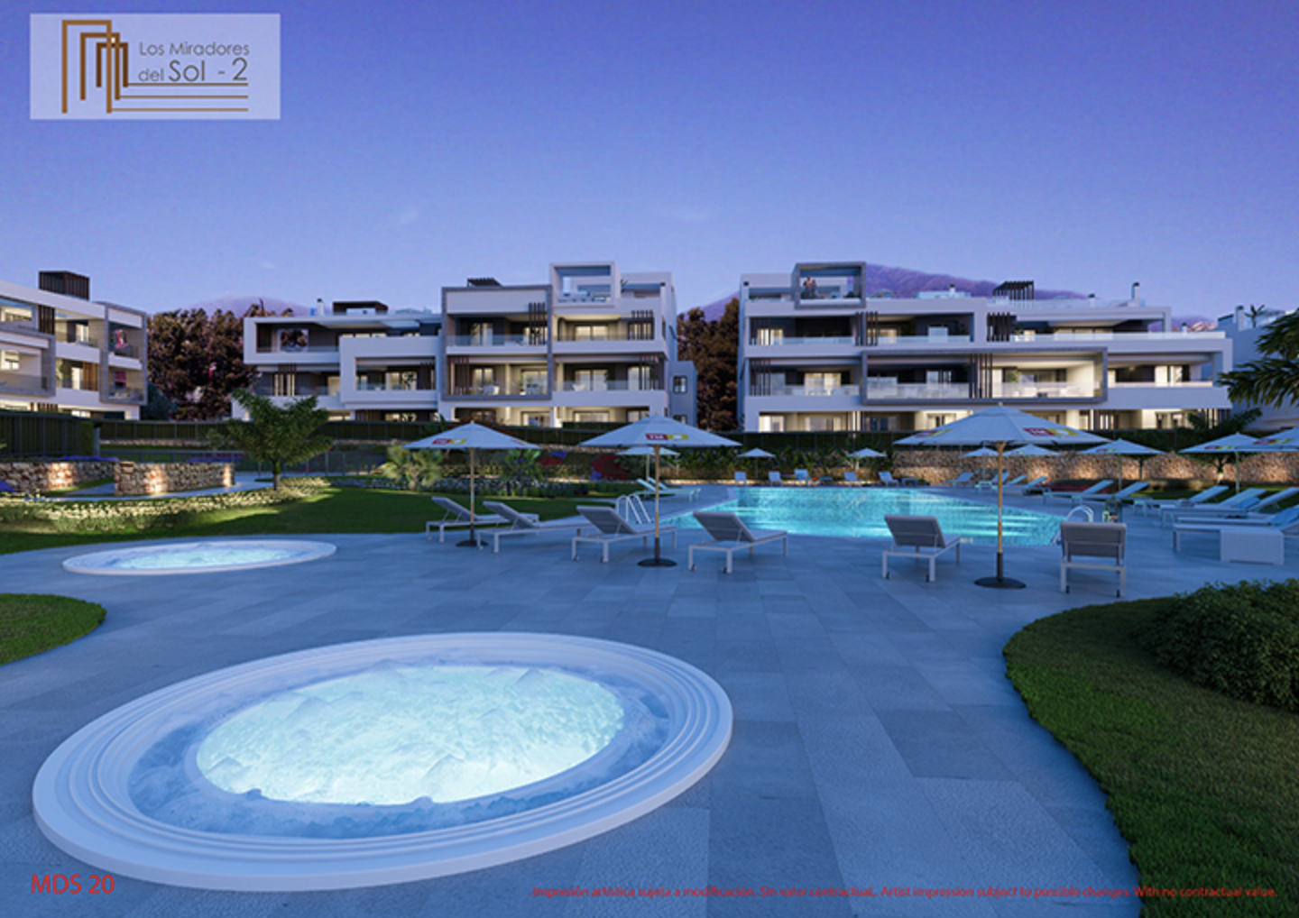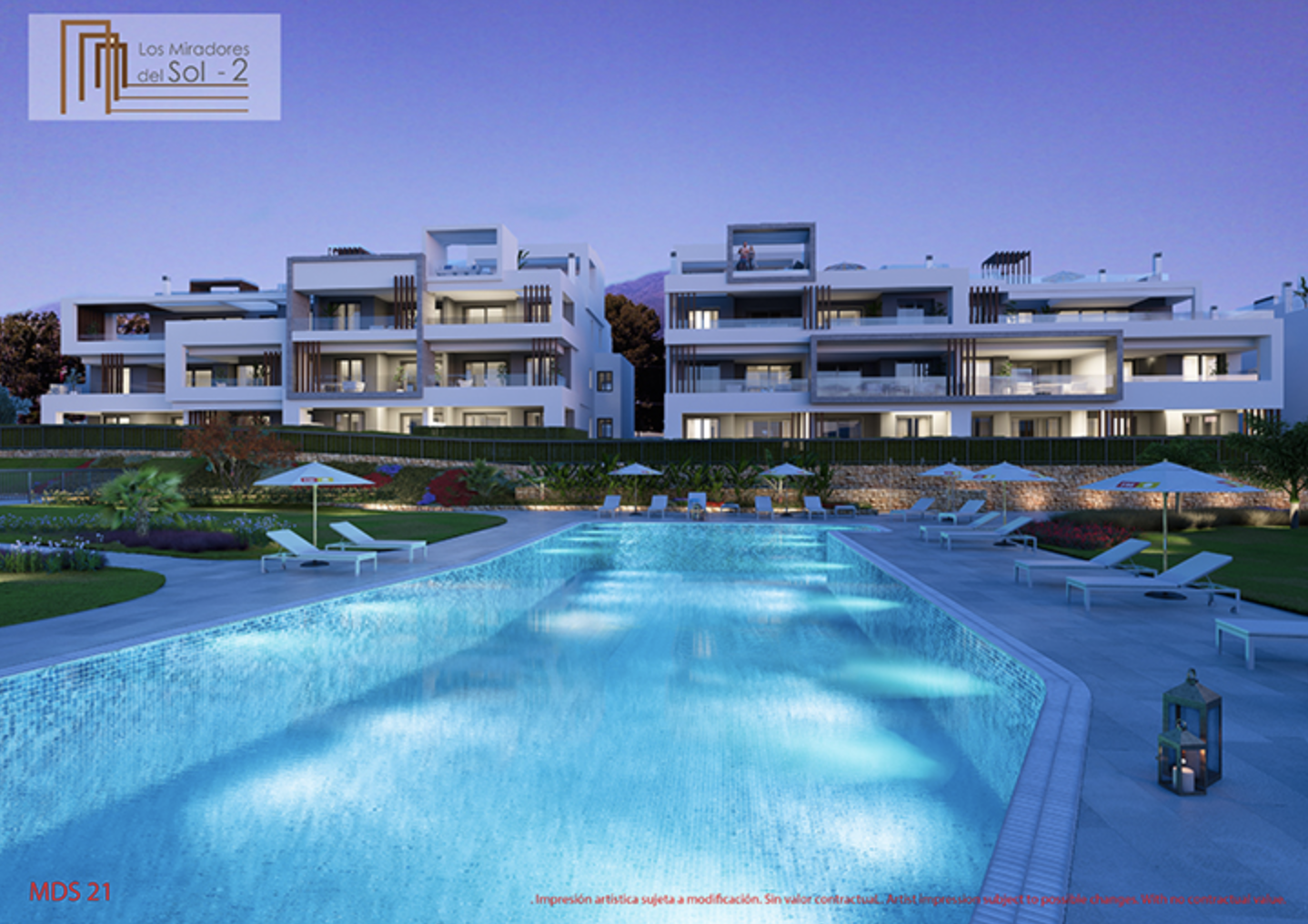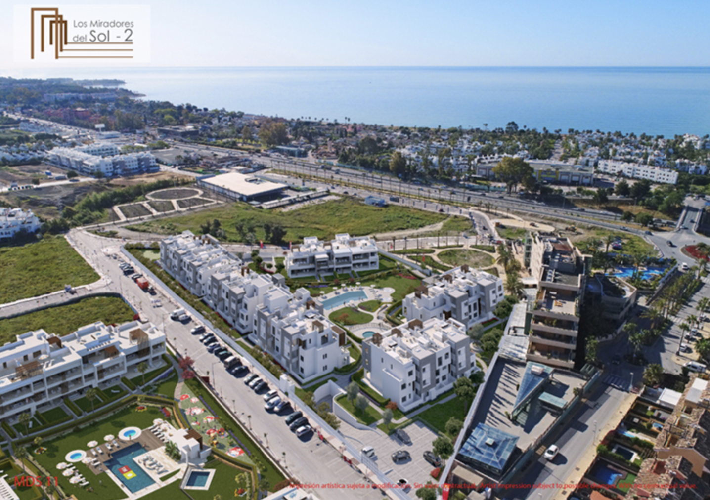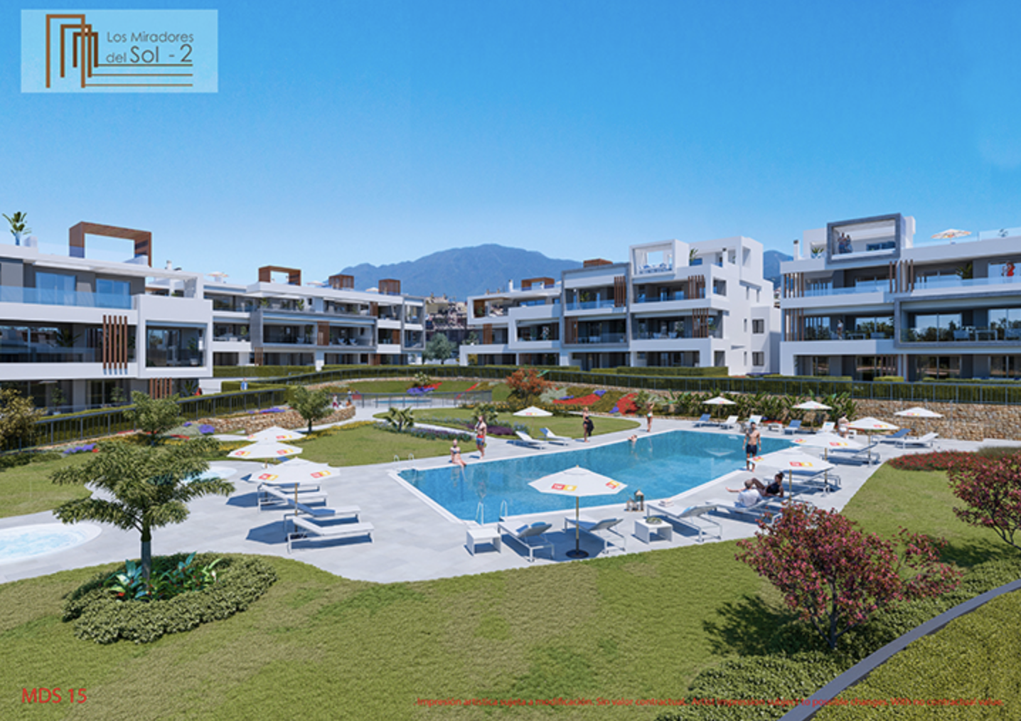 Los Miradores del Sol er et udviklingsprojekt med en privilegeret beliggenhed beliggende mellem Estepona og Marbella. Det er designet til at tilbyde maksimal privatliv og komfort, mens du nyder livet i de rummelige åbne områder i dit hjem. Her finder du en ejendom, der passer til dig, uanset hvilket gulv du vælger (stueetage, første sal eller duplex penthouse), der garanterer et generøst udendørs rum i form af en terrasse, veranda eller solarium, som du kan dekorere med dine egne terrassemøbler. eller endda en grill og bruser. Udviklingen har en stor central plaza på over 1.200 m2 med naturligt græs, træer og planter ud over svømmebassiner, jacuzzier og en strand og poolområde. Børn har det sjovt i børnenes legeområde inden for den indhegnede omkreds, hvilket garanterer dig både sikkerhed og ro i sindet. Kælderen huser din parkeringsplads og et opbevaringsrum samt et fælles cykelparkeringsområde.