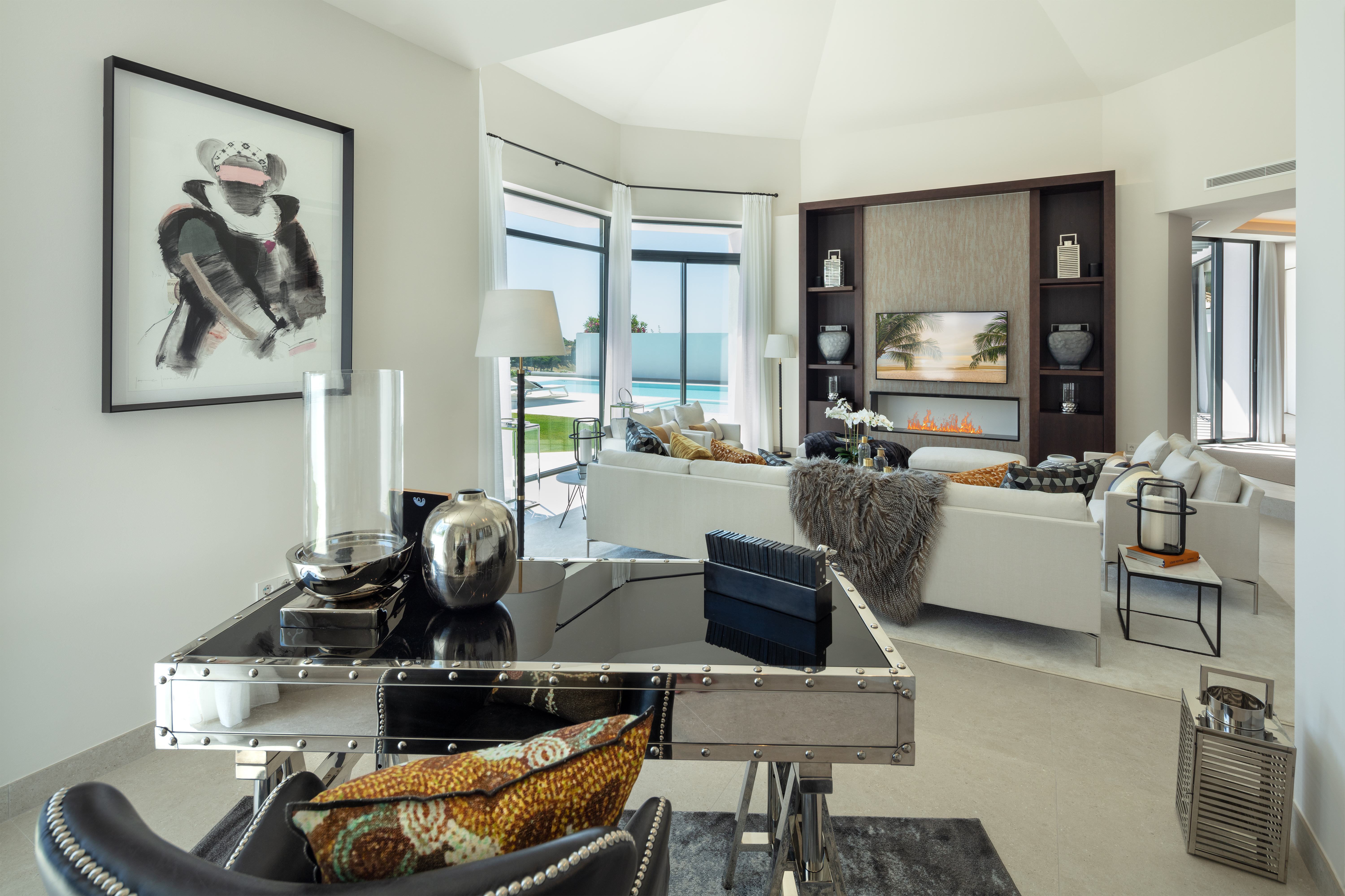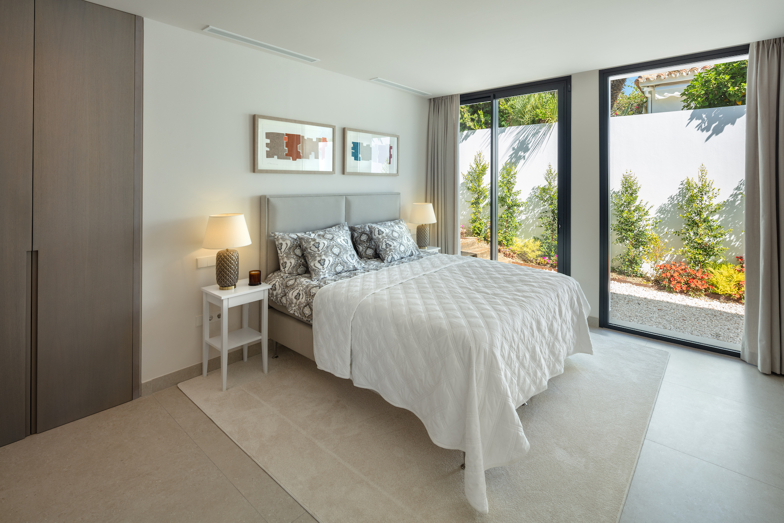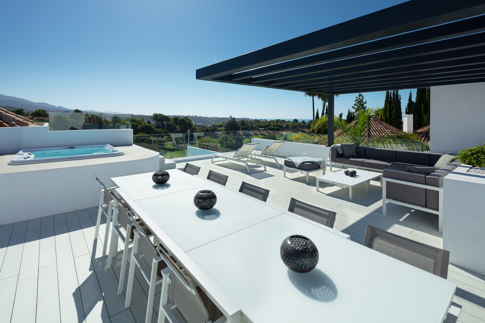 Luksus moderne villa med en smuk grå og hvid farveskema og hi-tech funktioner overalt. Villaen er lys og rummelig med alsidig indkvartering inklusive et soveværelse med en-suite helt adskilt fra hovedhuset. Det leveres fuldt møbleret med premium møbler som Eilersen og skydedøre i alle soveværelser. Køkkenet har en fantastisk moderne stil med en morgenmadsbar og Gaggenau apparater.
