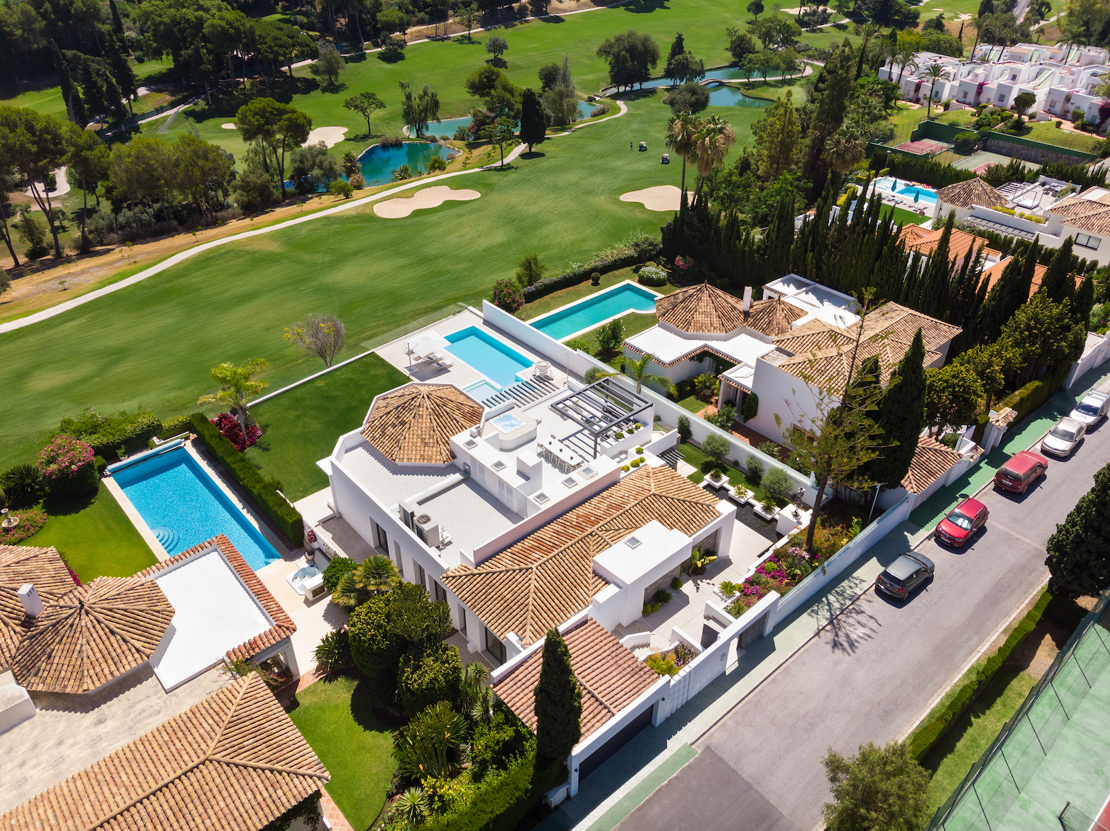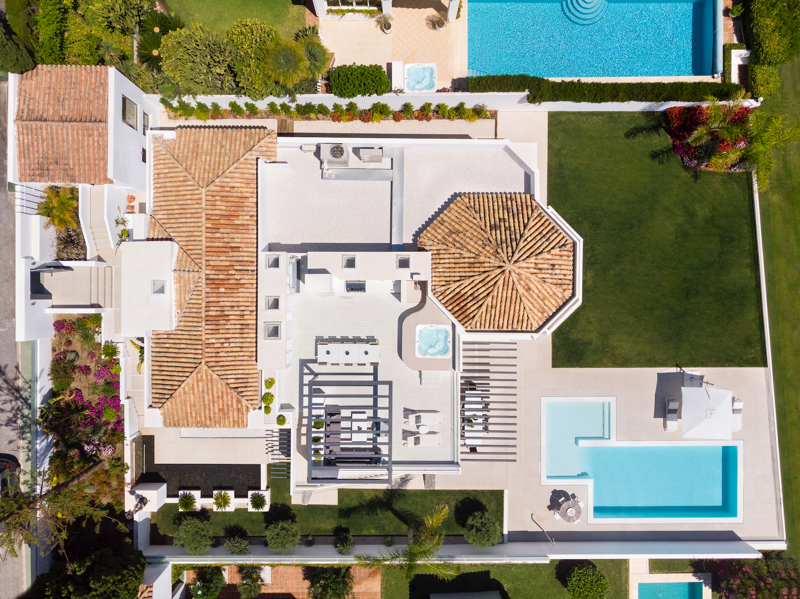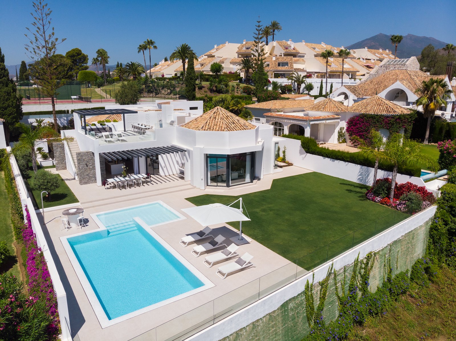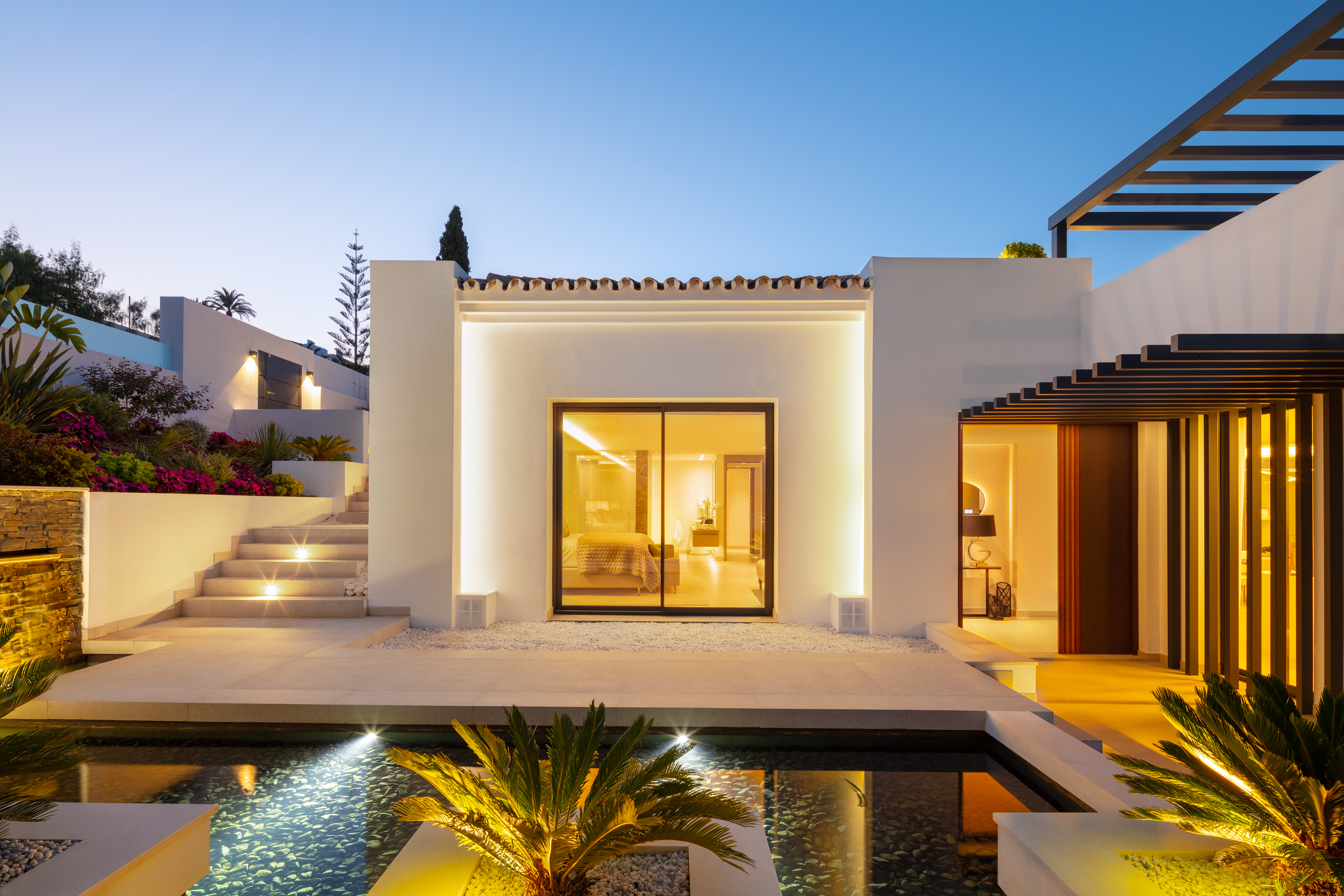 Luksus moderne villa med en smuk grå og hvid farveskema og hi-tech funktioner overalt. Villaen er lys og rummelig med alsidig indkvartering inklusive et soveværelse med en-suite helt adskilt fra hovedhuset. Det leveres fuldt møbleret med premium møbler som Eilersen og skydedøre i alle soveværelser. Køkkenet har en fantastisk moderne stil med en morgenmadsbar og Gaggenau apparater.