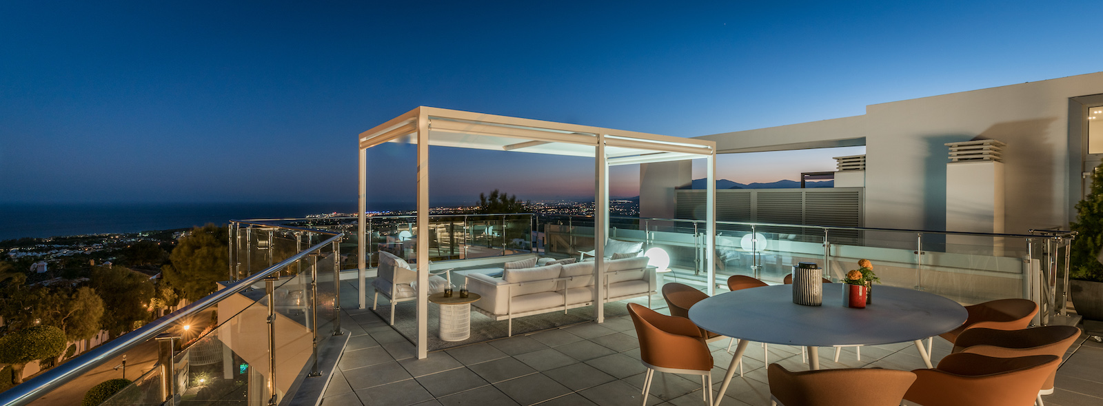 Ejendommen har 360-graders udsigt ned til det glitrende vand i Middelhavet og bag til Sierra Blanca bjergkæden og tilbyder det bedste fra begge verdener; beliggende i den naturlige omgivelse af fyrretræer og skov, mens du nyder 5-stjernede faciliteter. Kun fem minutter væk ligger overfladen og luksusen af Marbellas Golden Mile.