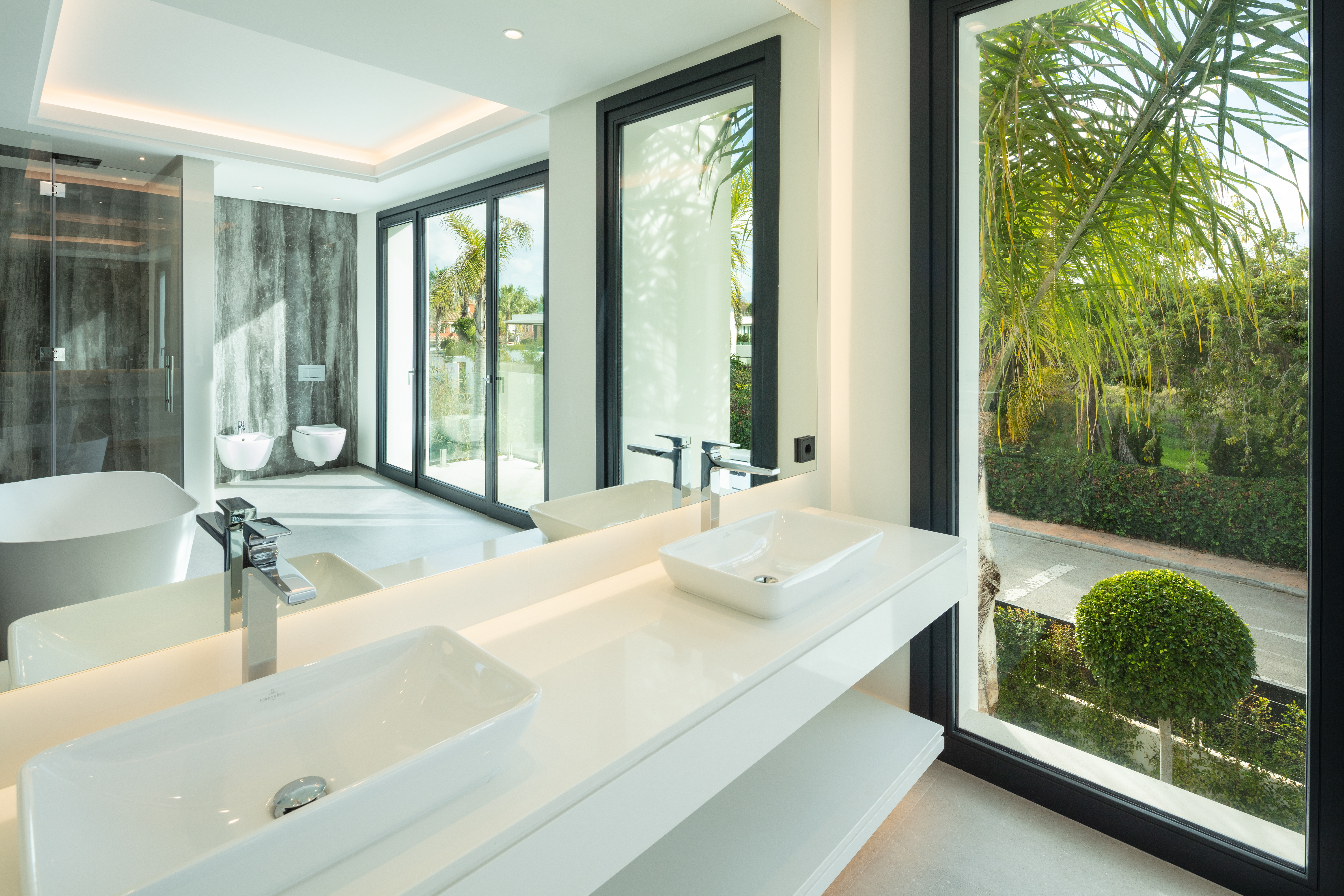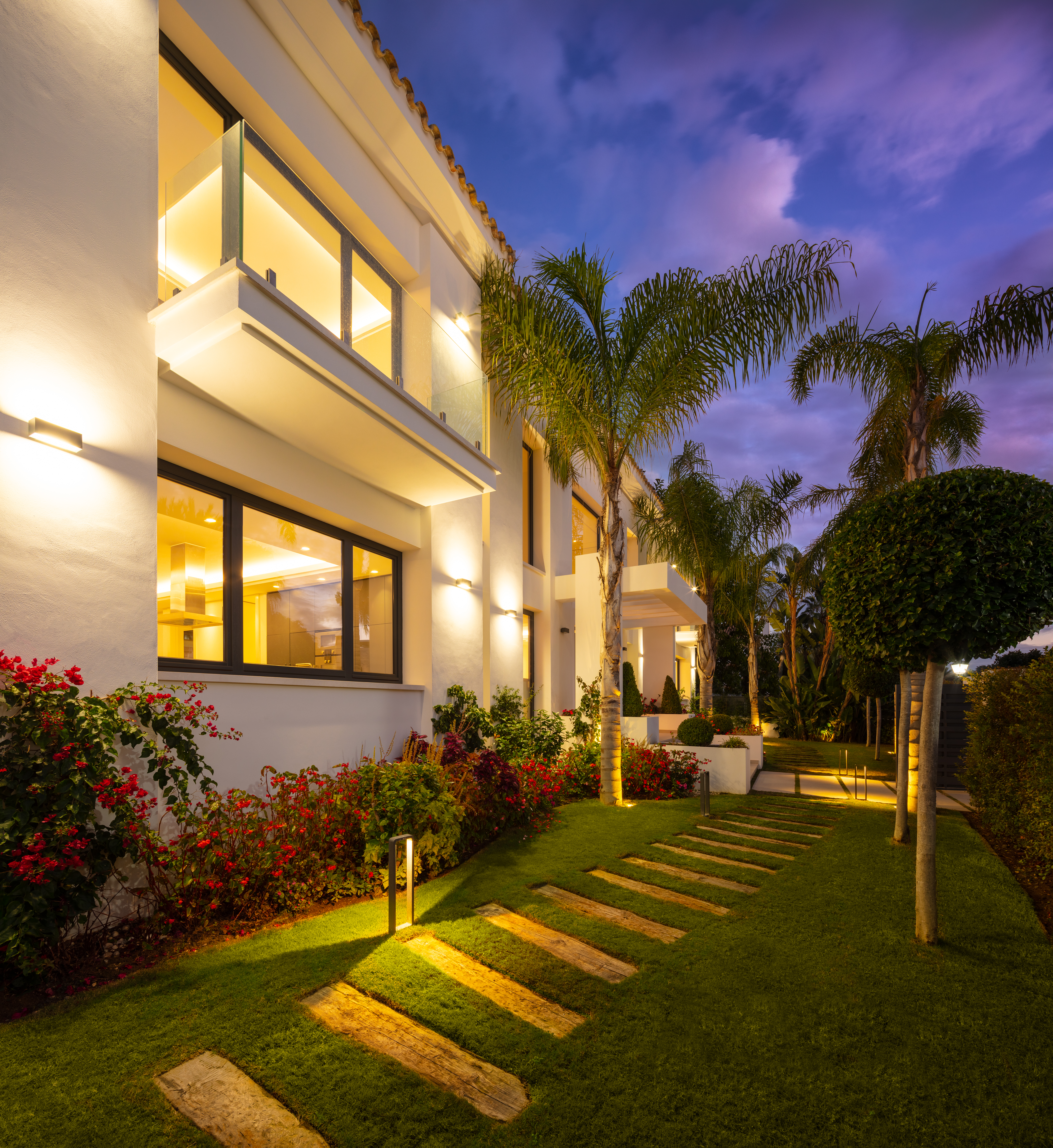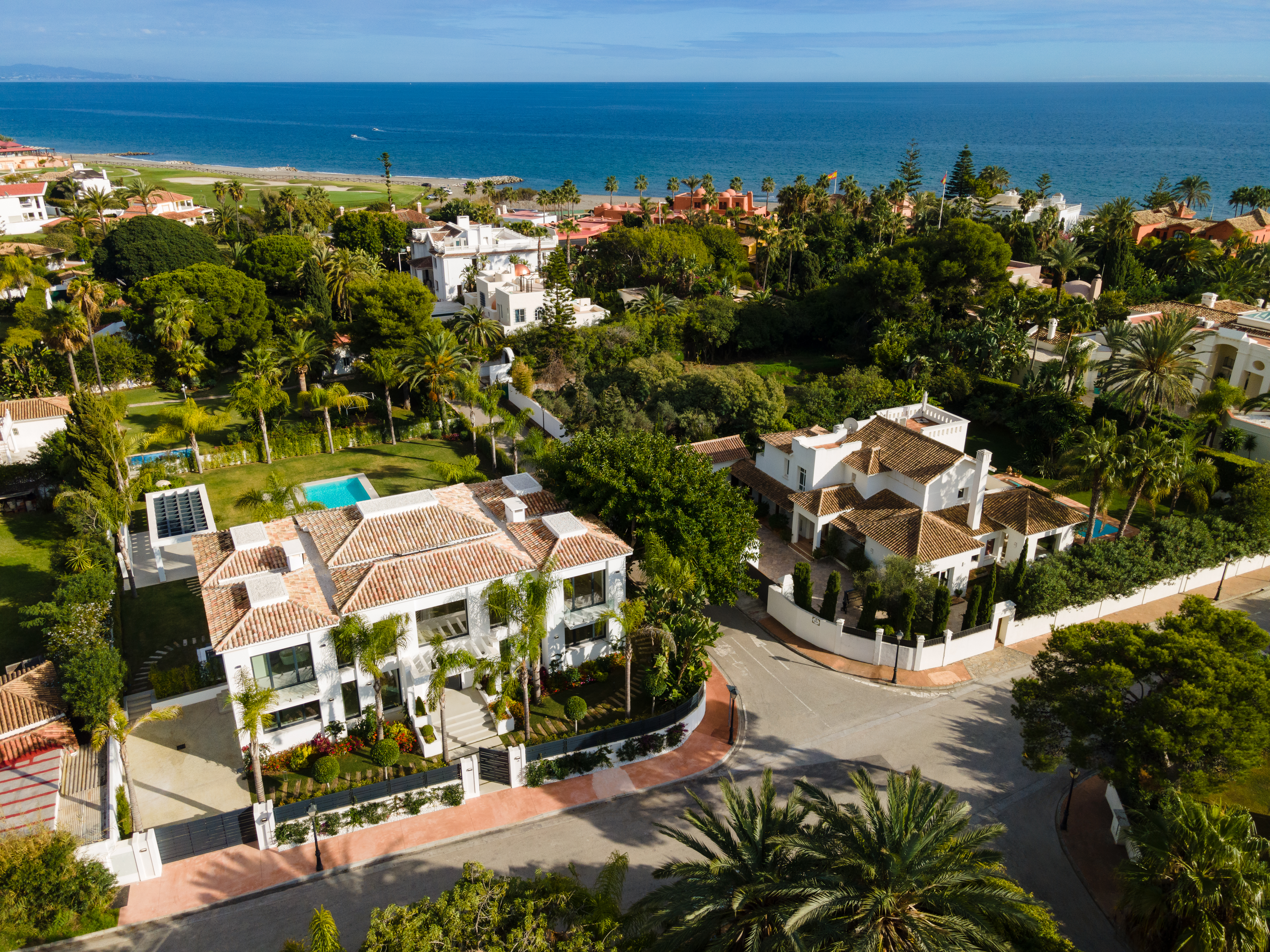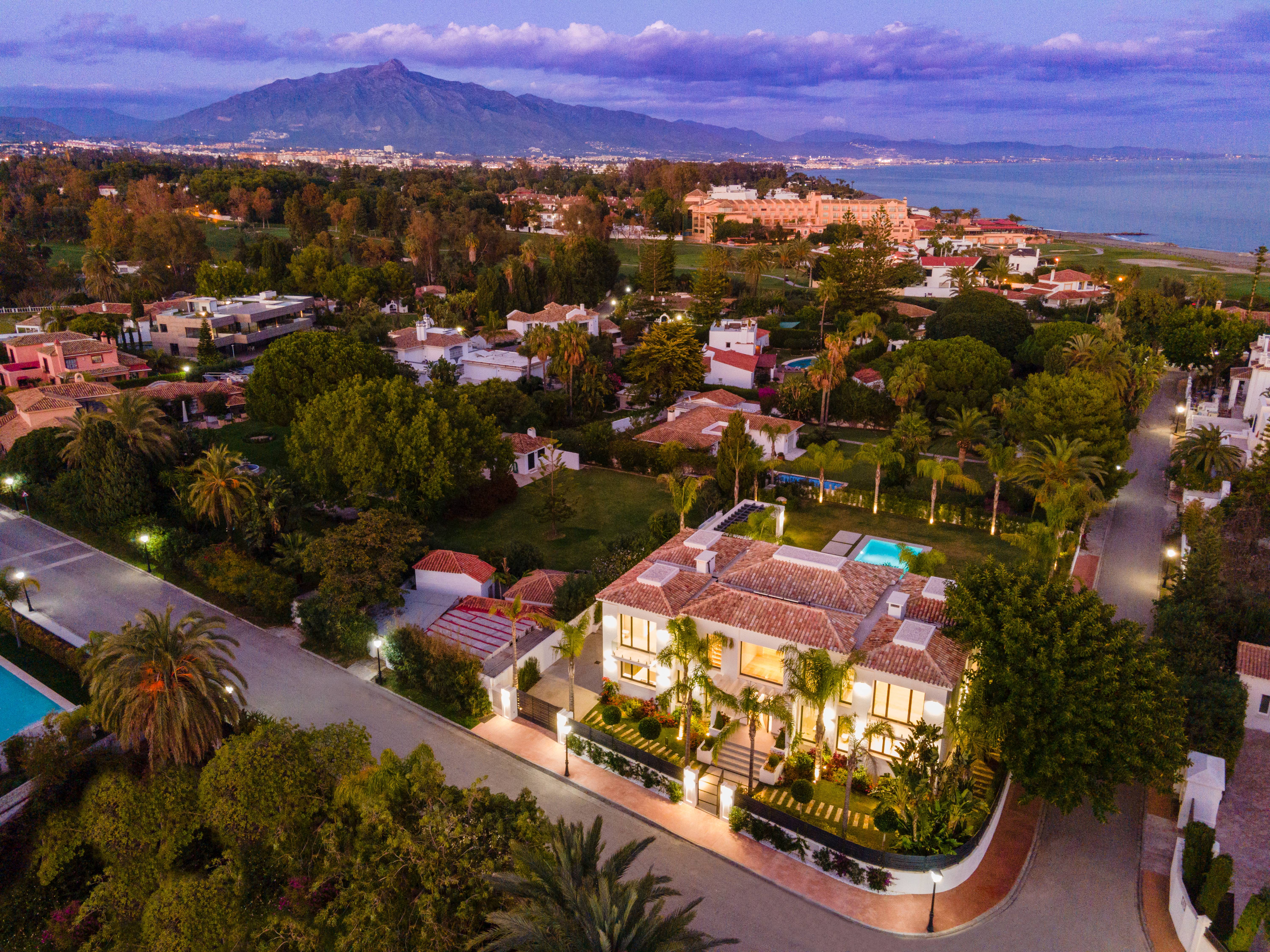 Dette nybyggede hjem leverer det bedste fra begge verdener; Ejendommen ligger i et eksklusivt område omgivet af modne træer og få skridt fra vandet i Middelhavet. Det er også inden for gåafstand fra en række faciliteter og 10 minutters kørsel fra Puerto Banus og Marbella's Golf Valley.