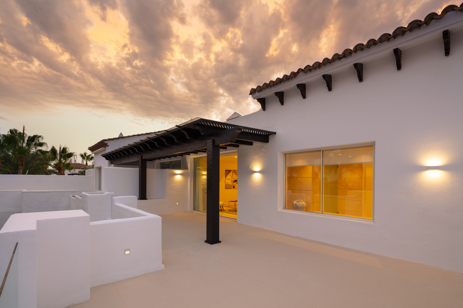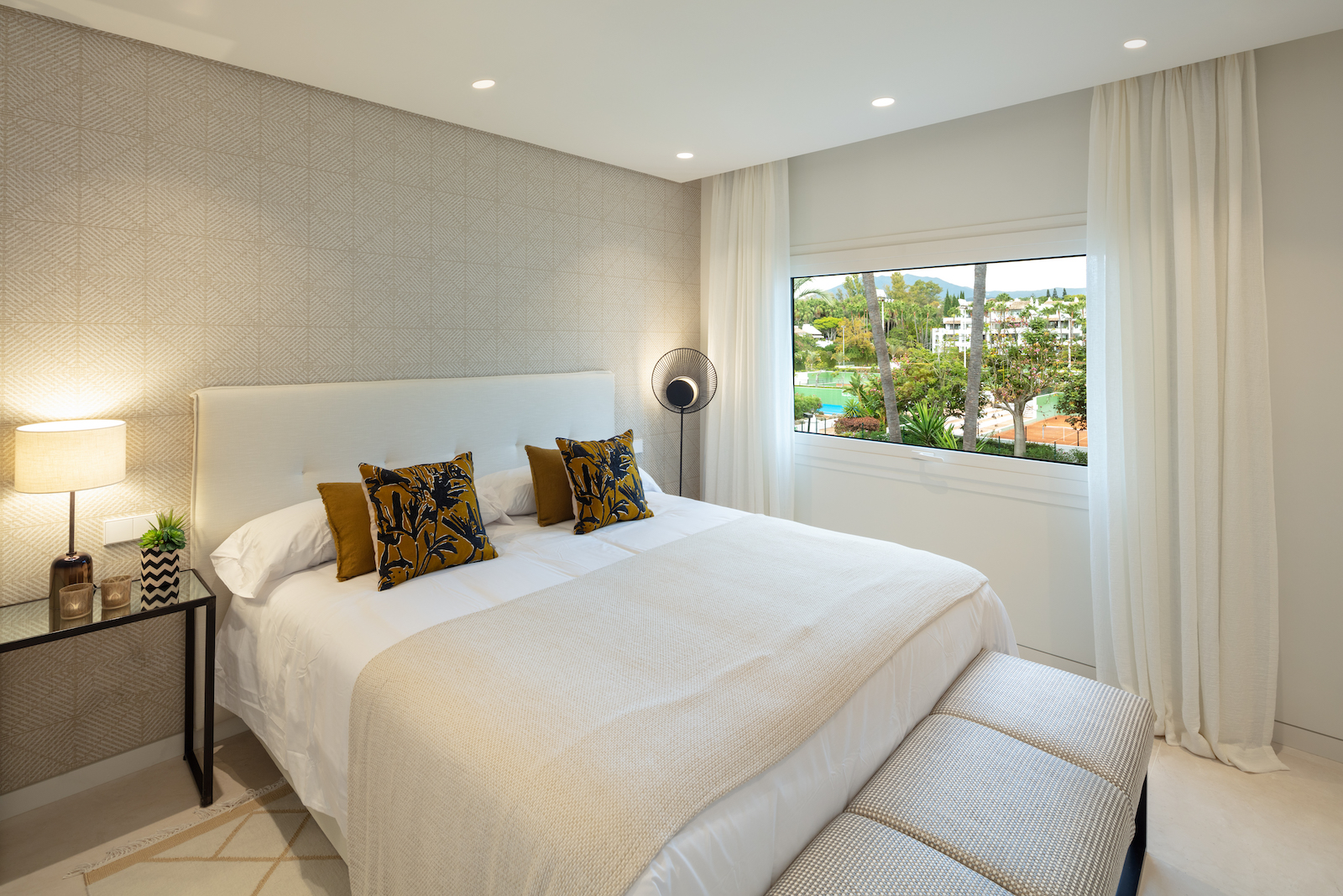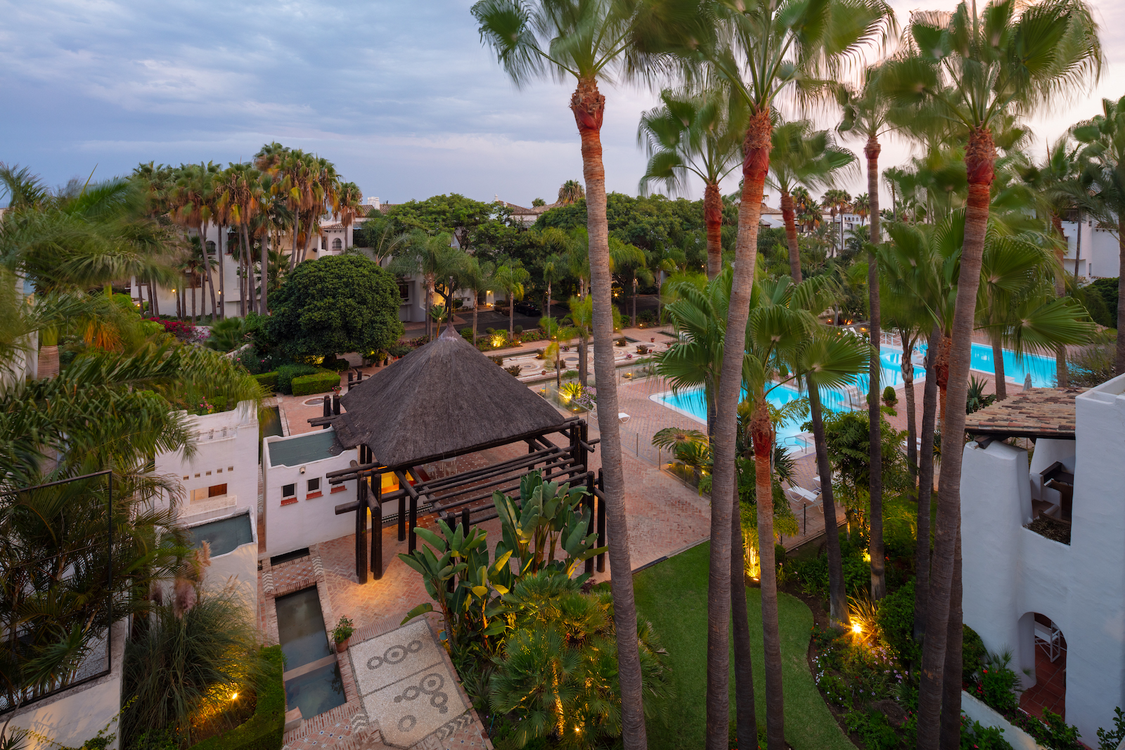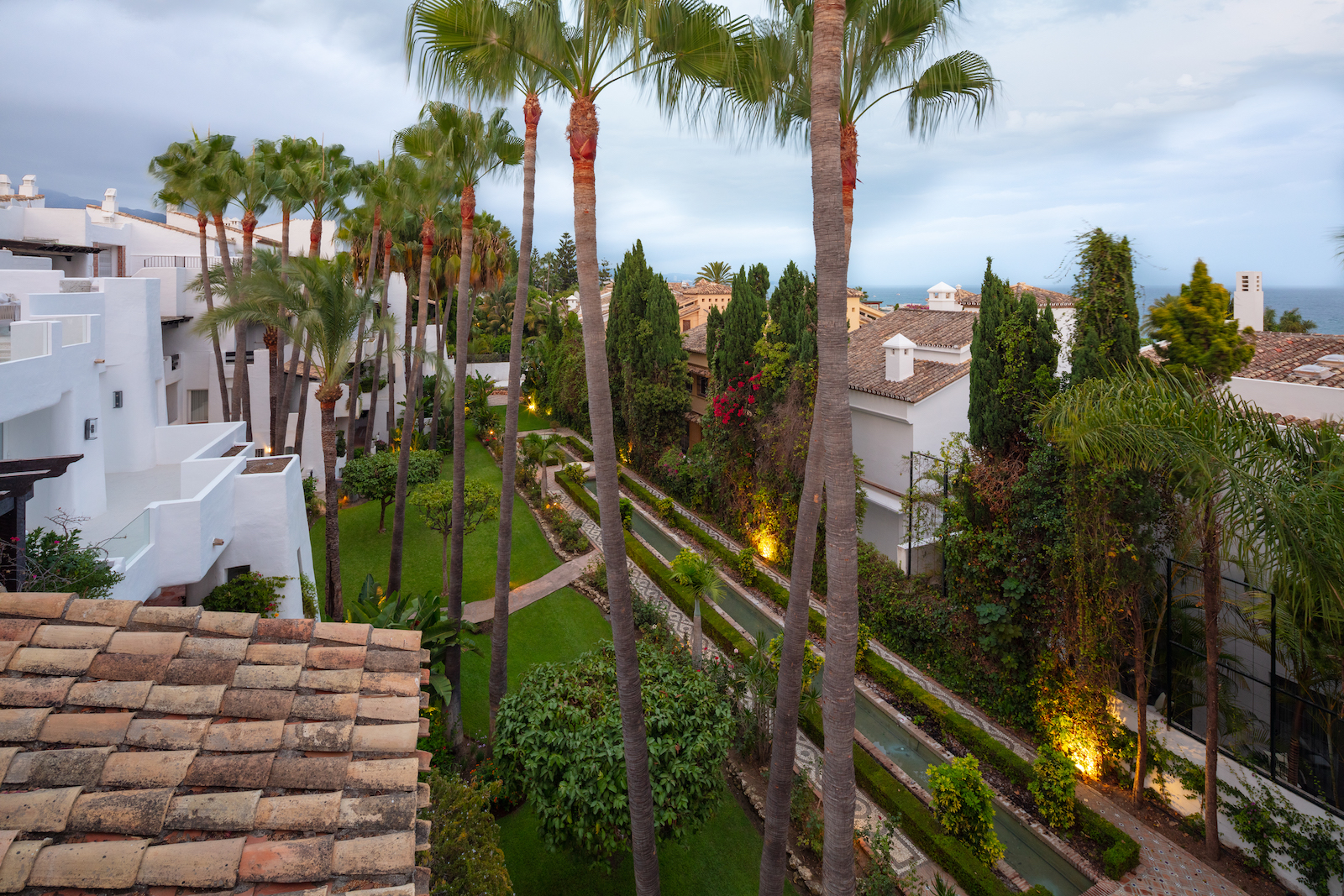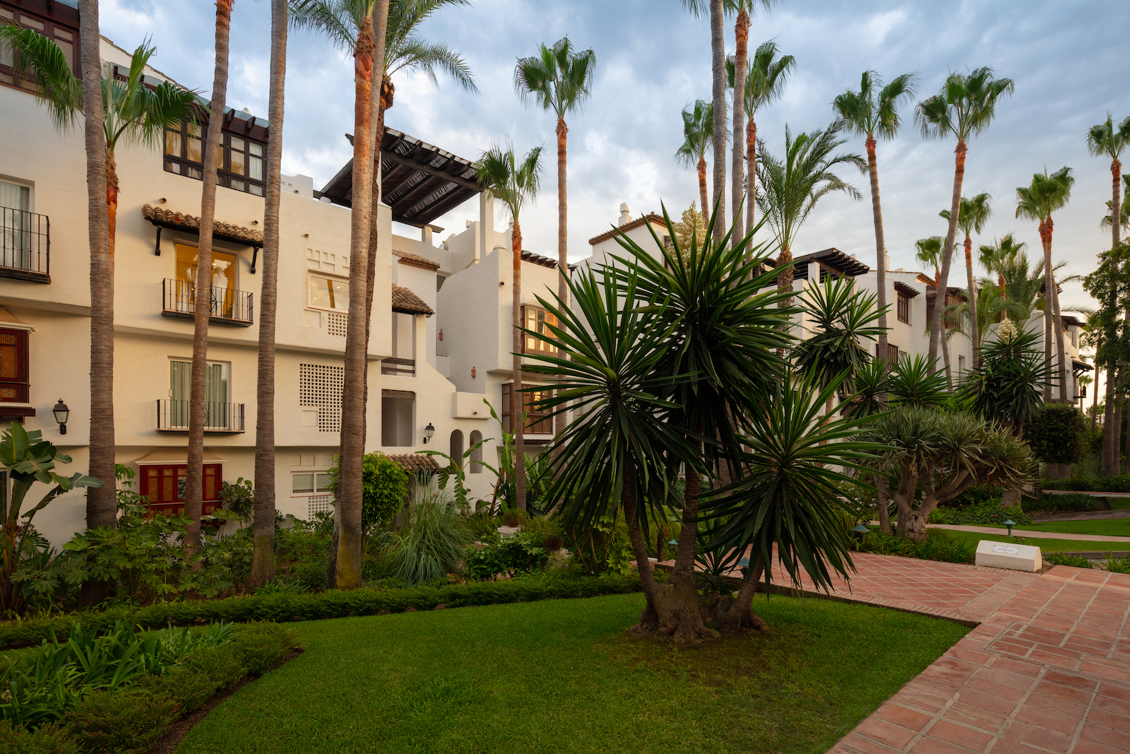 Ejendommen er en duplex, der ligger på to etager med et åbent opholds- og køkkenområde og fire soveværelser med eget badeværelse. Har adgang til den fælles swimmingpool og de tropiske haver i Puente Romano.