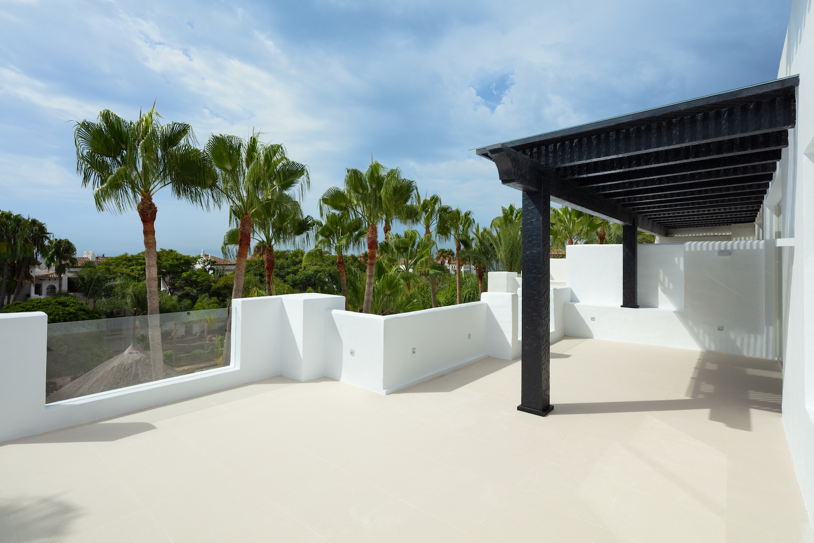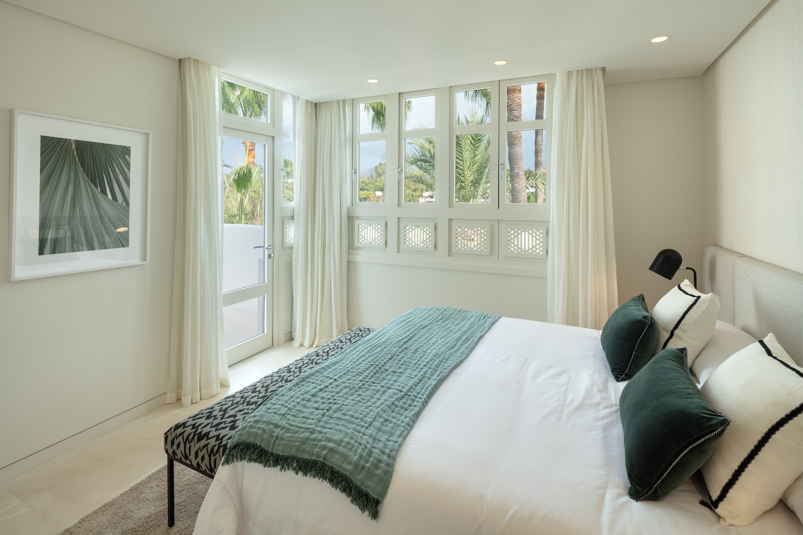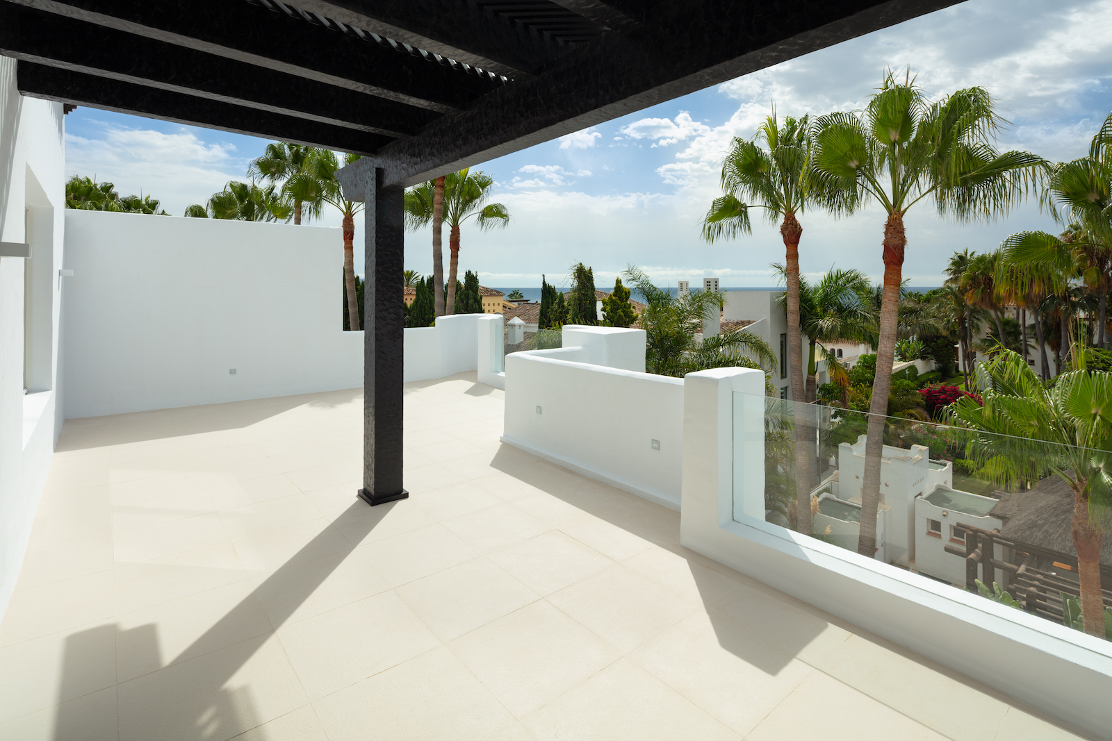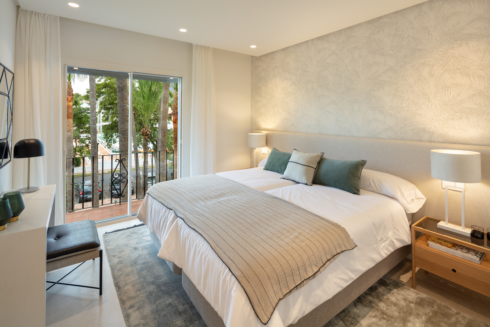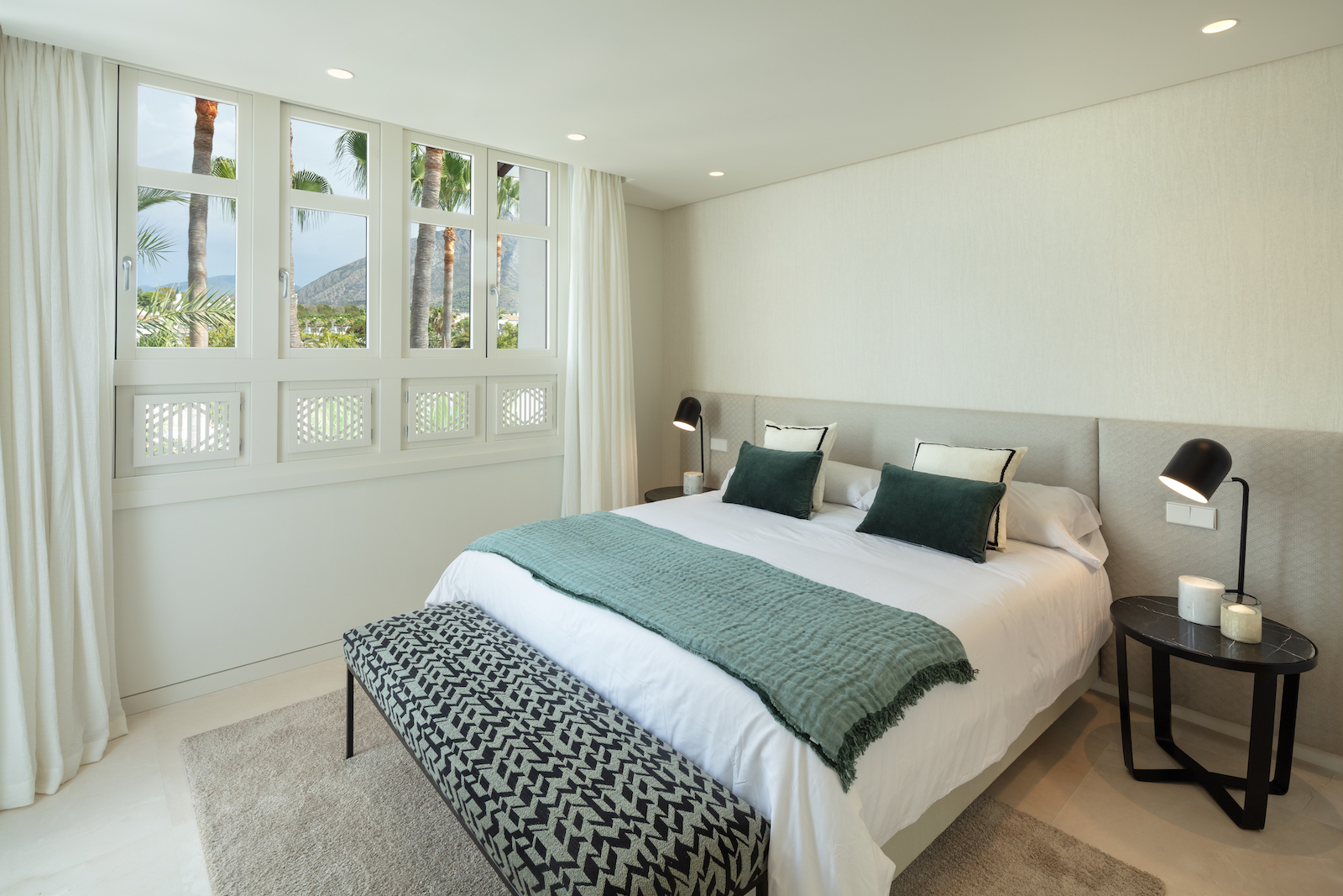 Ejendommen er en duplex, der ligger på to etager med et åbent opholds- og køkkenområde og fire soveværelser med eget badeværelse. Har adgang til den fælles swimmingpool og de tropiske haver i Puente Romano.