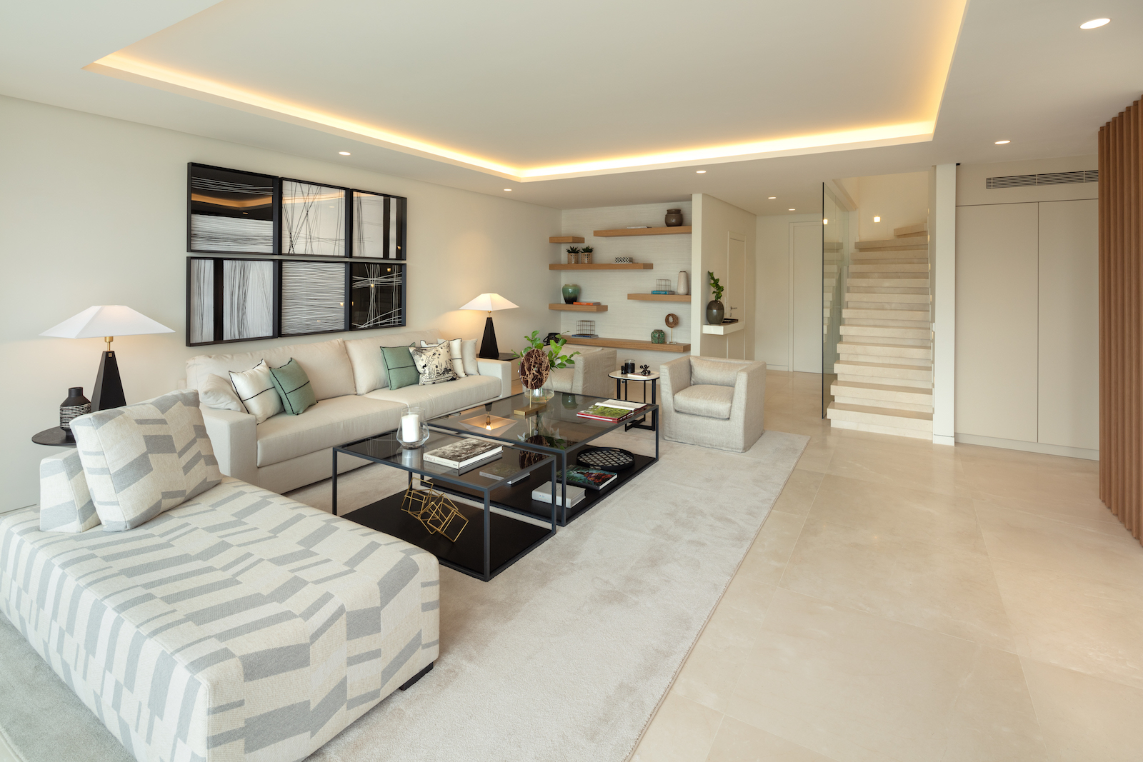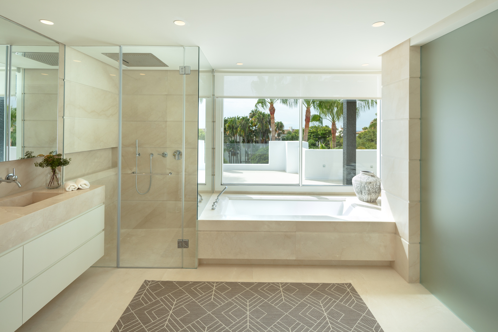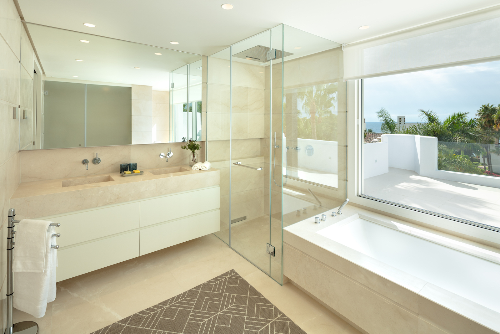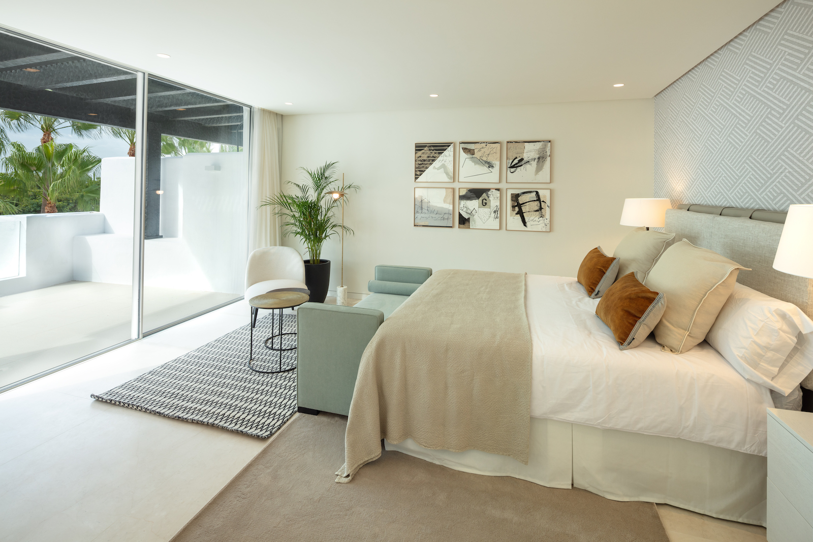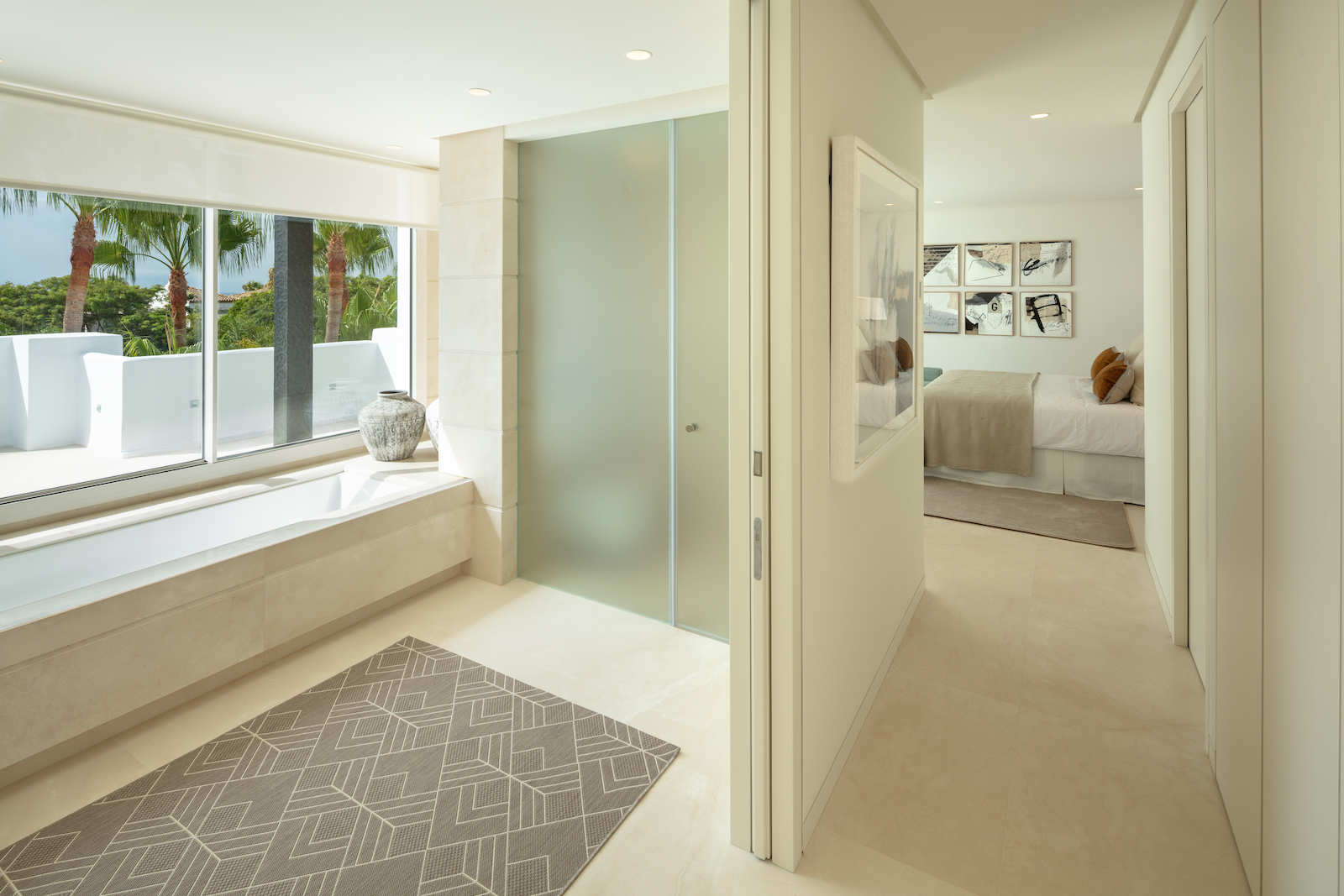 Ejendommen er en duplex, der ligger på to etager med et åbent opholds- og køkkenområde og fire soveværelser med eget badeværelse. Har adgang til den fælles swimmingpool og de tropiske haver i Puente Romano.