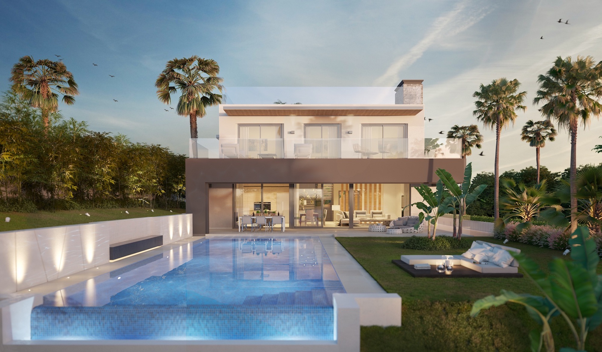 Med en enestående beliggenhed i hjertet af Golf-dalen i Marbella og ved siden af Middelhavet, er denne eksklusive villa designet af høj kvalitet og et udsøgt design. Villaen formår at kombinerer moderne arkitektur med åbne og funktionelle rum og bruger naturlige materialer med den mest avancerede teknologi og højkvalitets finish, der tilpasser sig i overensstemmelse med miljøet.