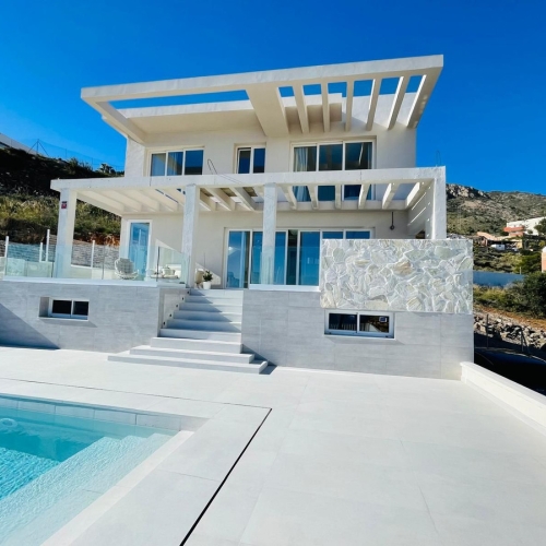 Well presented 4 bedroom villa, with fitted kitchen, garage parking, private pool and garden. South West facing with views of the Mountains and the sea from the sunny terraces.
