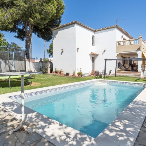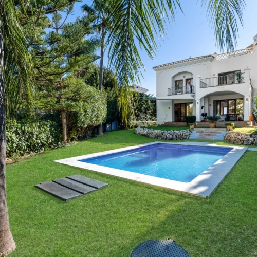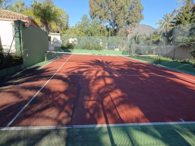 PRICE REDUCED FROM €11.000.000 ! A magnificent beachfront estate ideal for development of up to 4 beachfront villas located within walking distance to Estepona port, consisting of two large plots offering panoramic frontal sea views with total privacy. The luxury villa offers 5 bedrooms, multiple living spaces including a stylish grand main salon with impressive double height ceiling, wonderful outdoor terrace spaces, and a very large private garden, swimming pool, Jacuzzi & tennis court, as well as the unique option for development of 2 new beachfront villas on the larger beach plot without obstructing the sea view of the existing property. Formerly owned by a famous Hollywood actor and situated right on the beachfront with direct beach access, the two segregated plots of 5000m2 and 3400m2 feature mature palm gardens not far from all amenities in Estepona. There is also the possibility to easily re-segregate the plot to allow up to 4 villas in total - as per the project design in accordance with the Ley de Costa. The entrance to the property offers a large driveway with adequate parking and double garage, and inside the entrance hall leads directly to the spacious lounge with double height ceiling opening onto the garden with sea view. There is also a TV/games room with pool table and table tennis, a modern kitchen, separate dining room, and laundry room. The property offers 5 double bedrooms and 6 bathrooms, including the large private master bedroom suite on the first floor with 2 en suite bathrooms, a sofa seating area and a large private balcony with sea view, plus 4 additional en-suite double bedrooms - 3 of which have been recently modernized with Travertine marble bathrooms and furnished by an interior designer with Villeroy and Boch sanitary ware. The 5th bedroom is a large, garden/pool facing king size room situated at the opposite end of the villa for enhanced privacy. Outside there is an extra large 8-person Jacuzzi cascading into the enormous swimming pool of 20 meters by 8 meters, surrounded by marble and terracotta terraces and poolside shelter with a large dining table, as well as a full sized floodlit tennis court. A unique beachfront property with direct beach access and walking distance to amenities.